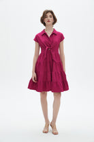 فستان مكشكش قصير بكم قصير وياقة قميص