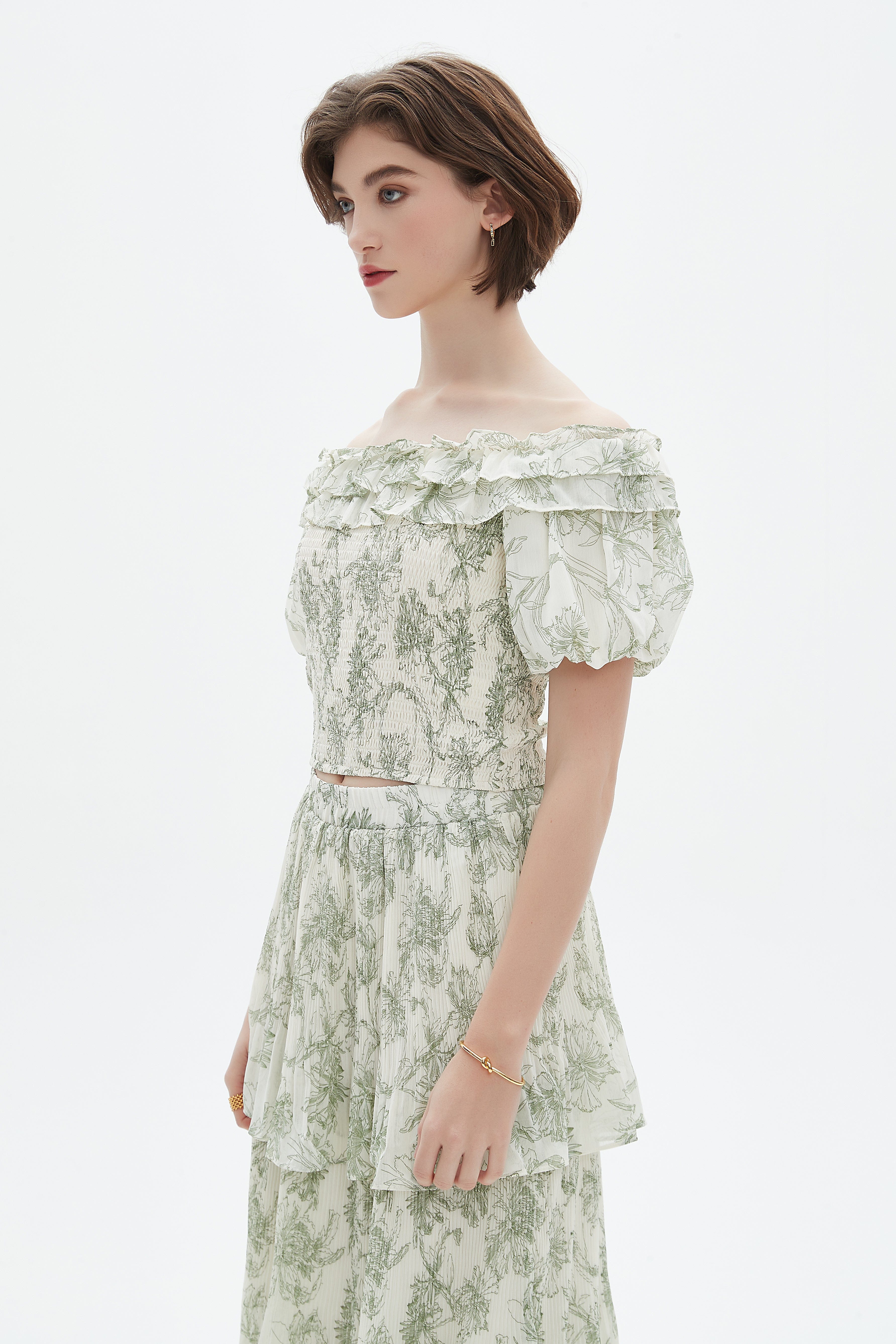 بلوزة نسائية كم واحد كتف مكشوف مشجرة