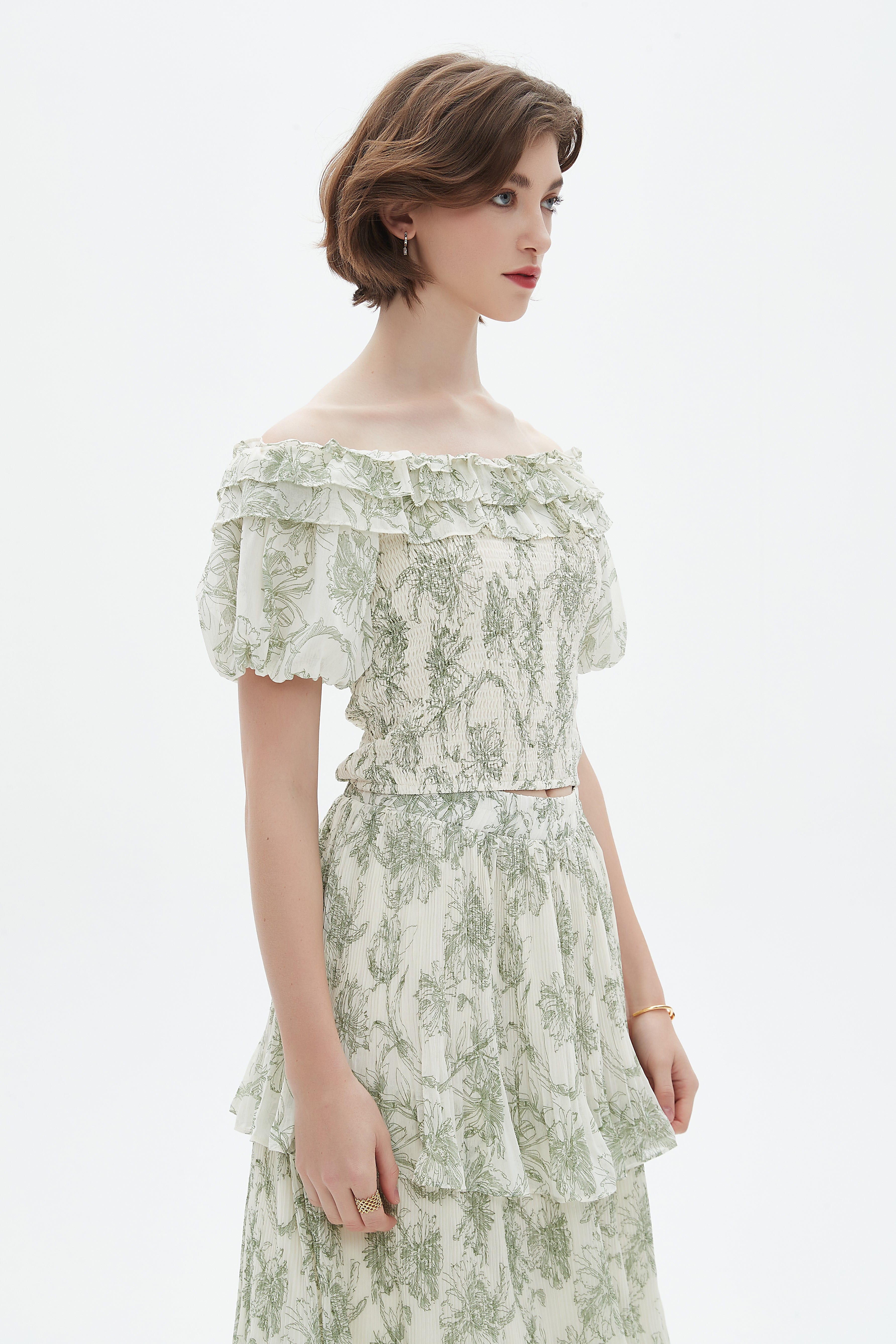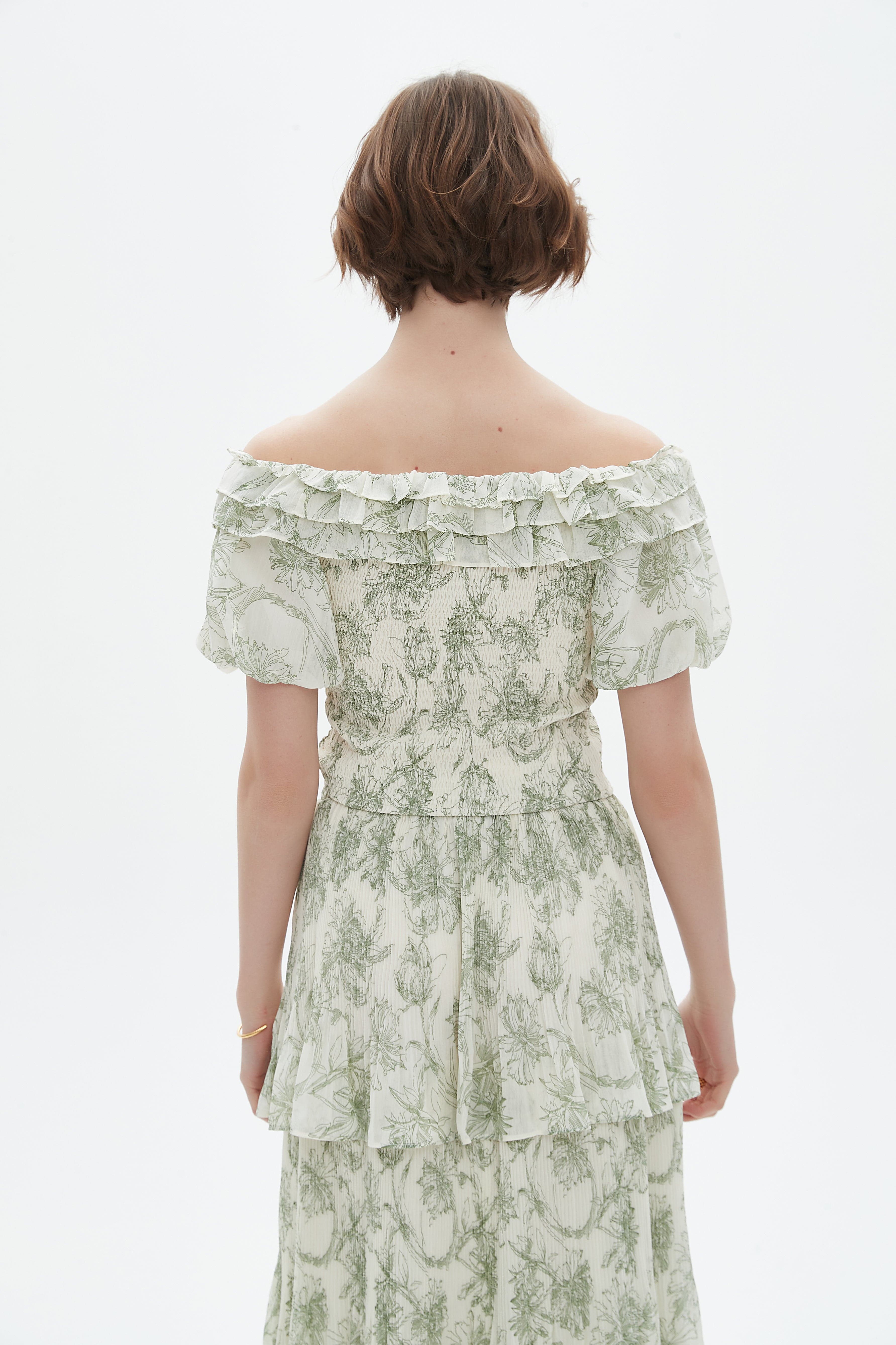 فستان ميدي كم قصير مكشكش اوف شولدر مورد