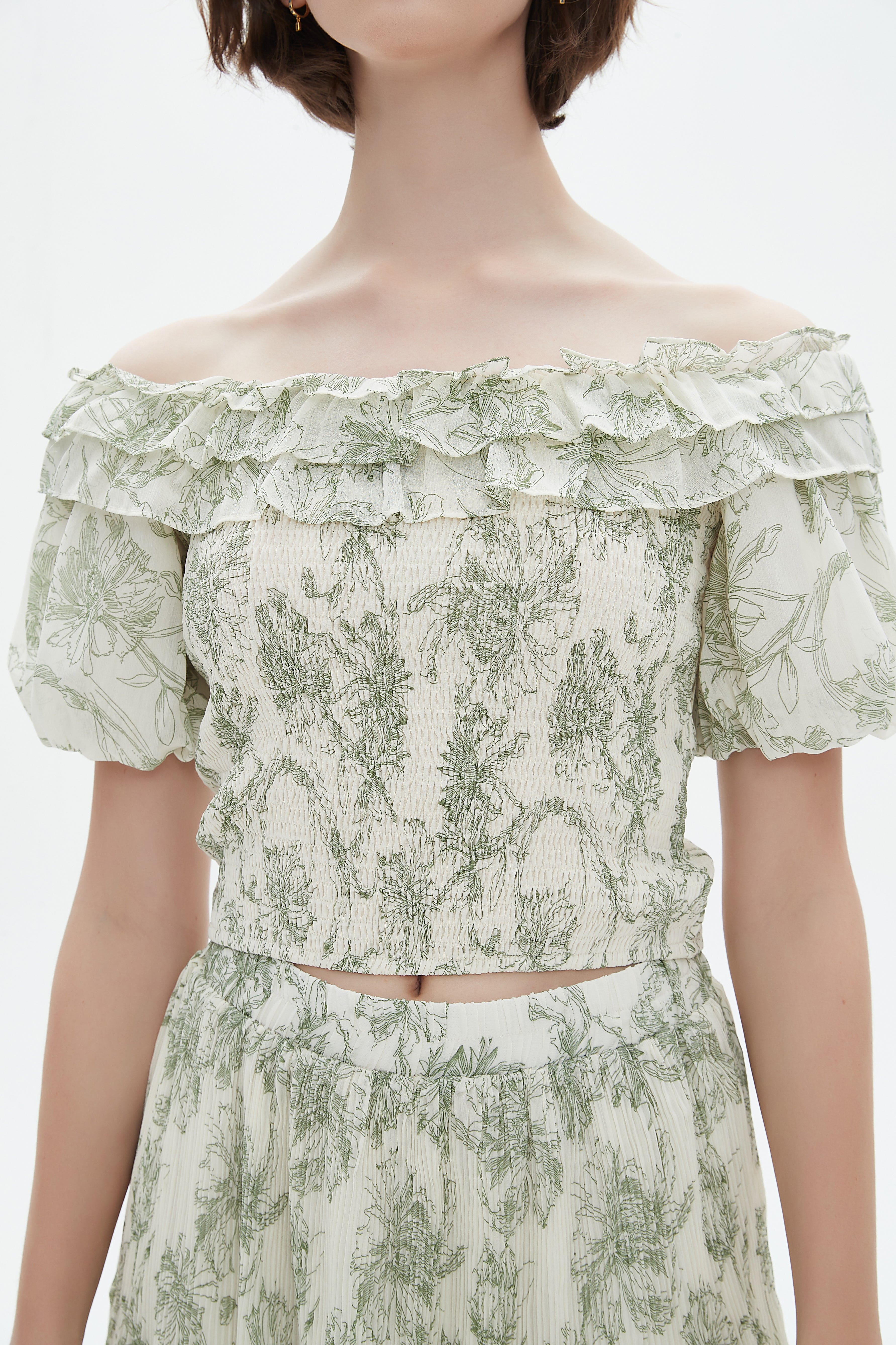 بلوزة نسائية كروب توب بأكمام قصيرة اوف شولدر