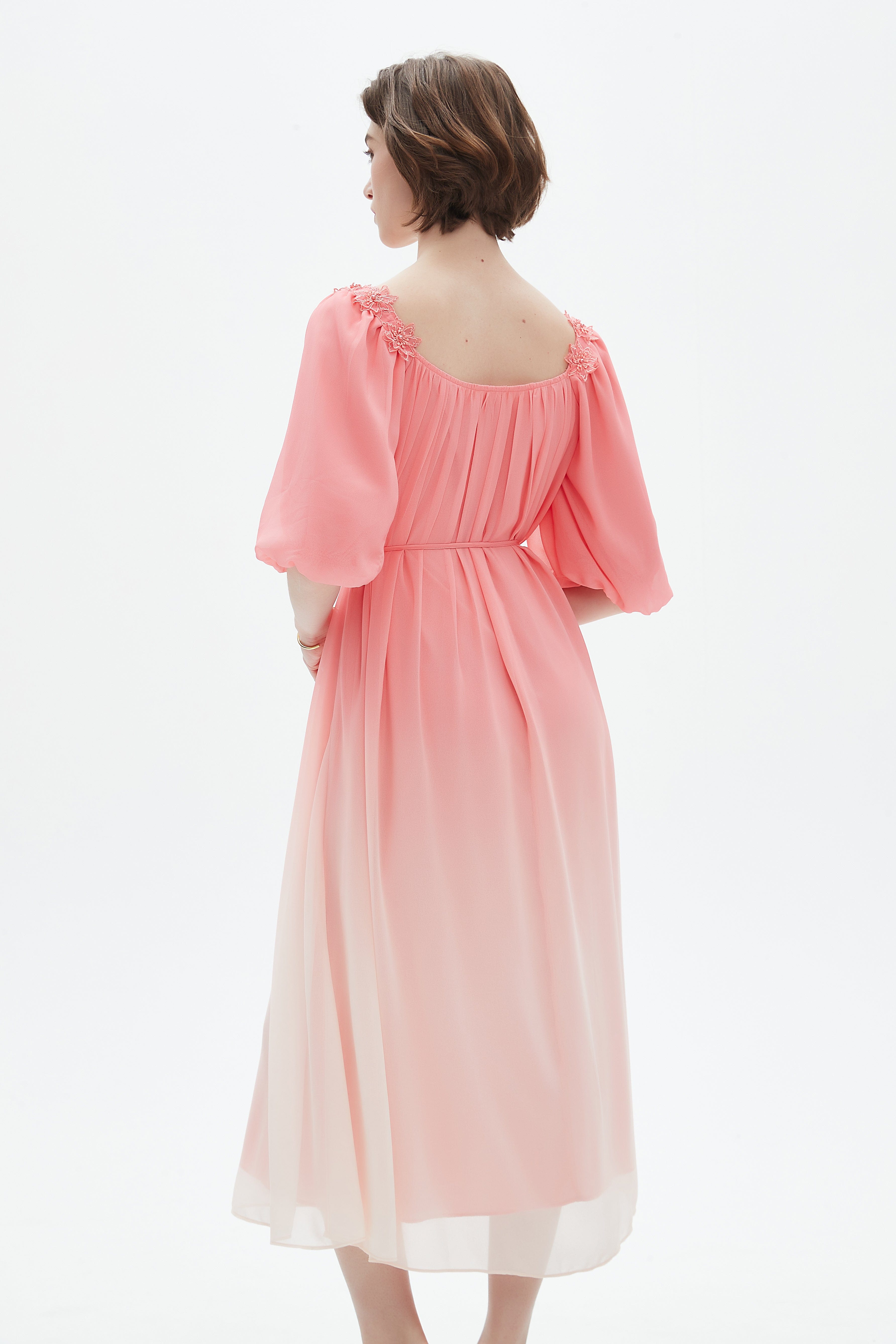 فستان ميدي نصف كم مكشكش ورقبة واسعة