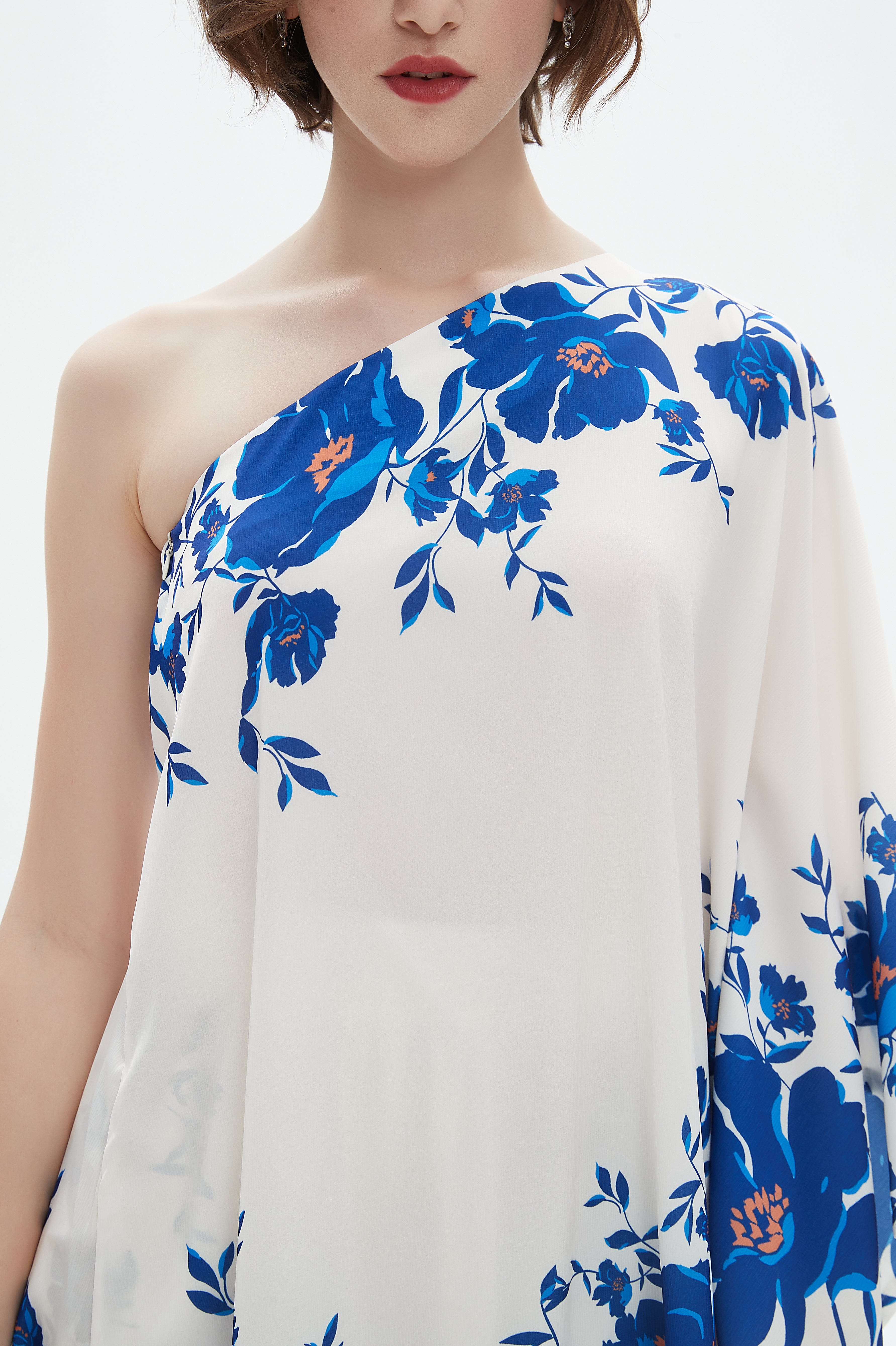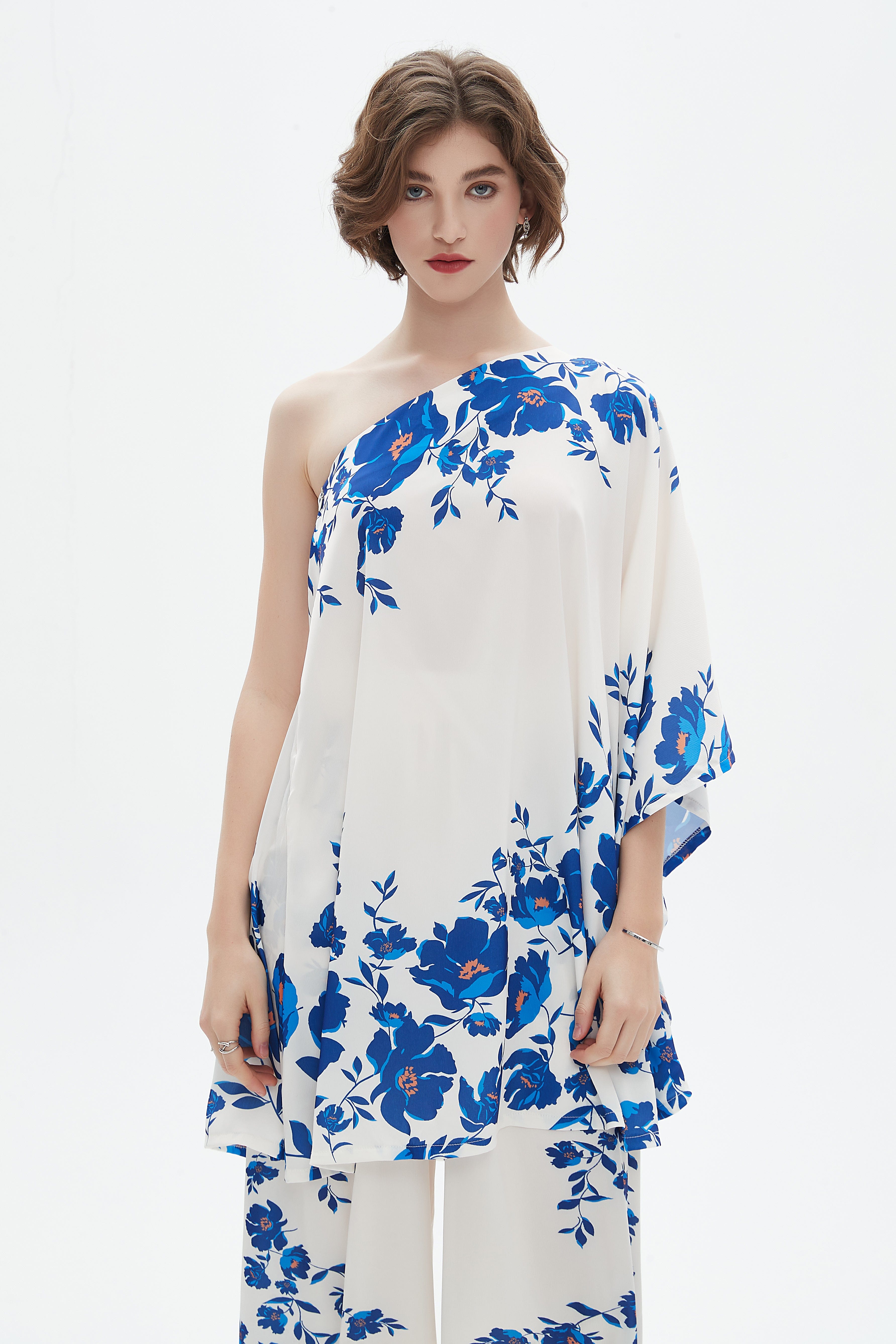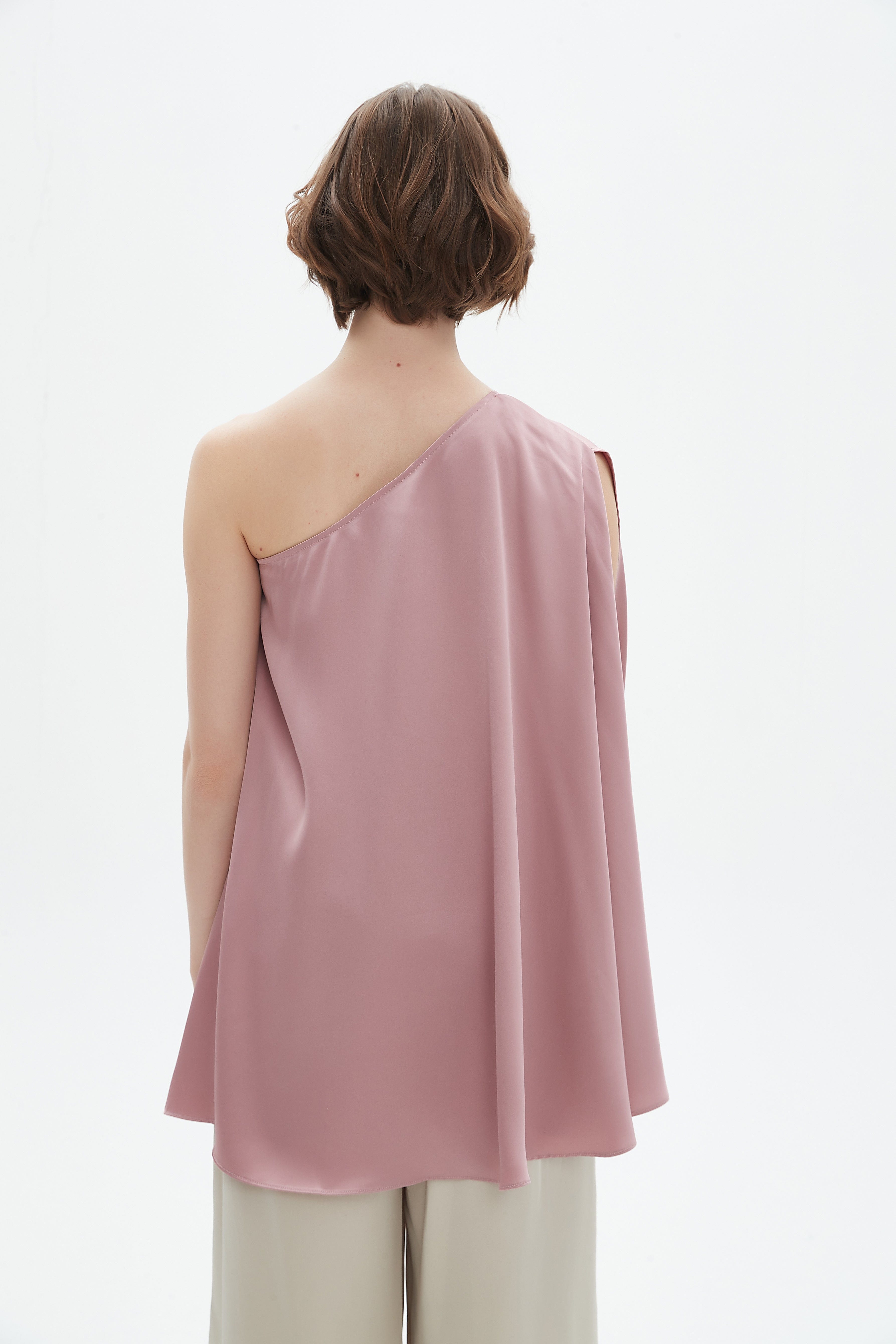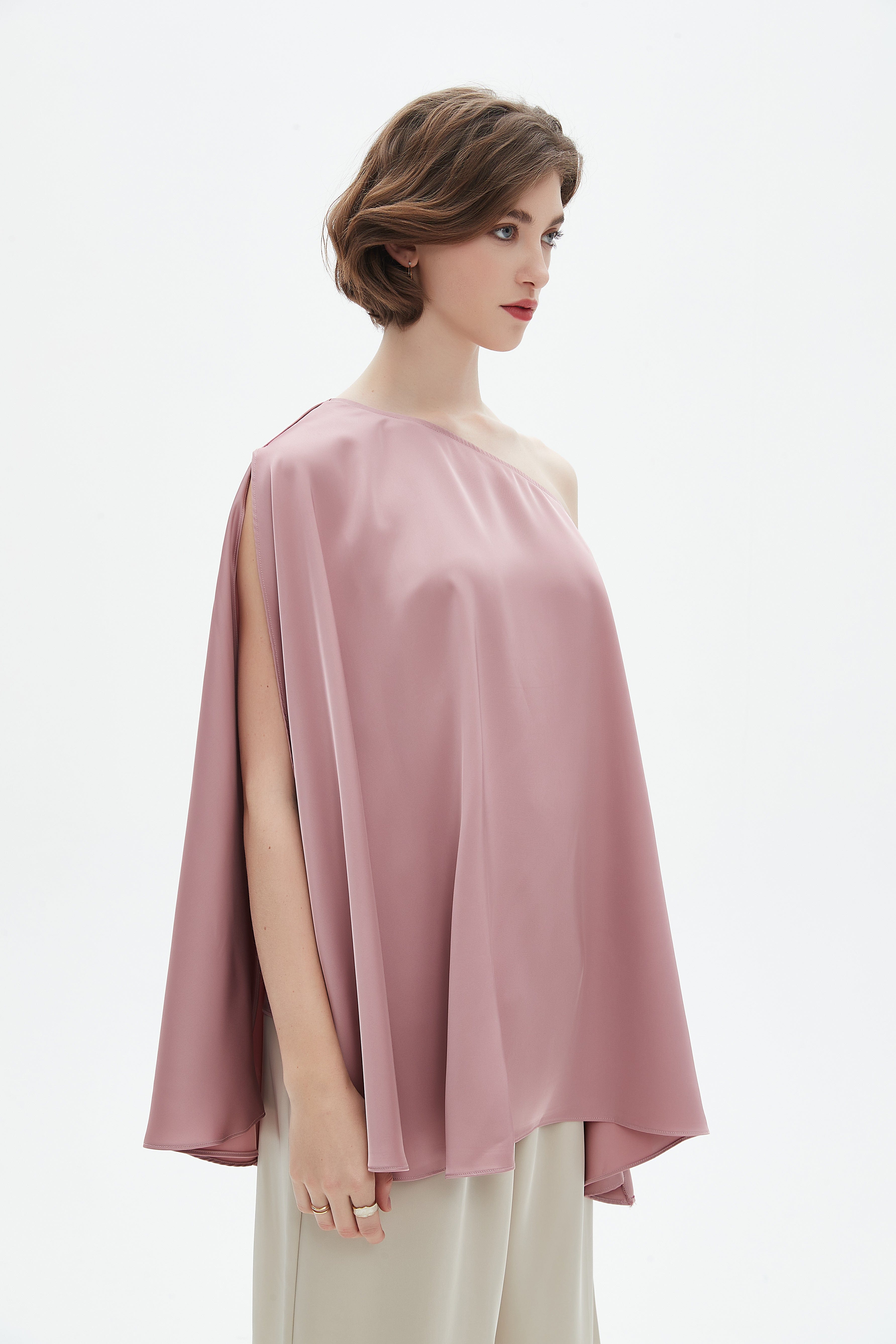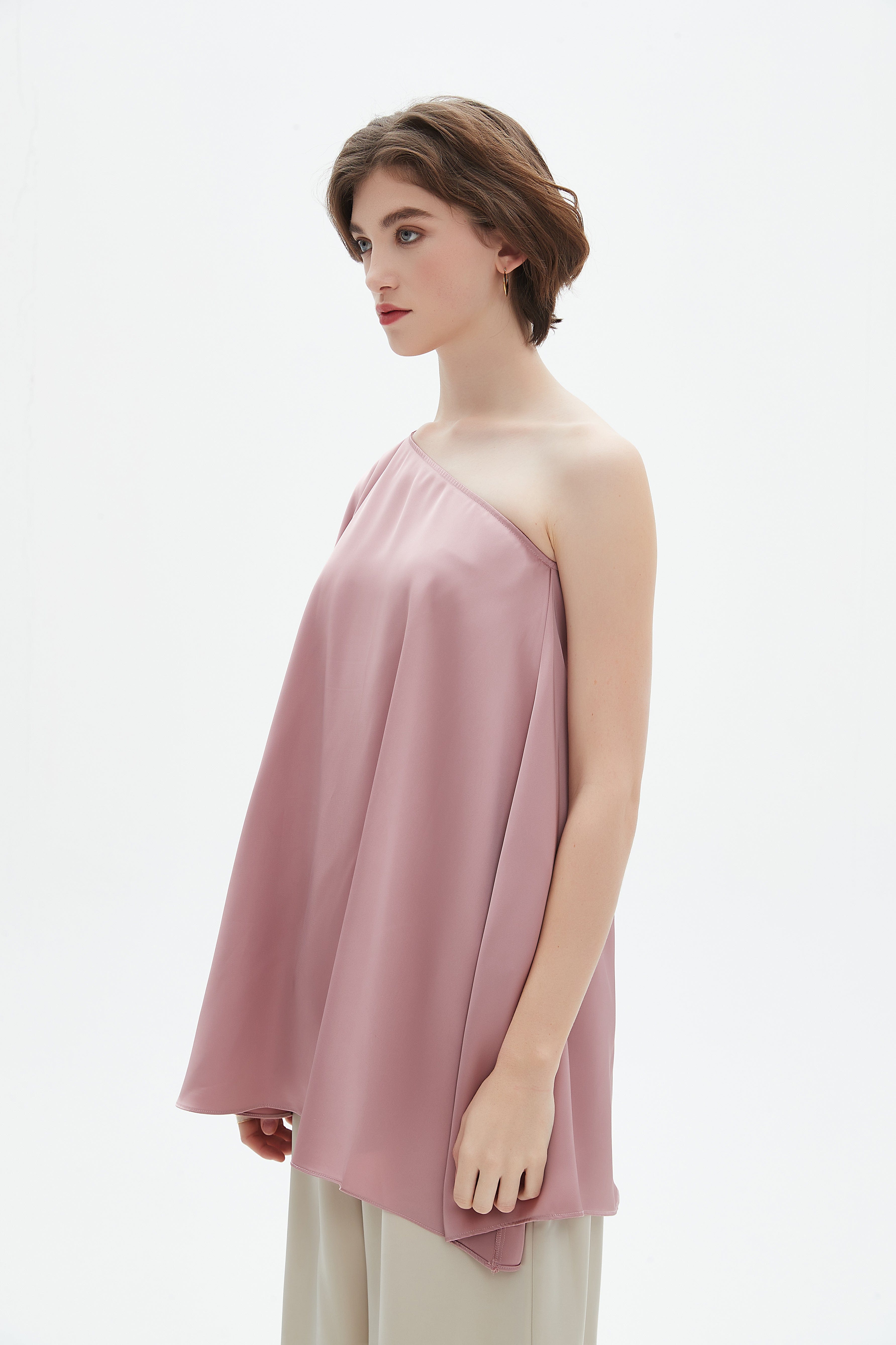 بلوزة واسعة بكتف واحد كم كاب مفتوح