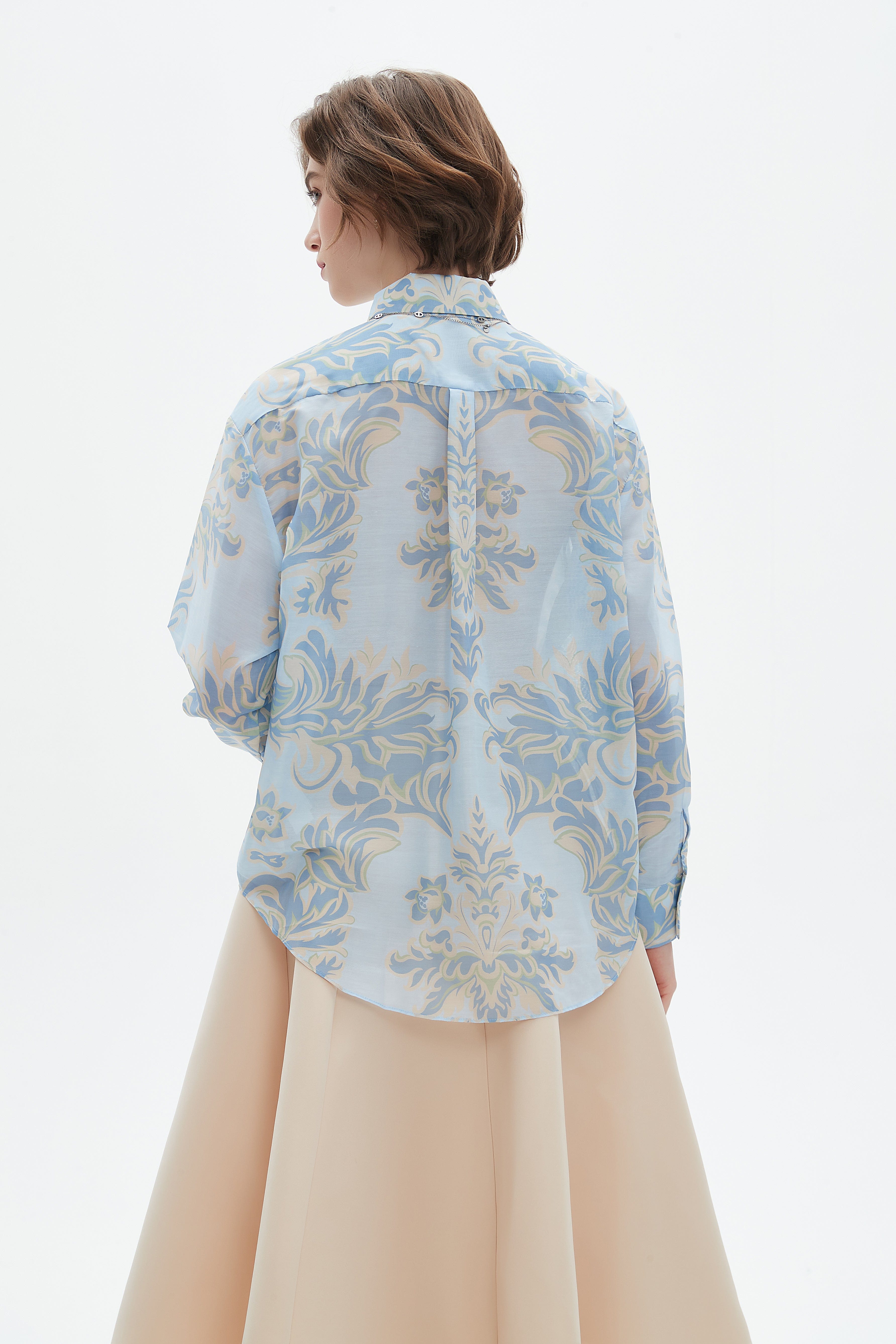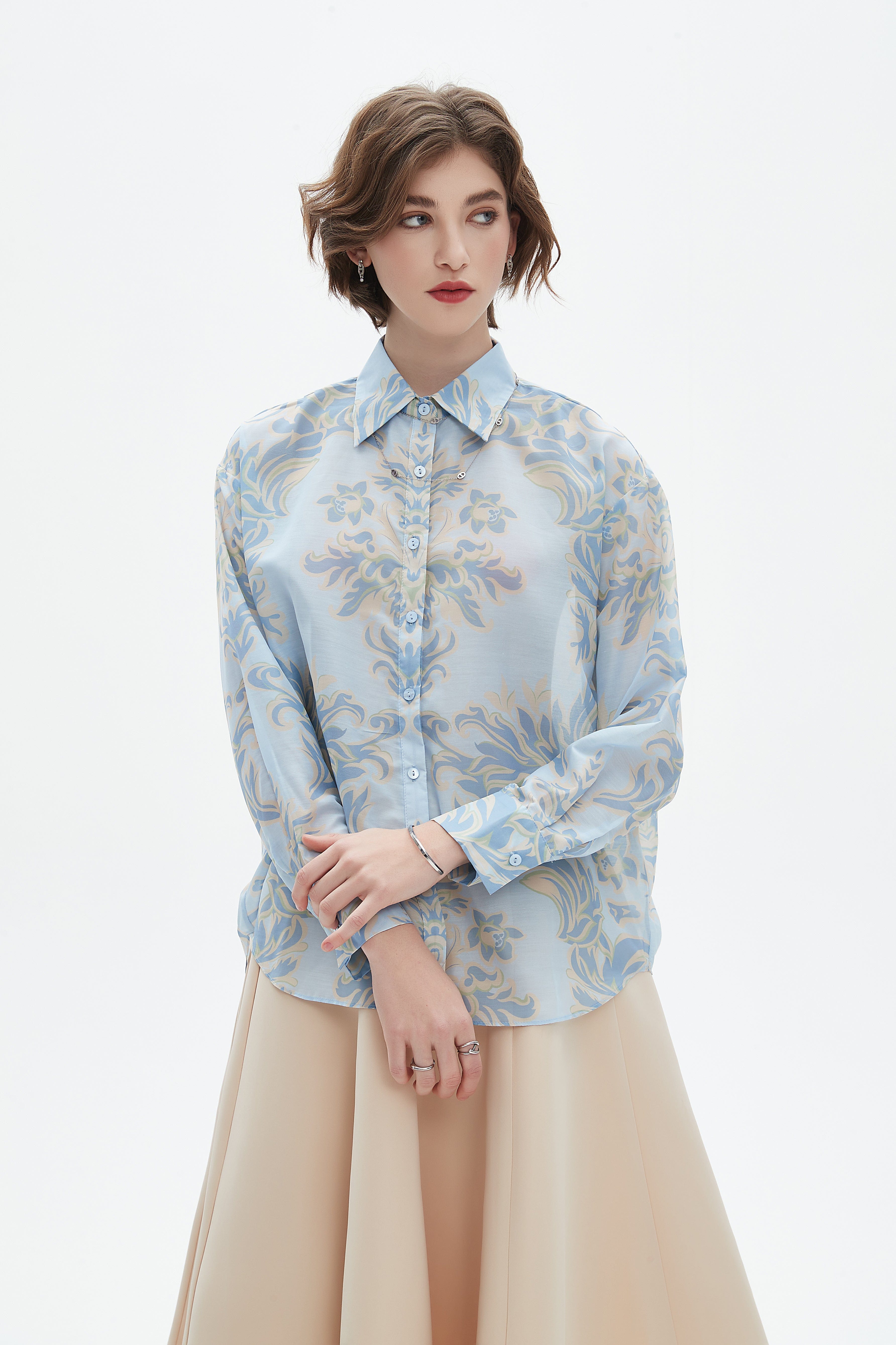 قميص نسائي واسع كم طويل مشجر