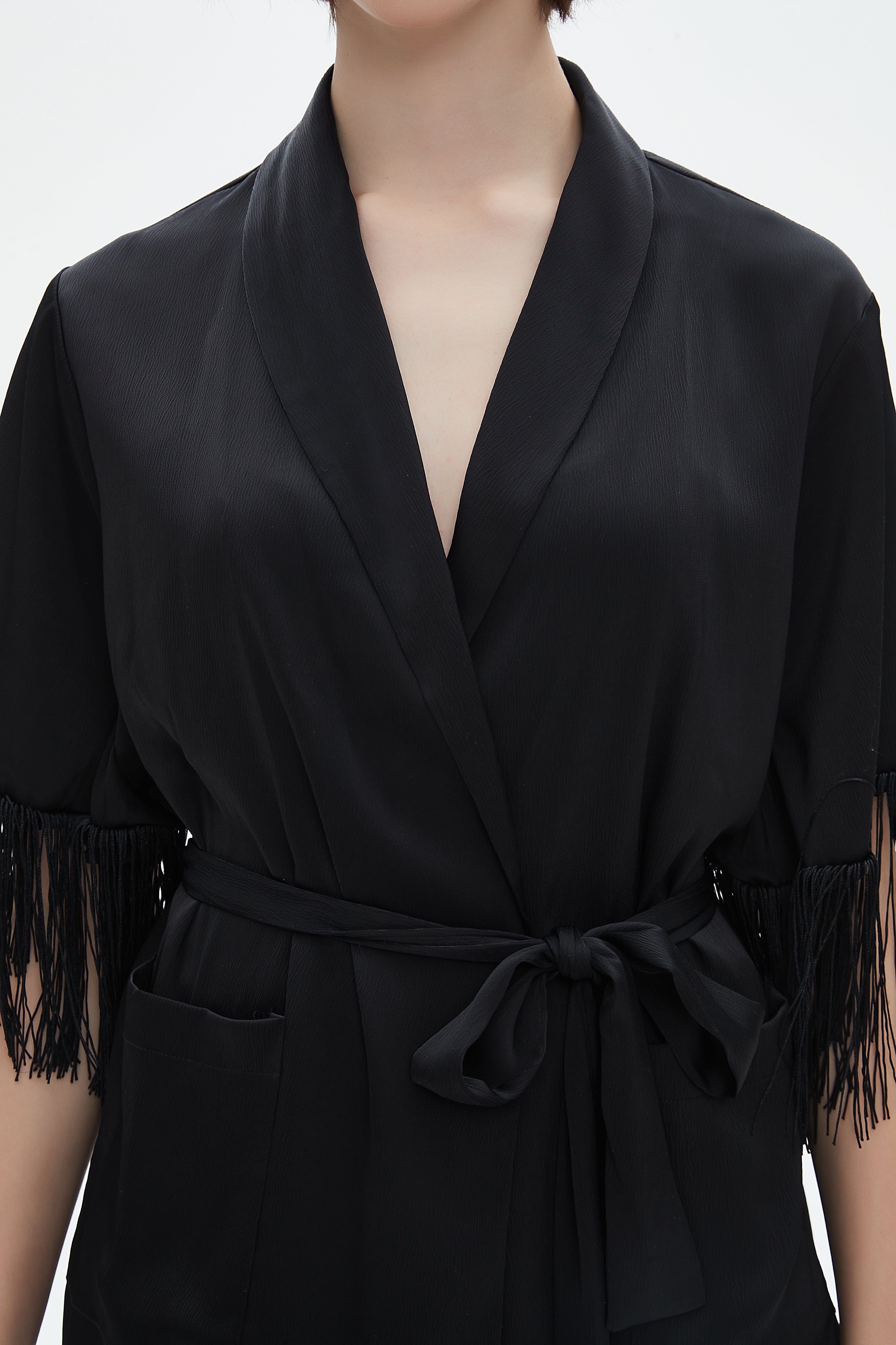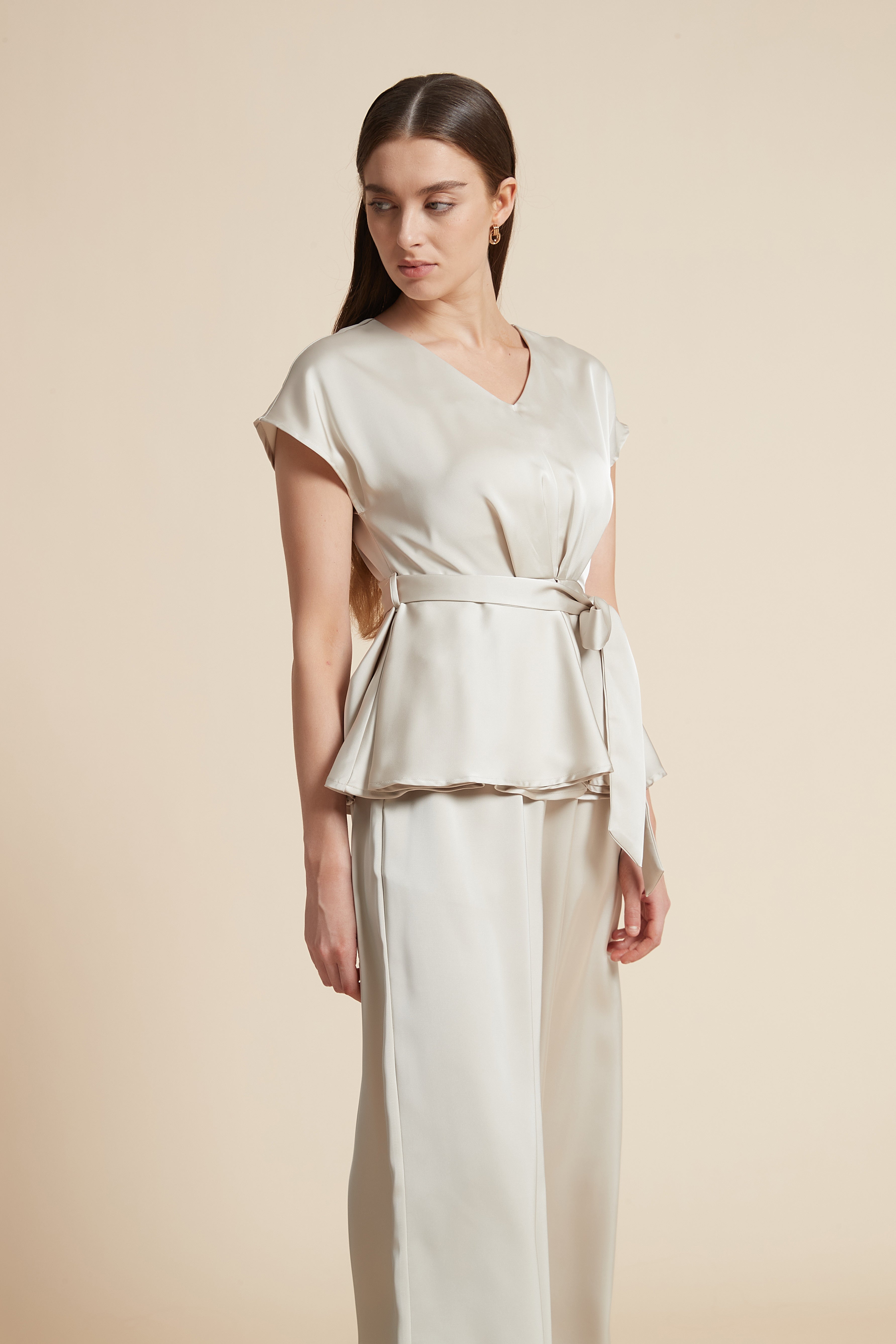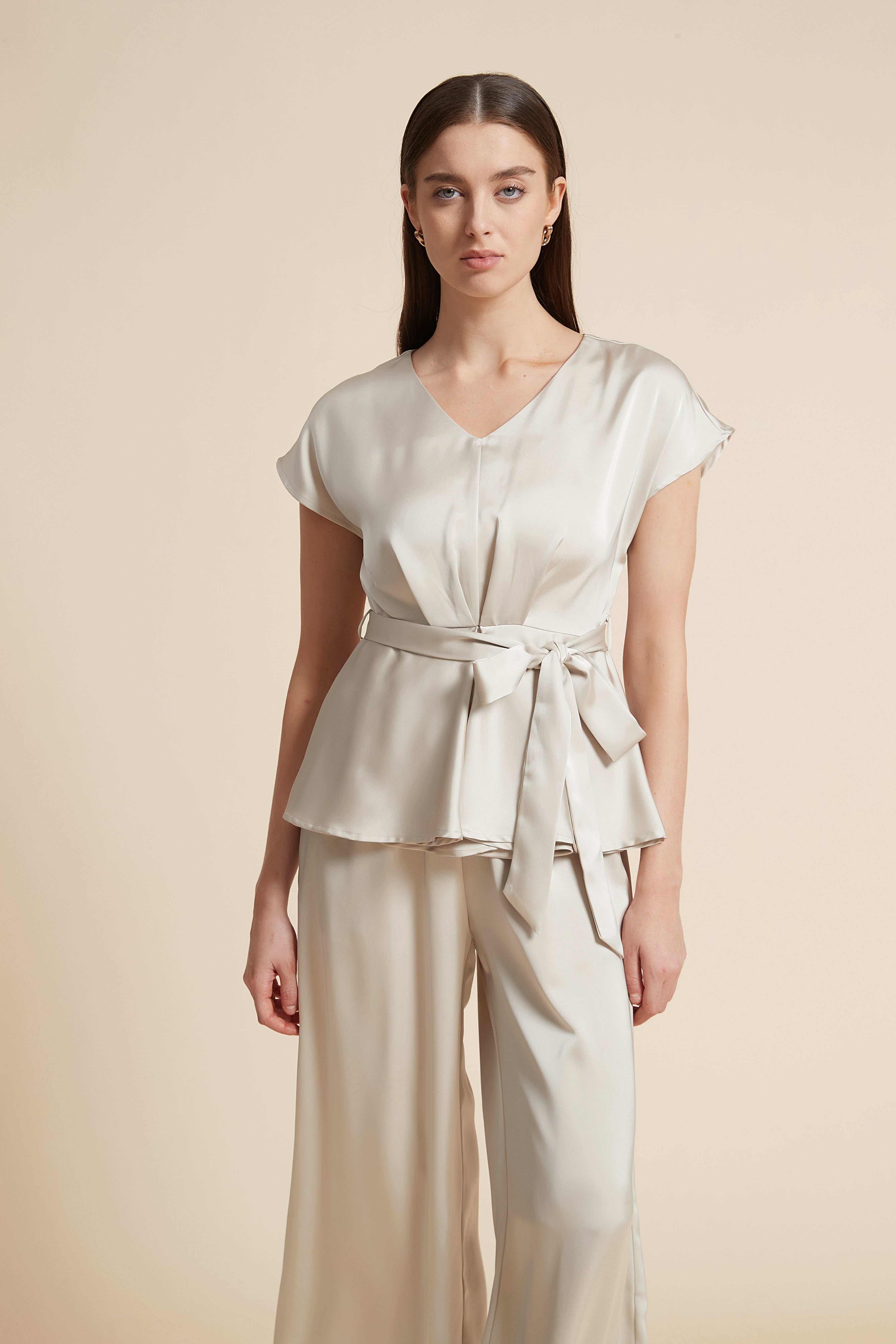 بلوزة نسائية 3/4 كم سادة بحزام خصر