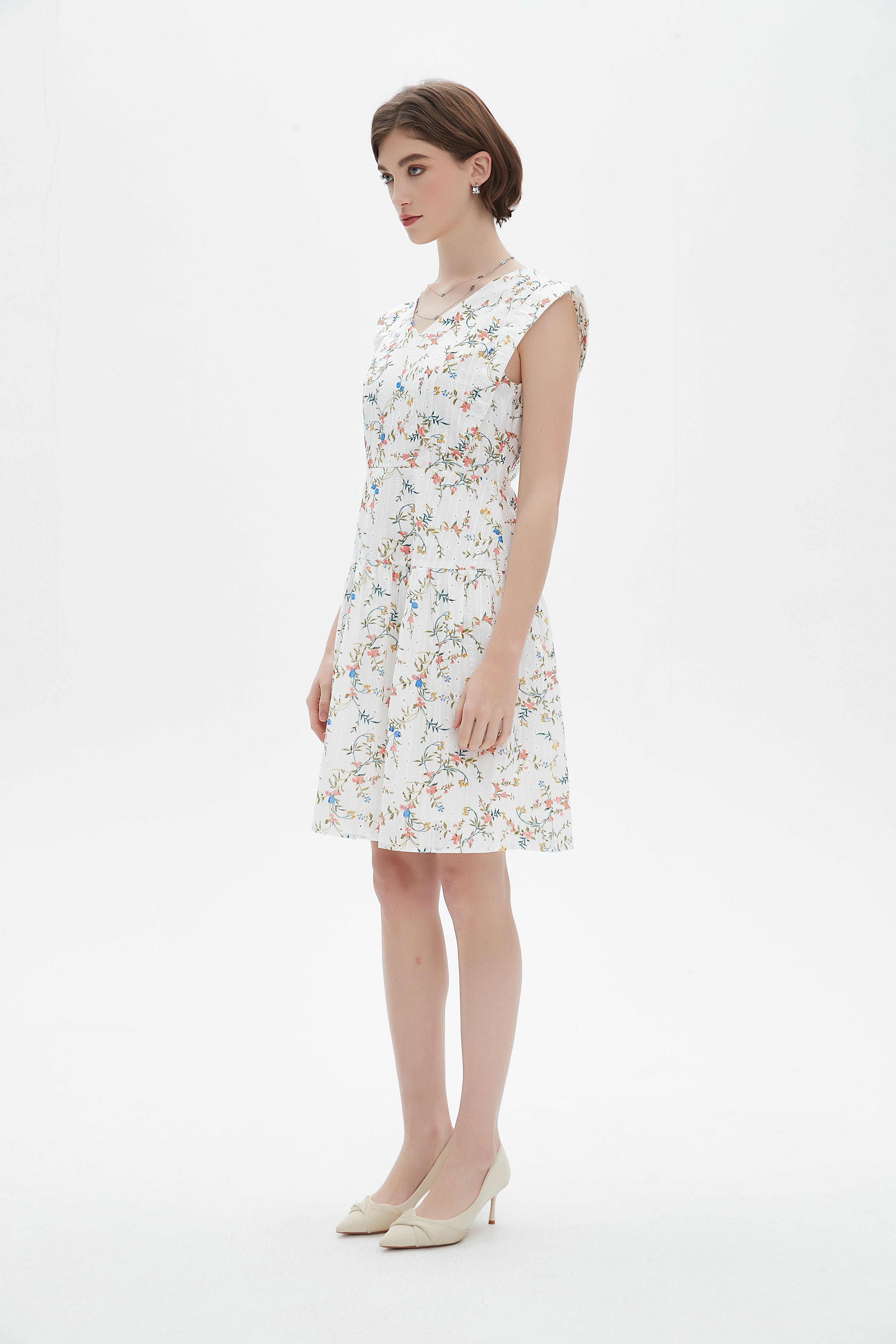 فستان ميدي بدون اكمام مورد وفتحة رقبة على شكل V