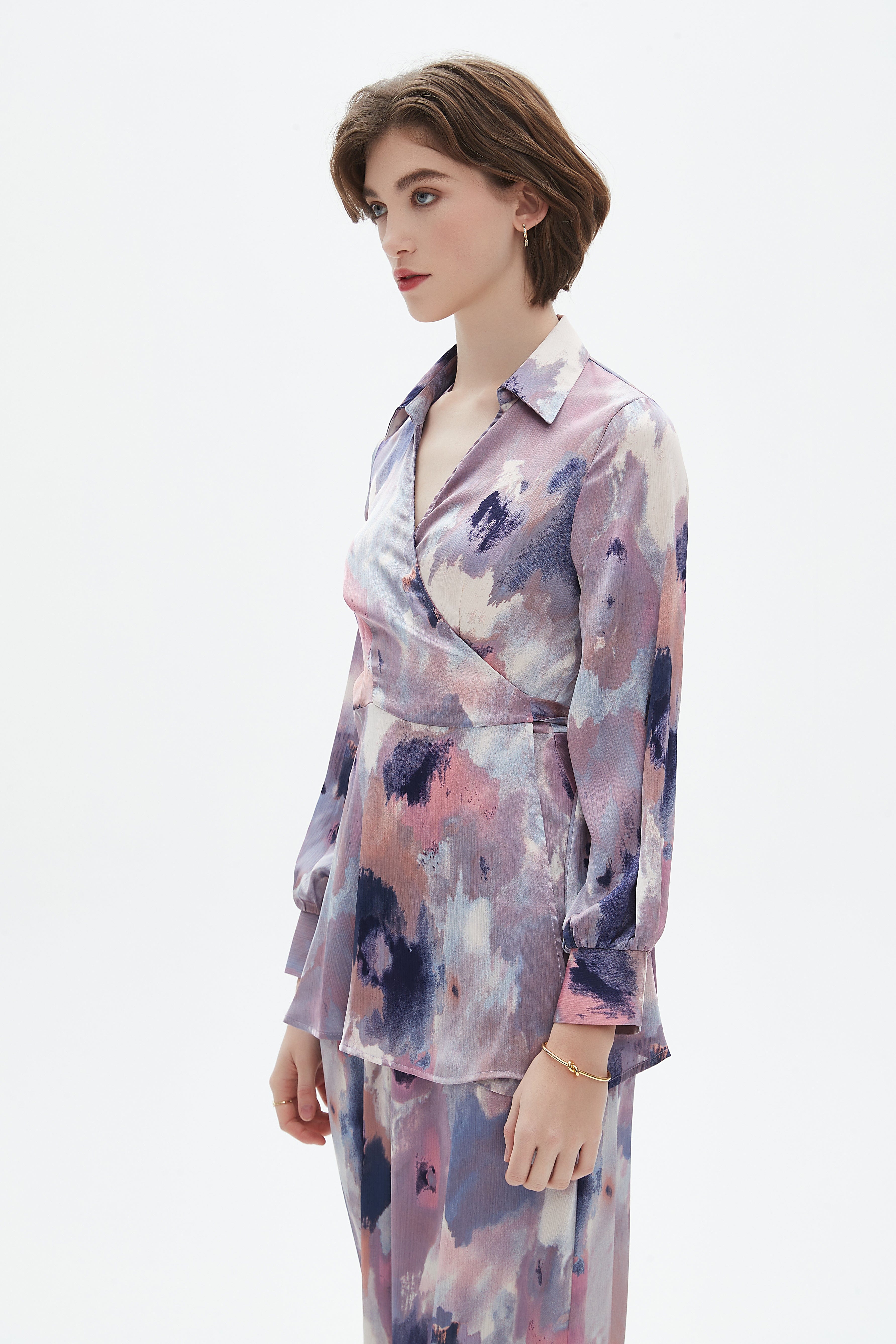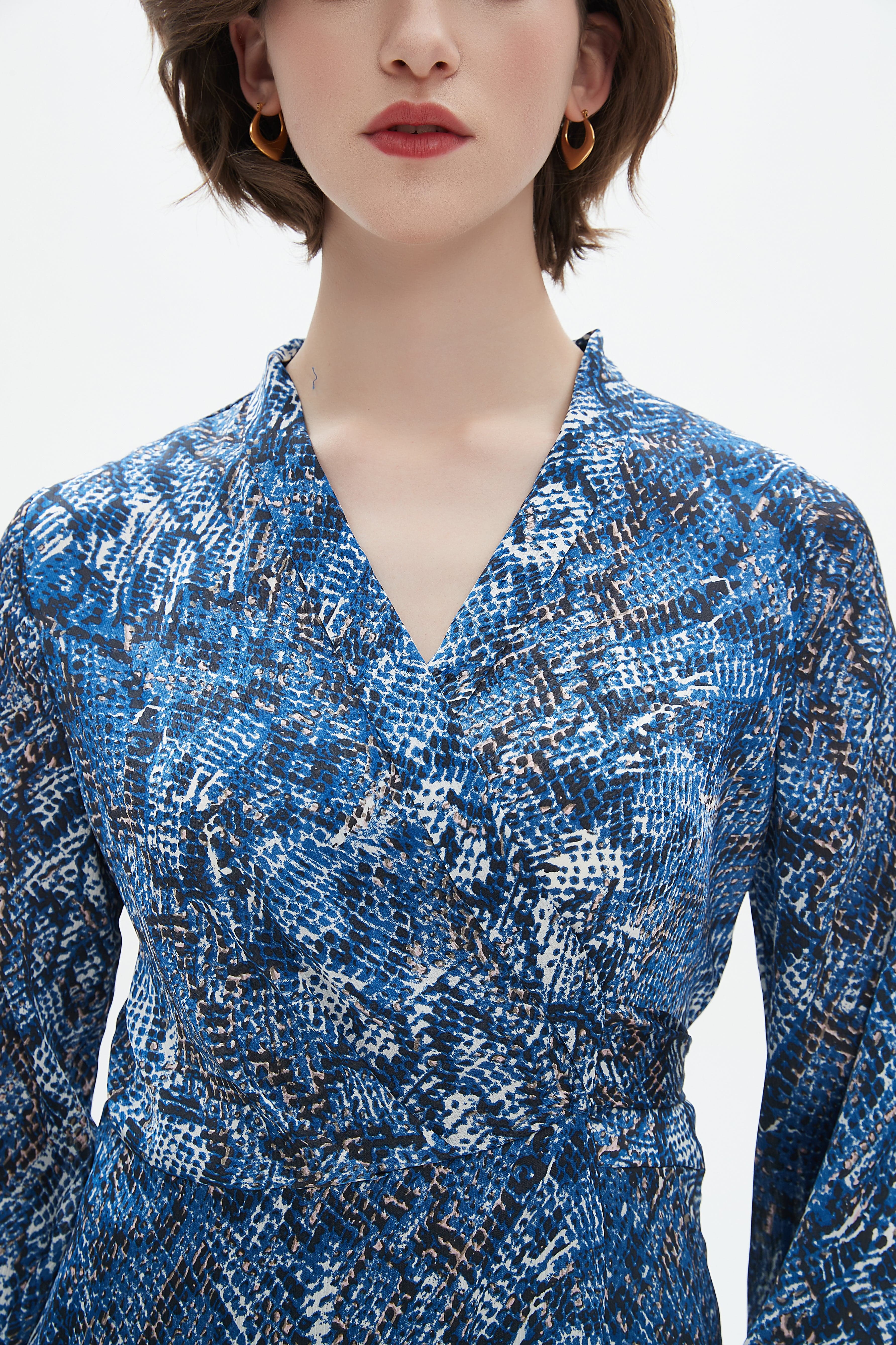 بلوزة نسائية بلوزة بطول الخصر منقوشة بأكمام طويلة وياقة قميص