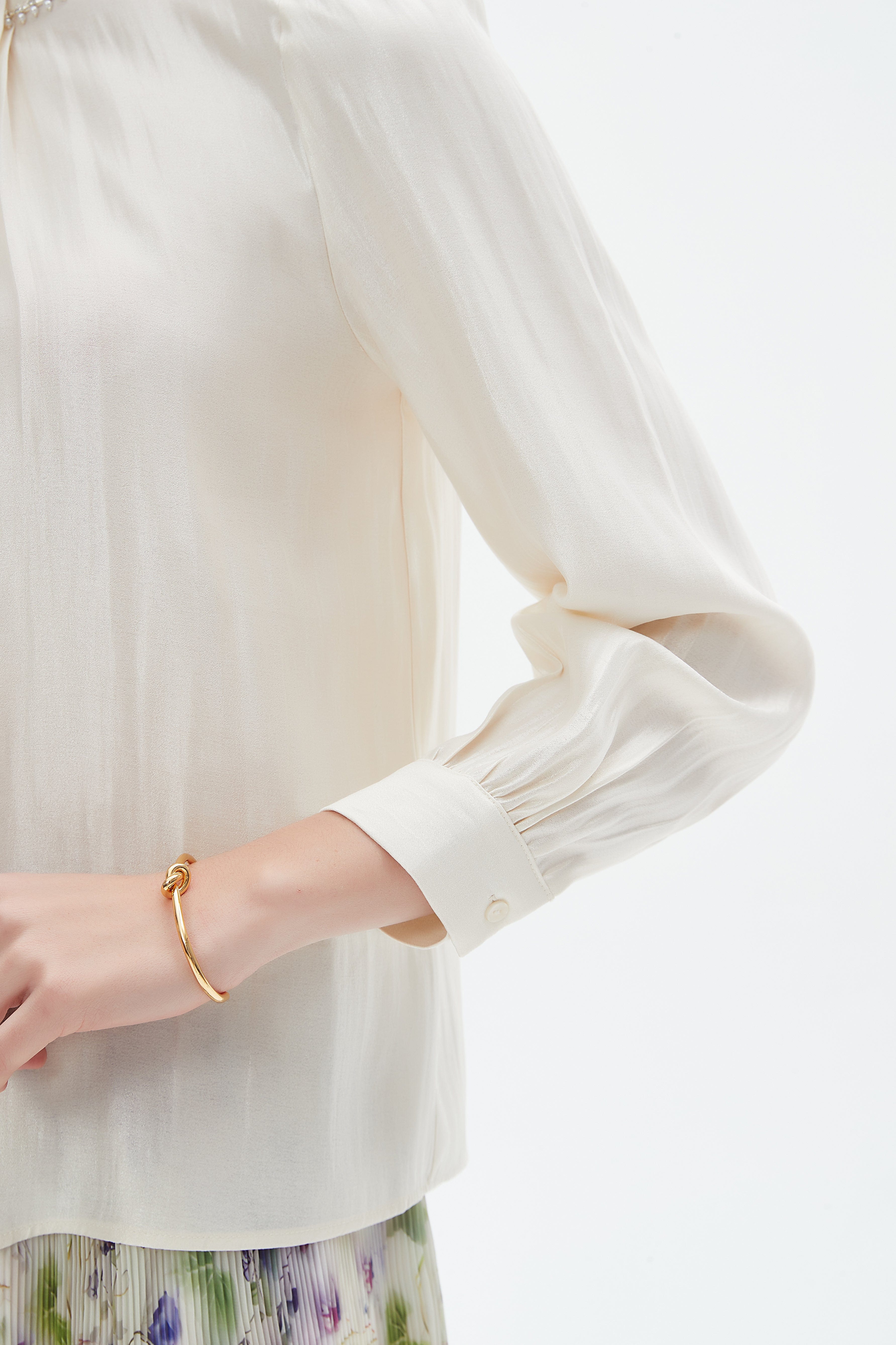 بلوزة نسائية بأكمام طويلة ورقبة مدورة