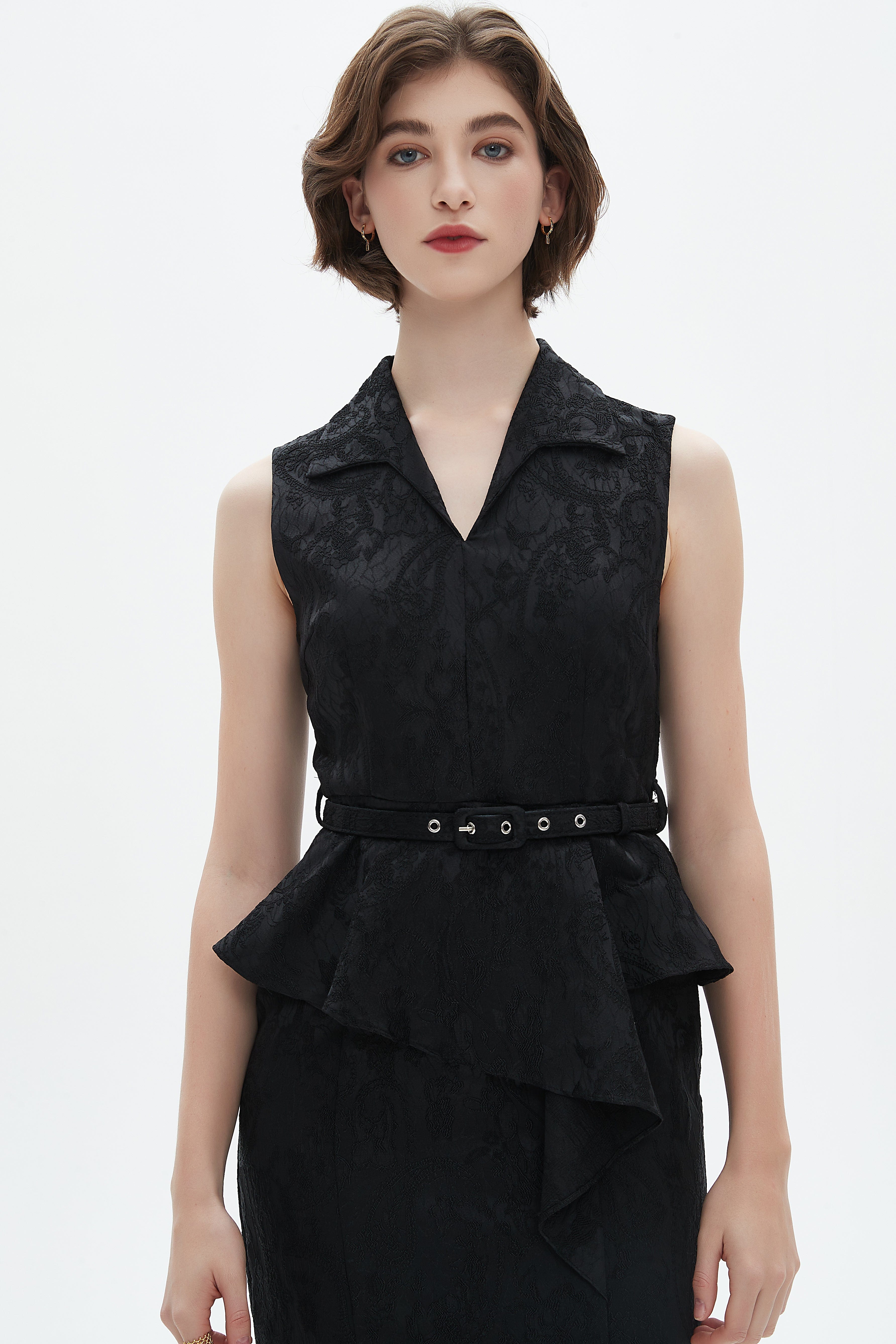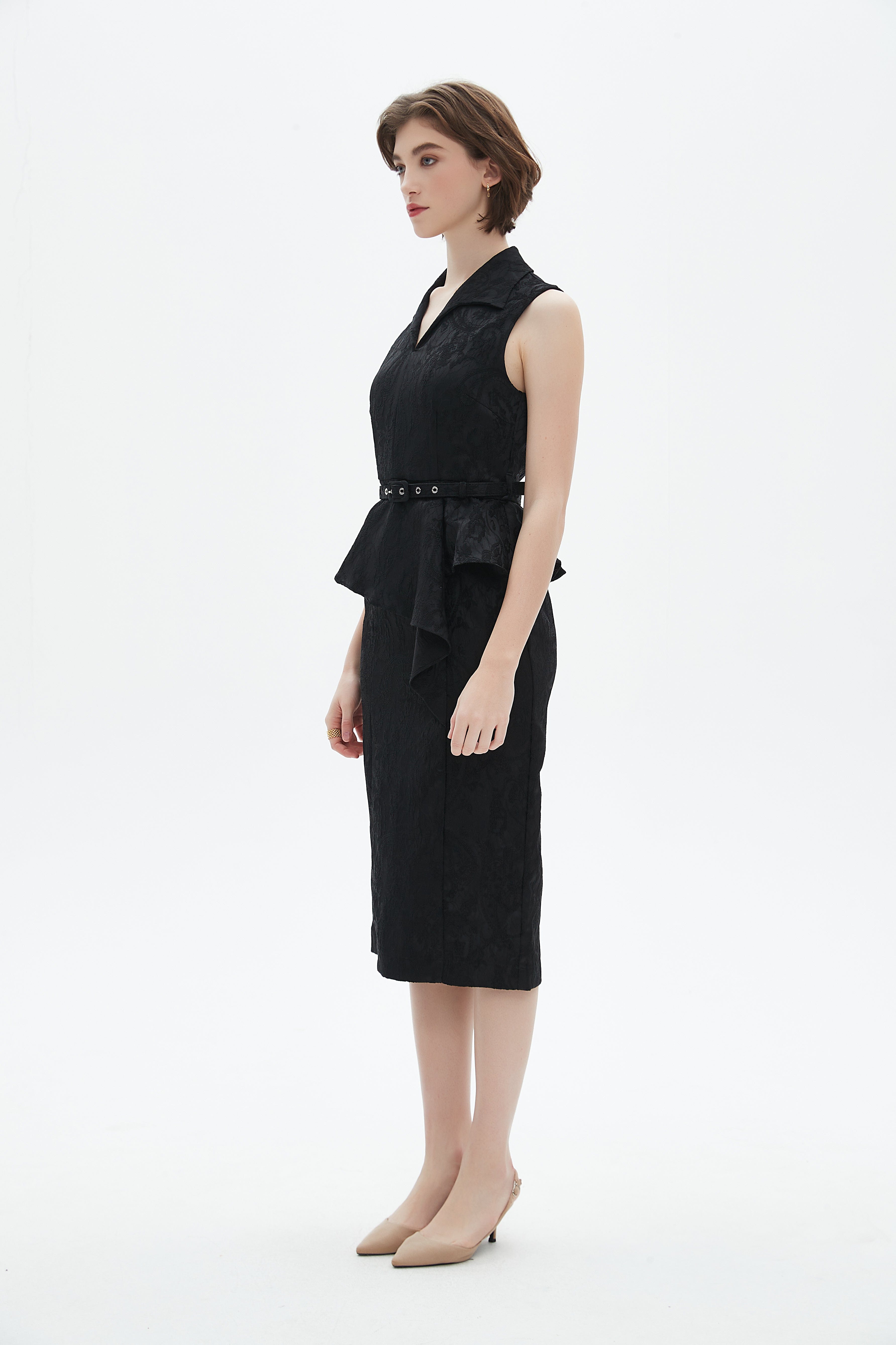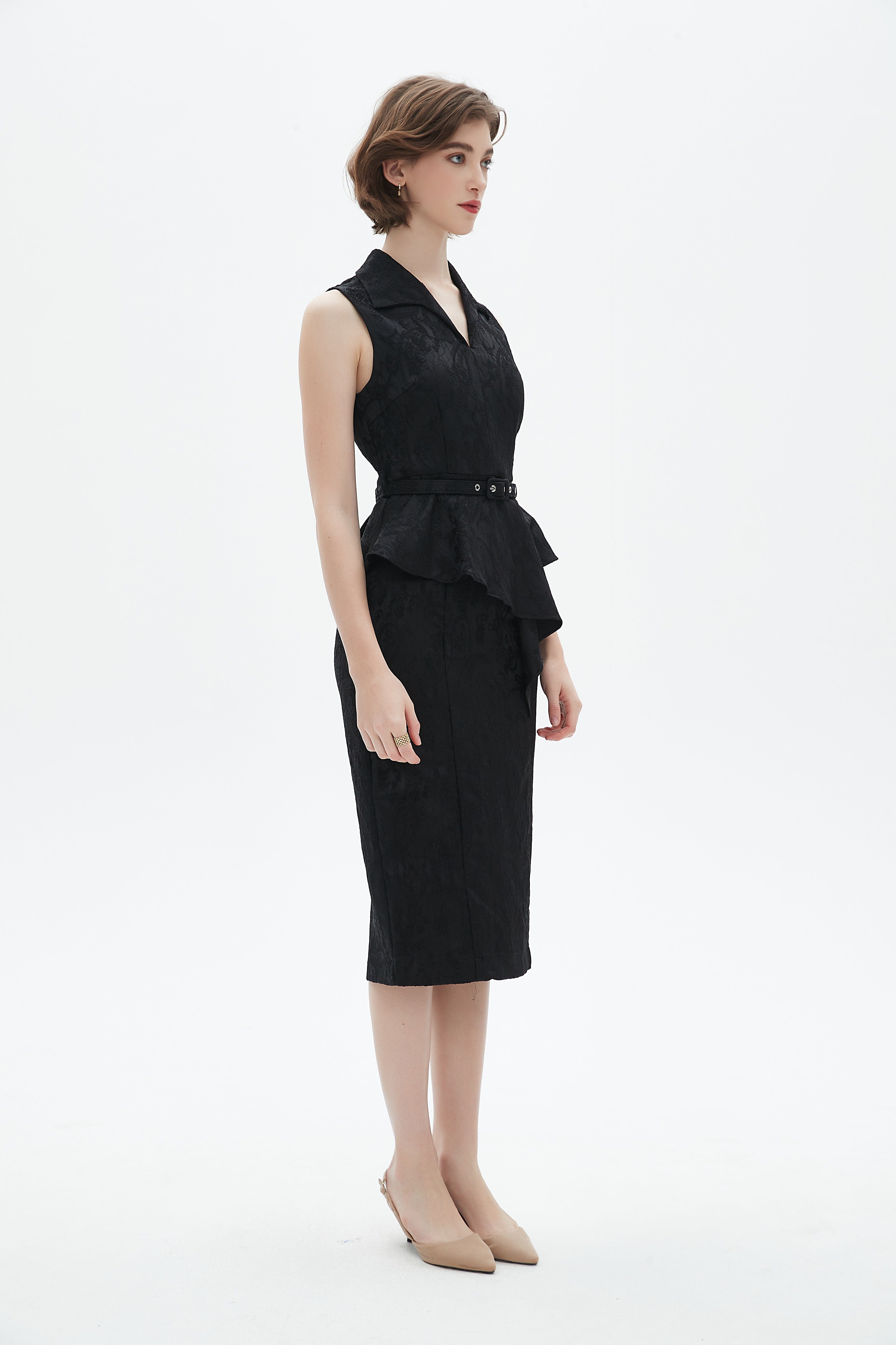 فستان ميدي بيلسيه بدون اكمام بياقة قميص وحزام عالخصر