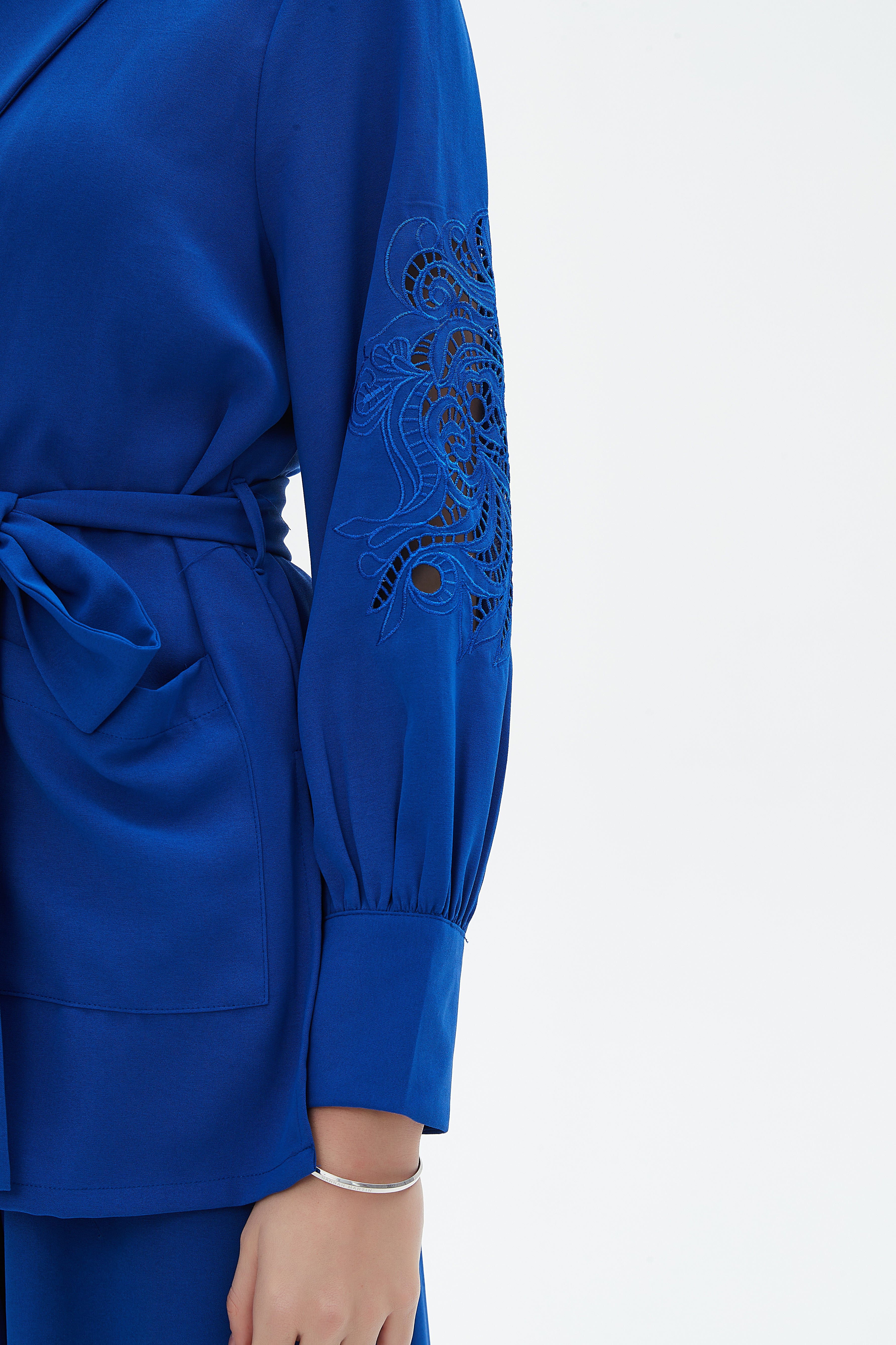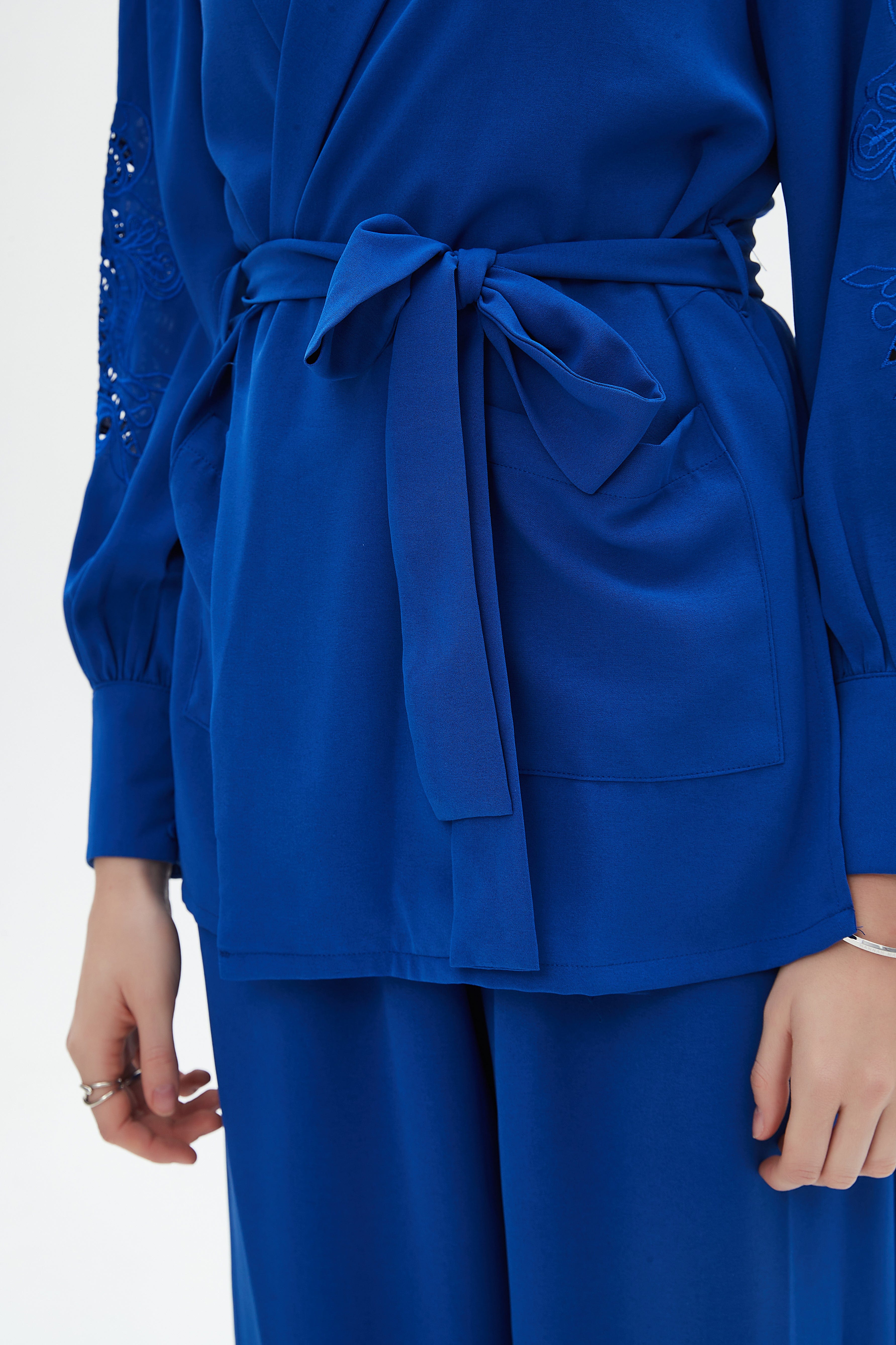 كارديجان نسائي بتفاصيل على الكم ورباط على الخصر