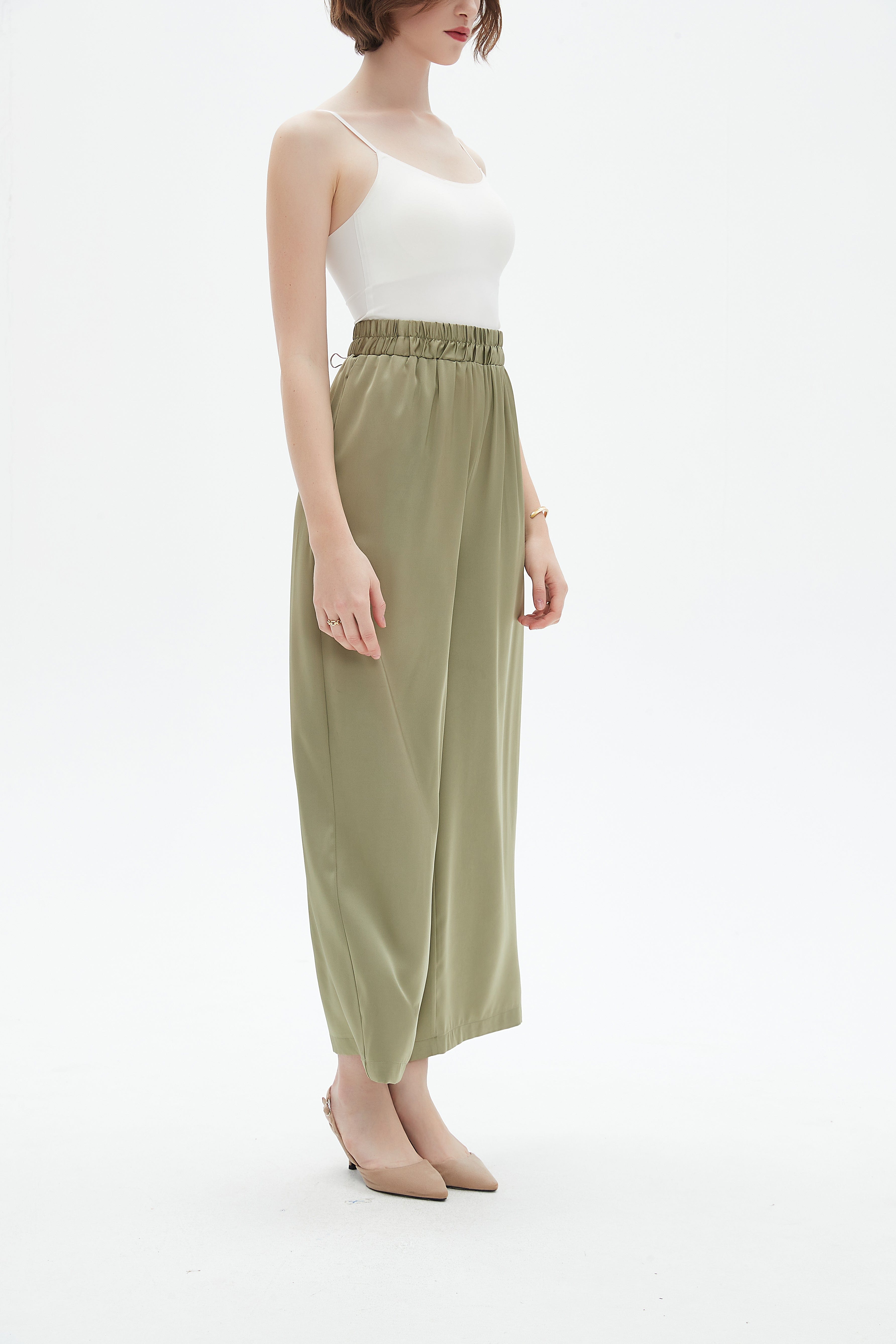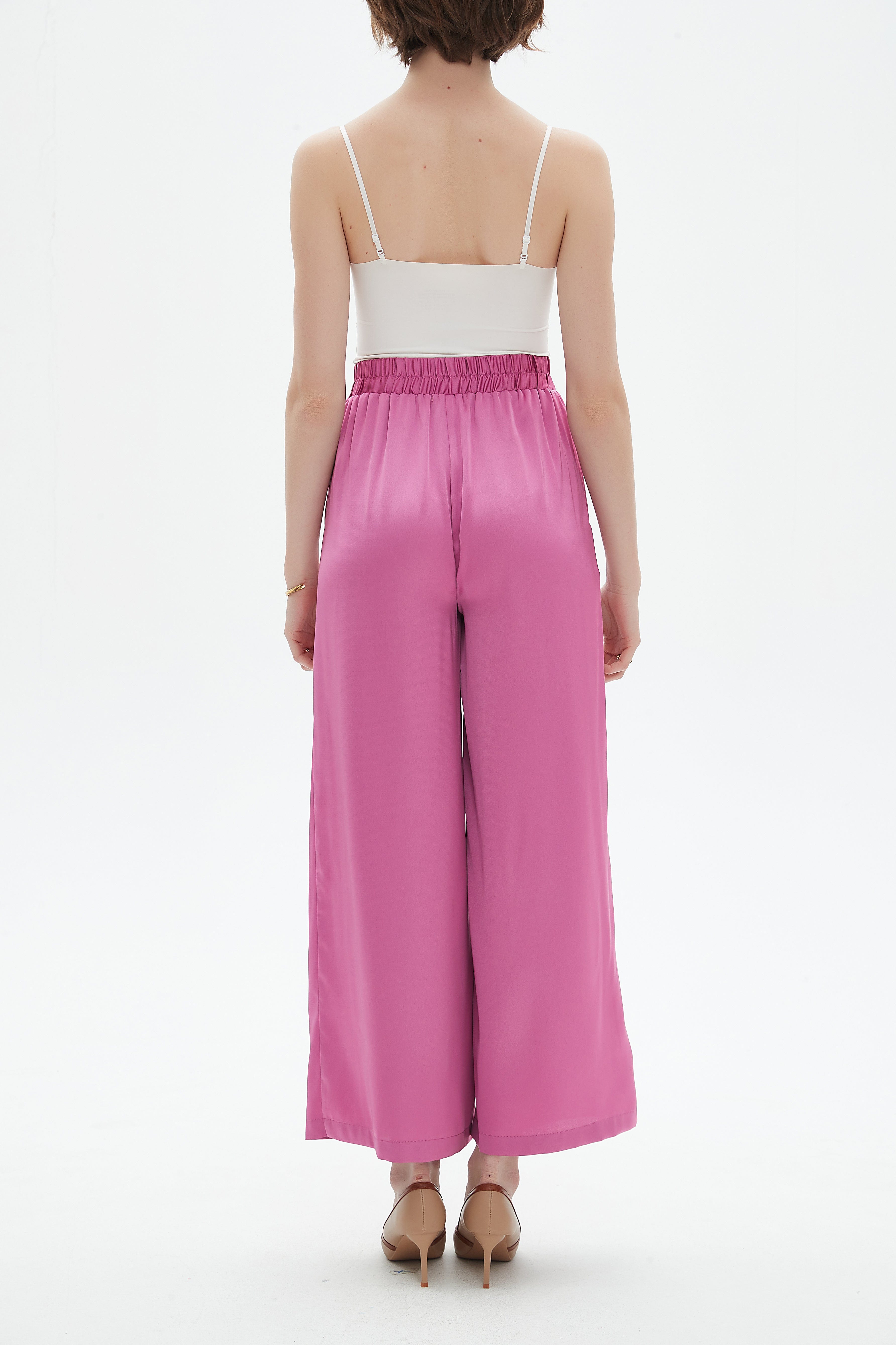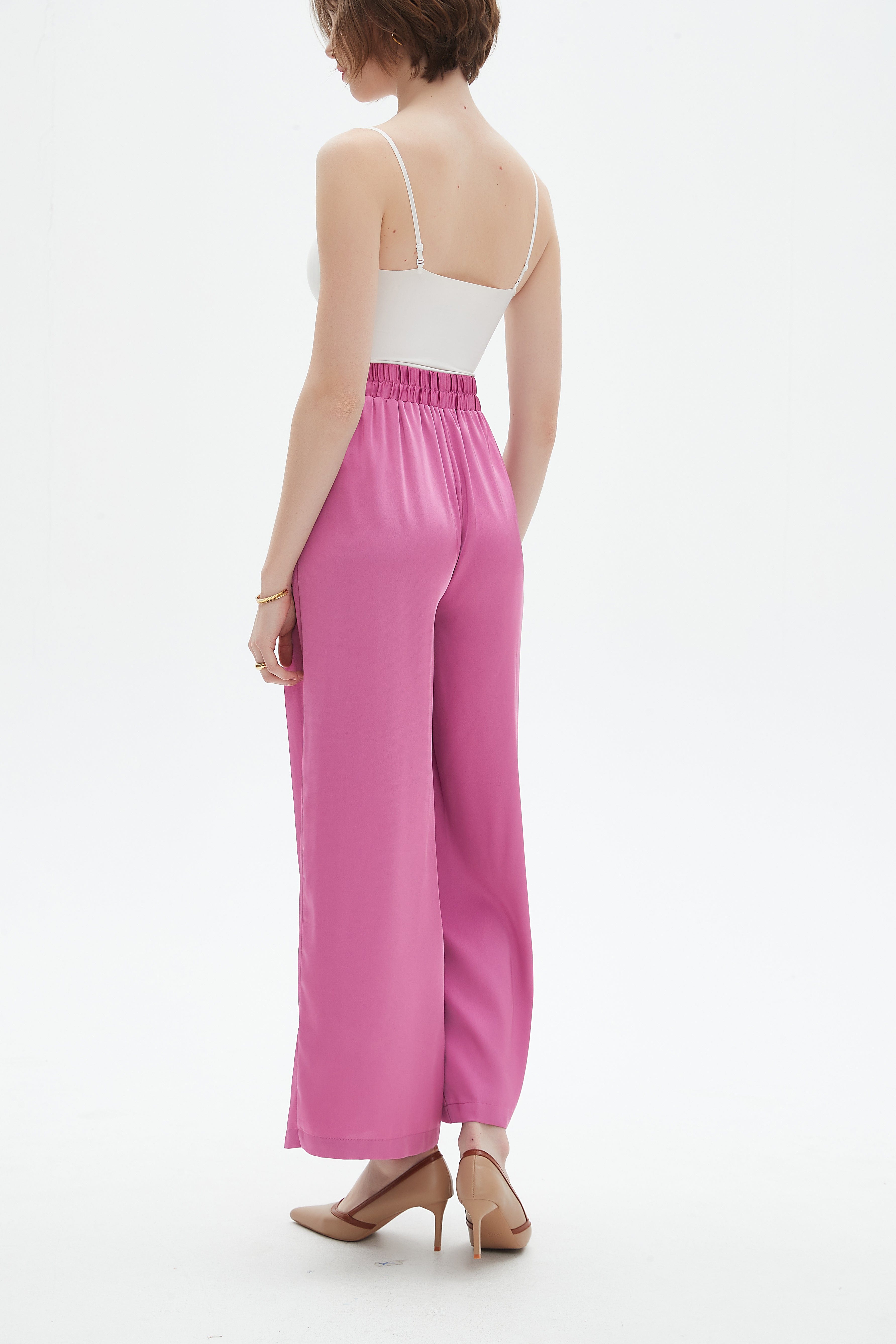 بنطلون نسائي بخصر مطاطي مرتفع قصة مستقيمة