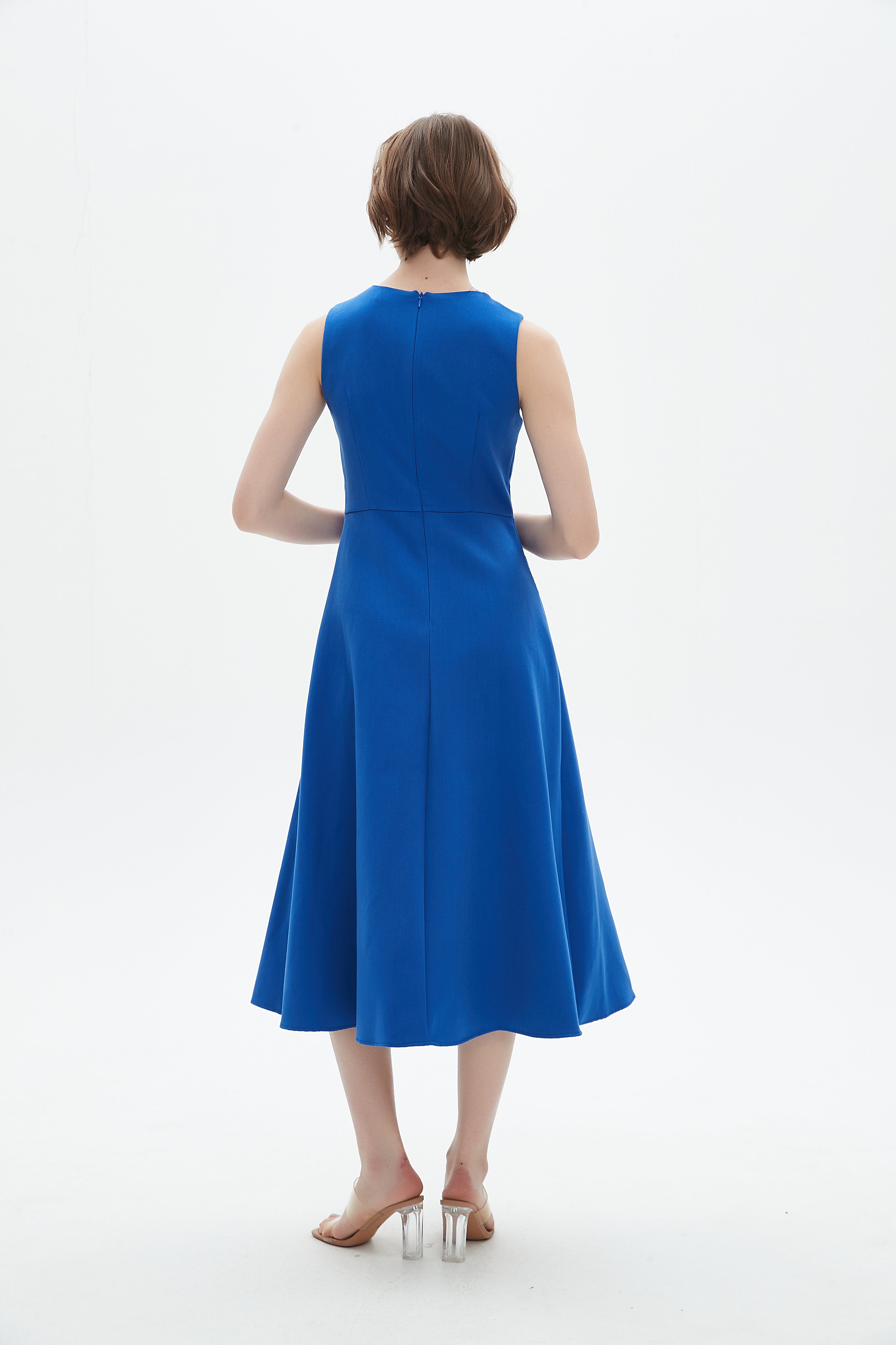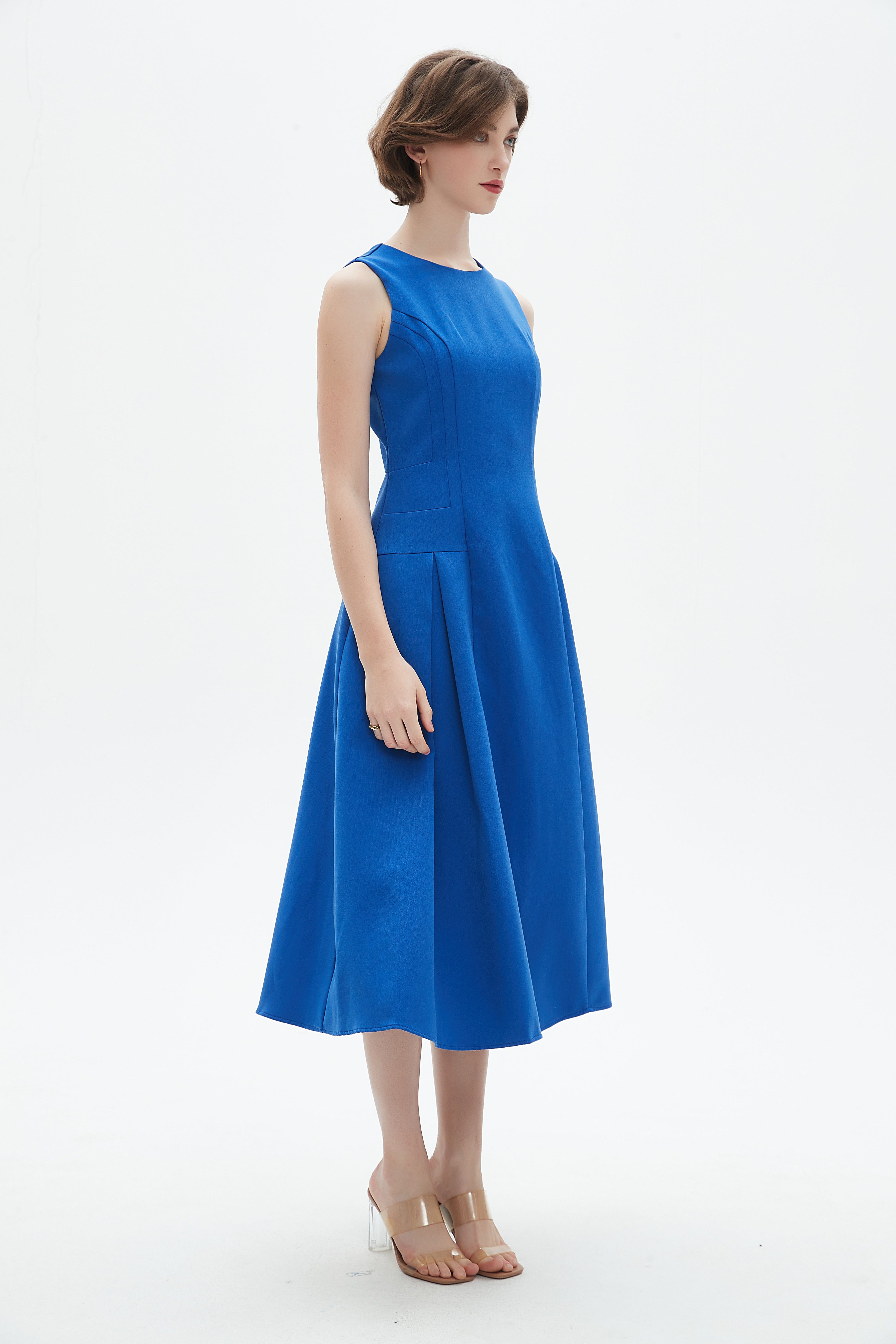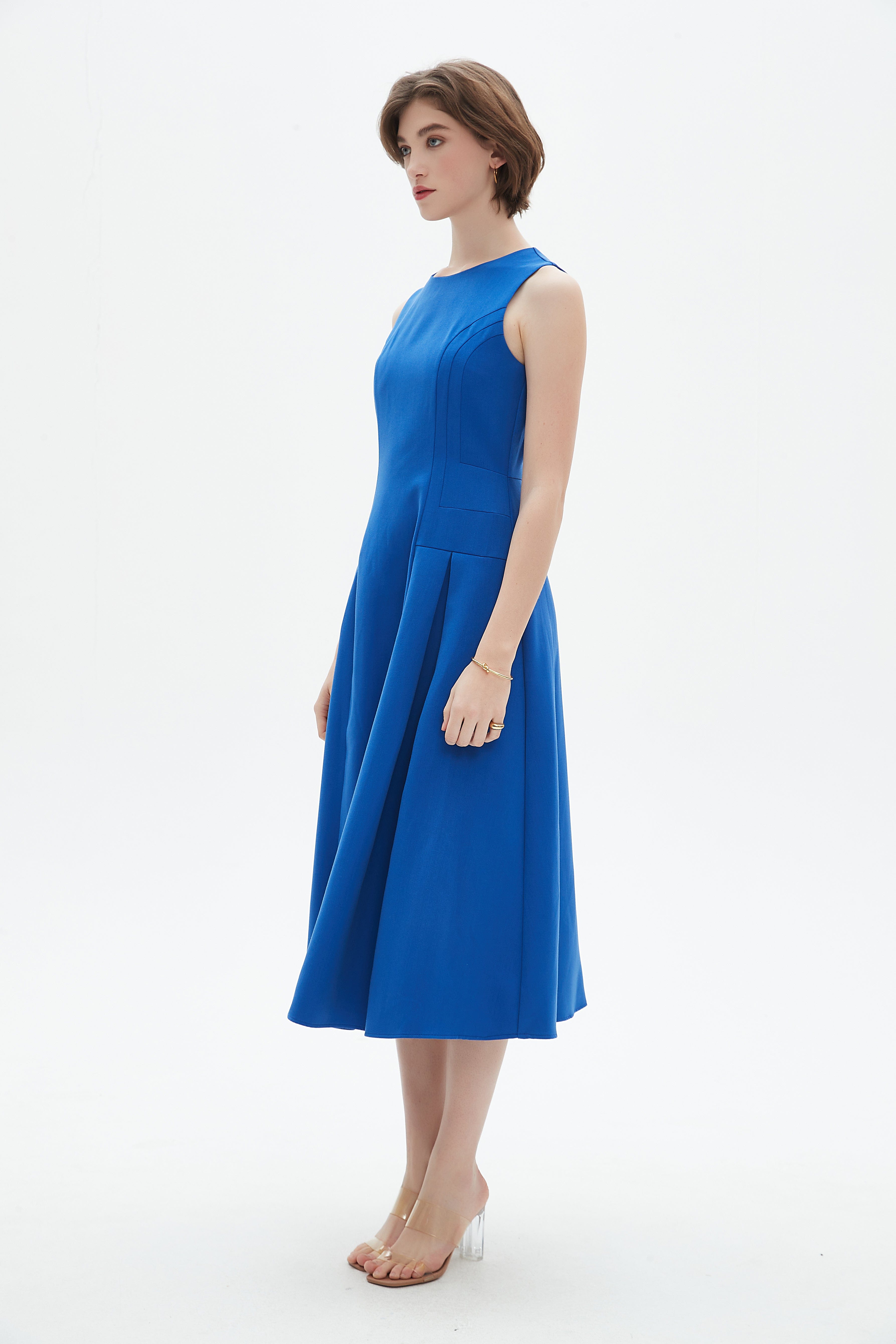 فستان ميدي بدون اكمام بيلسيه مورد فتحة رقبة دائرية