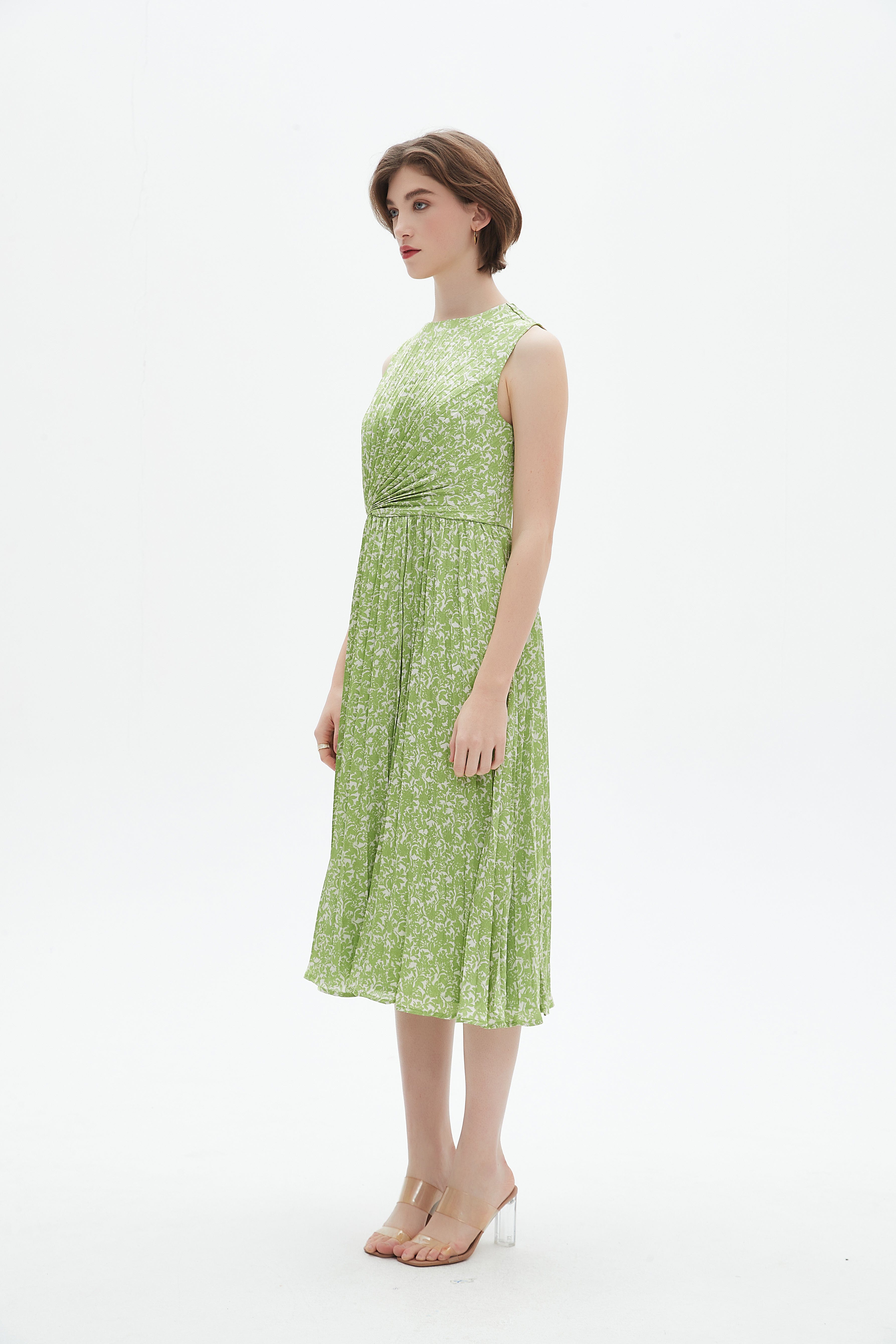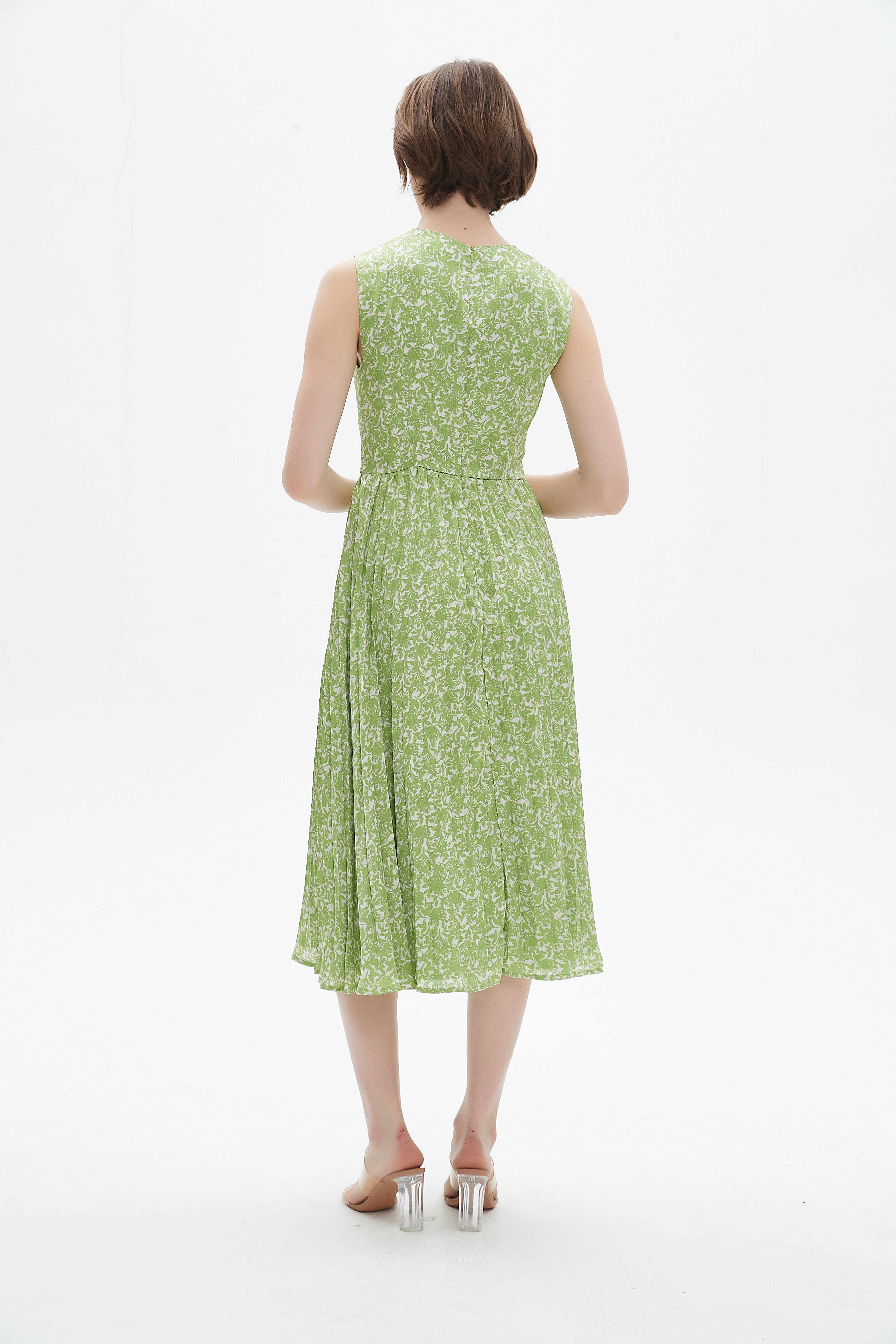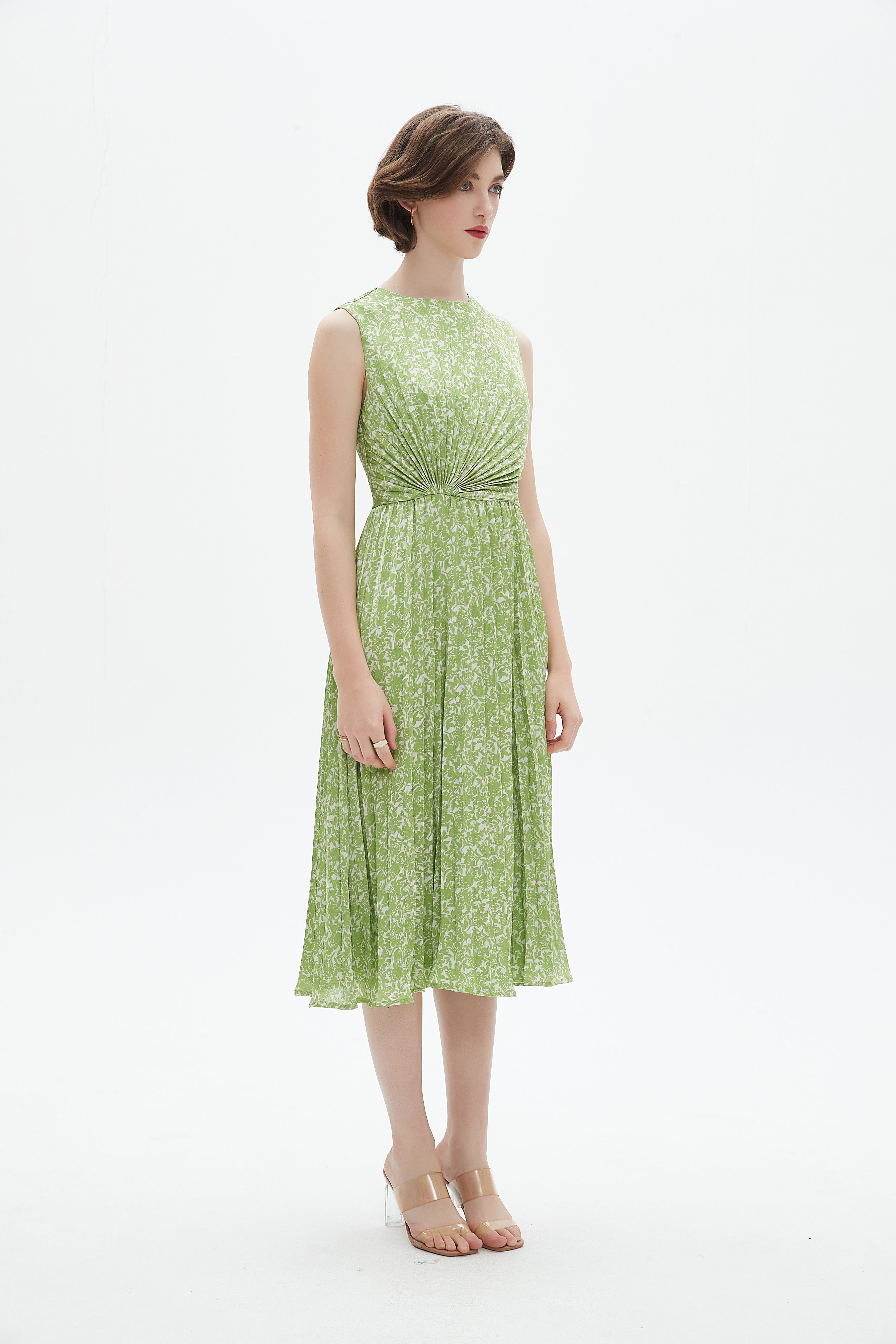 فستان ميدي بدون اكمام مورد بطبقة شيفون فتحة رقبة دائرية