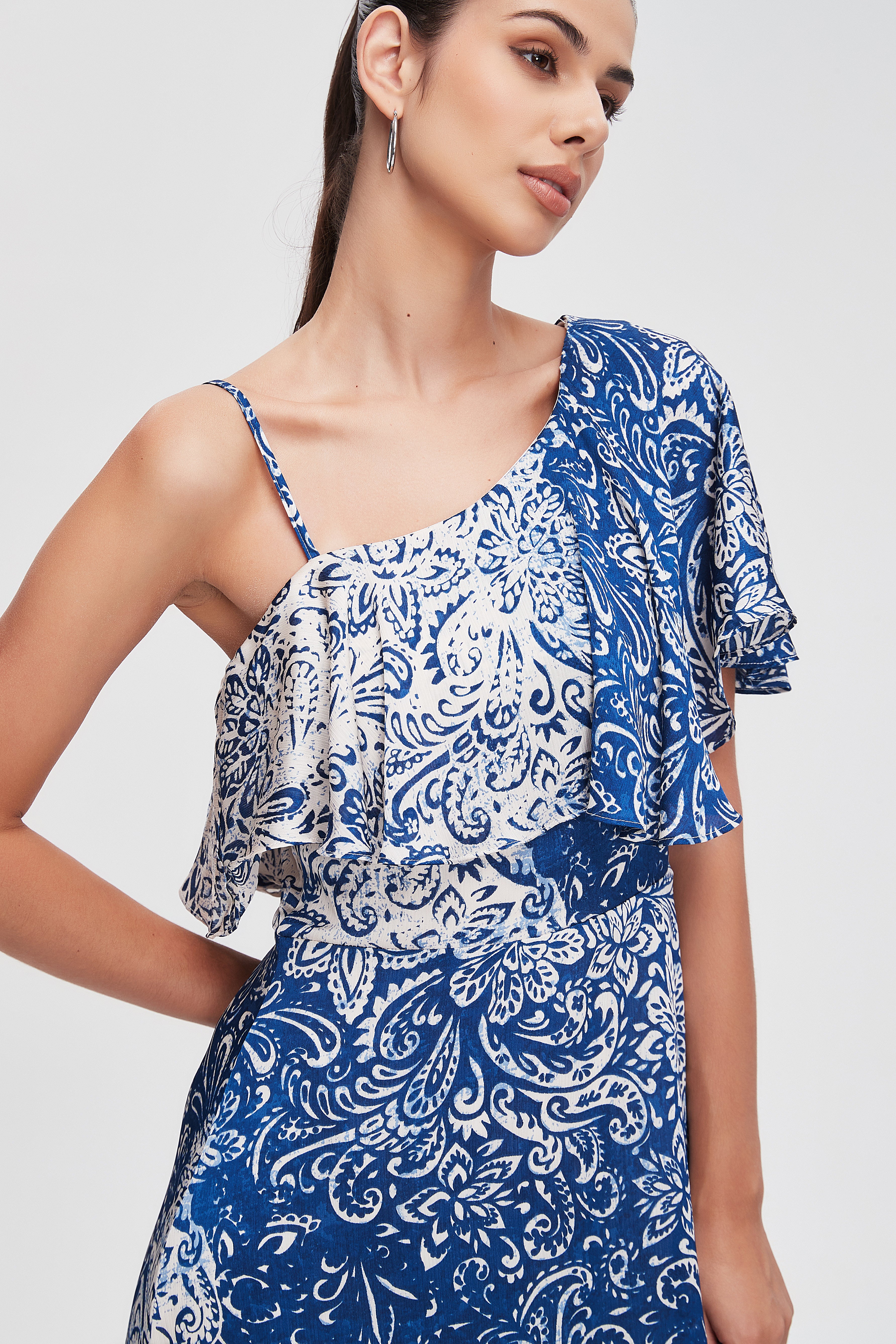 - رقبة كتف واحد مع كم قصير لمسة عصرية
