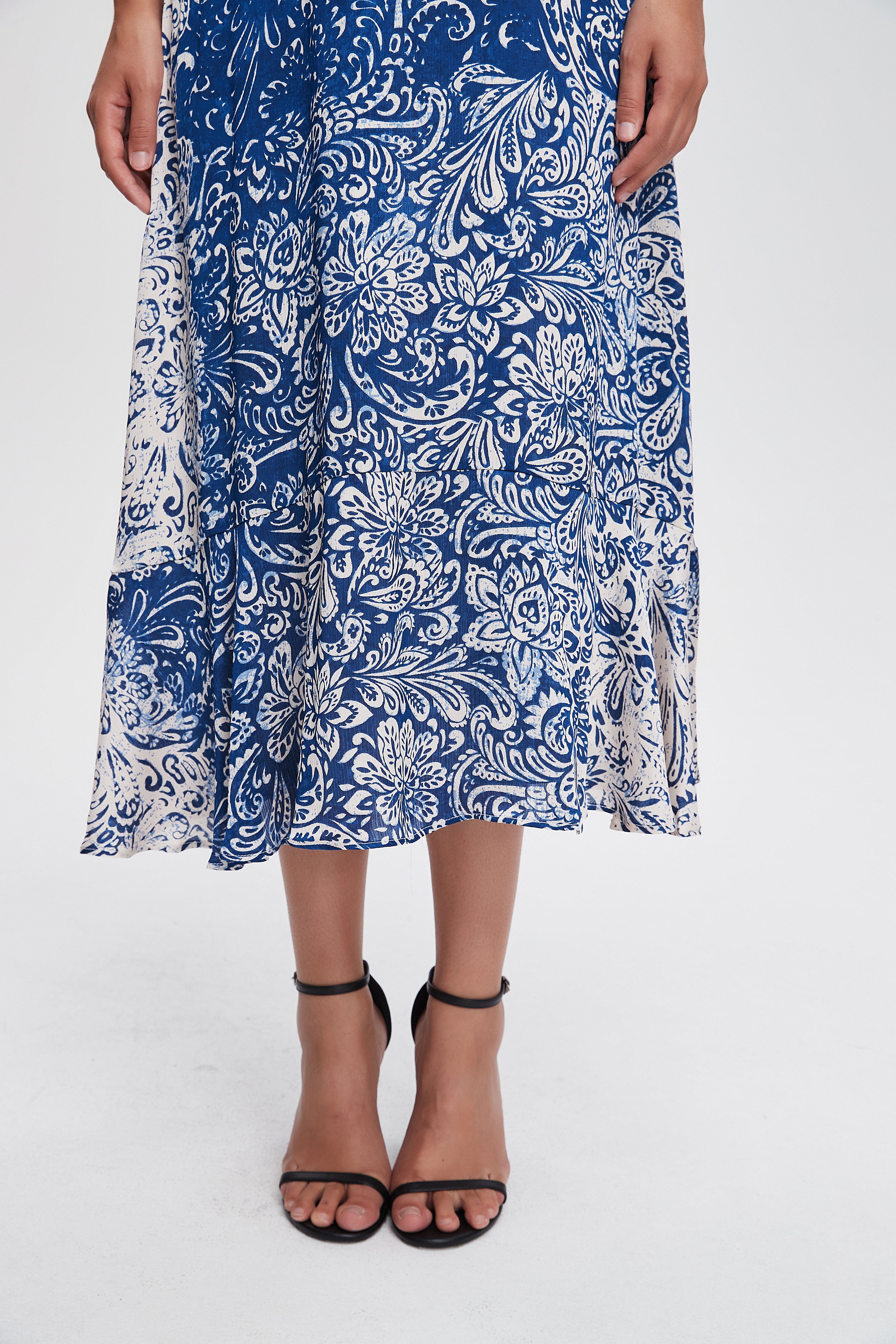 - العناية: غسلي الفستان بماء بارد على برنامج لطيف مع ألوان مشابهة، تجنبي المبيضات، جففيه على الرف واكويه بدرجة حرارة منخفضة عند الحاجة.