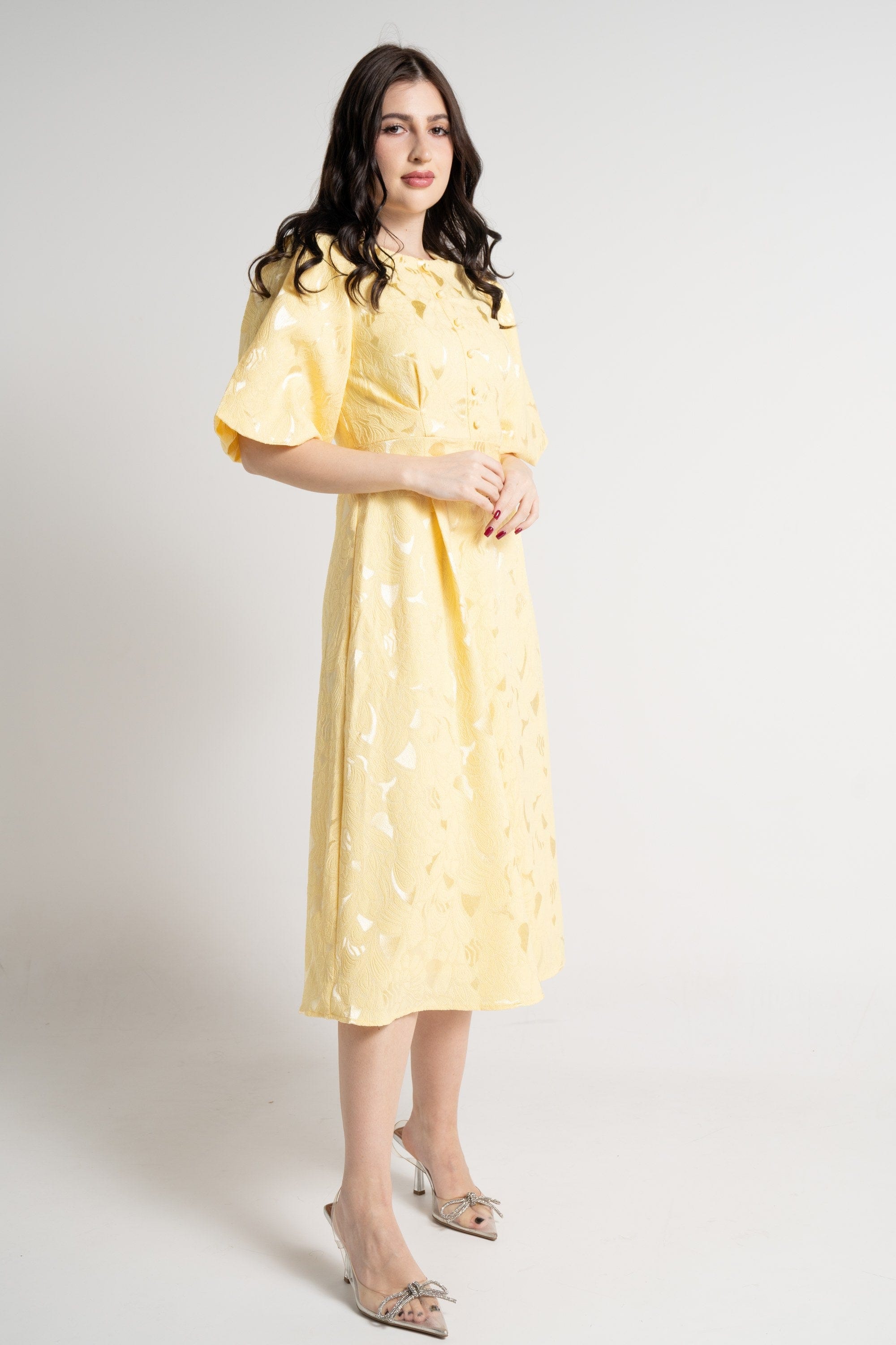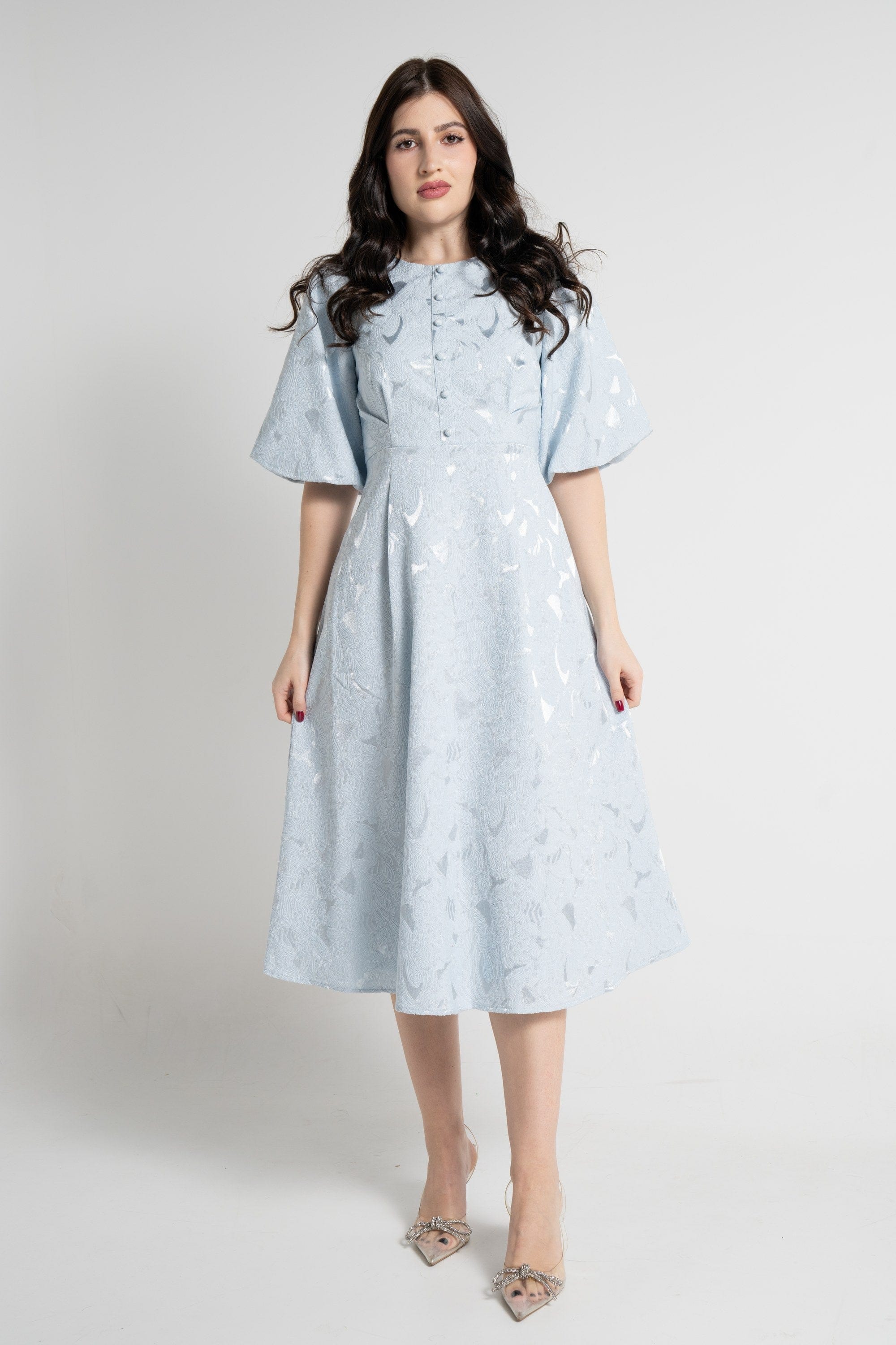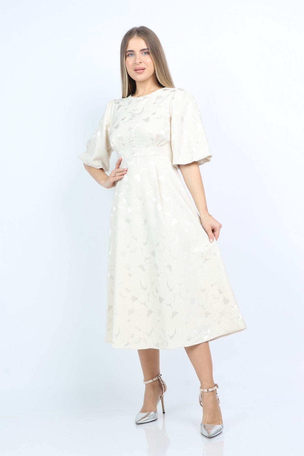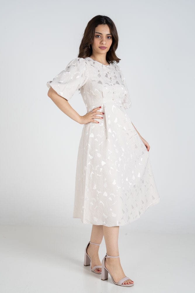 فستان ميدي كلاسيكي منقوش كم منفوش قصير