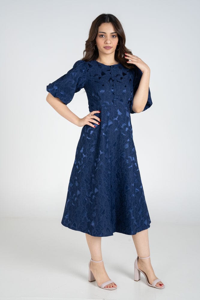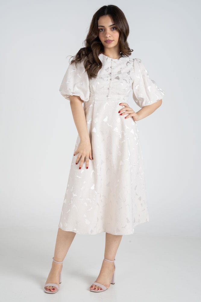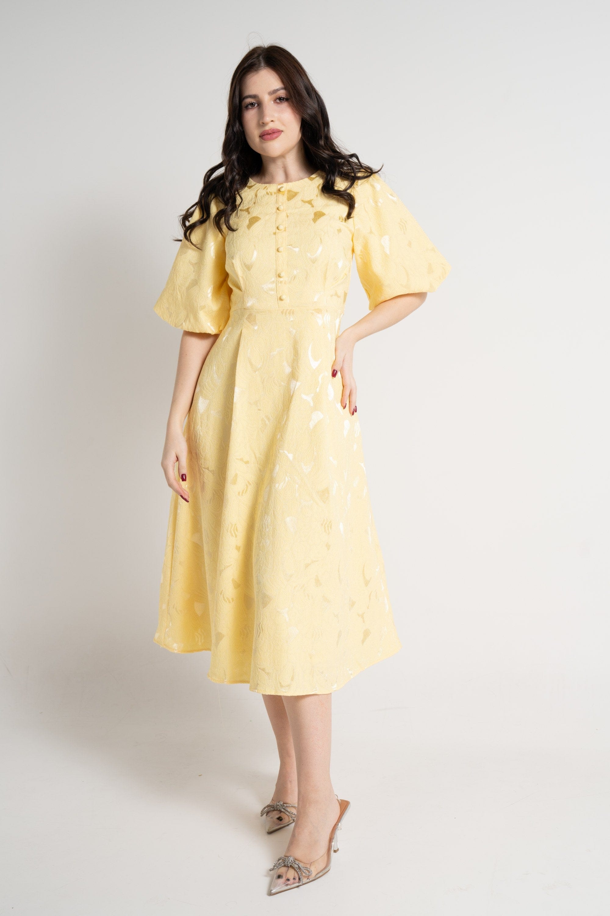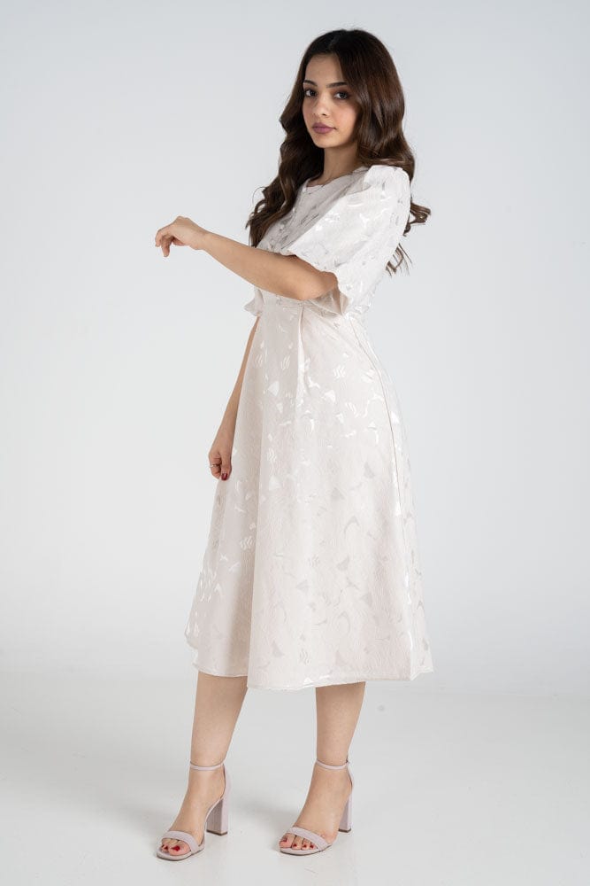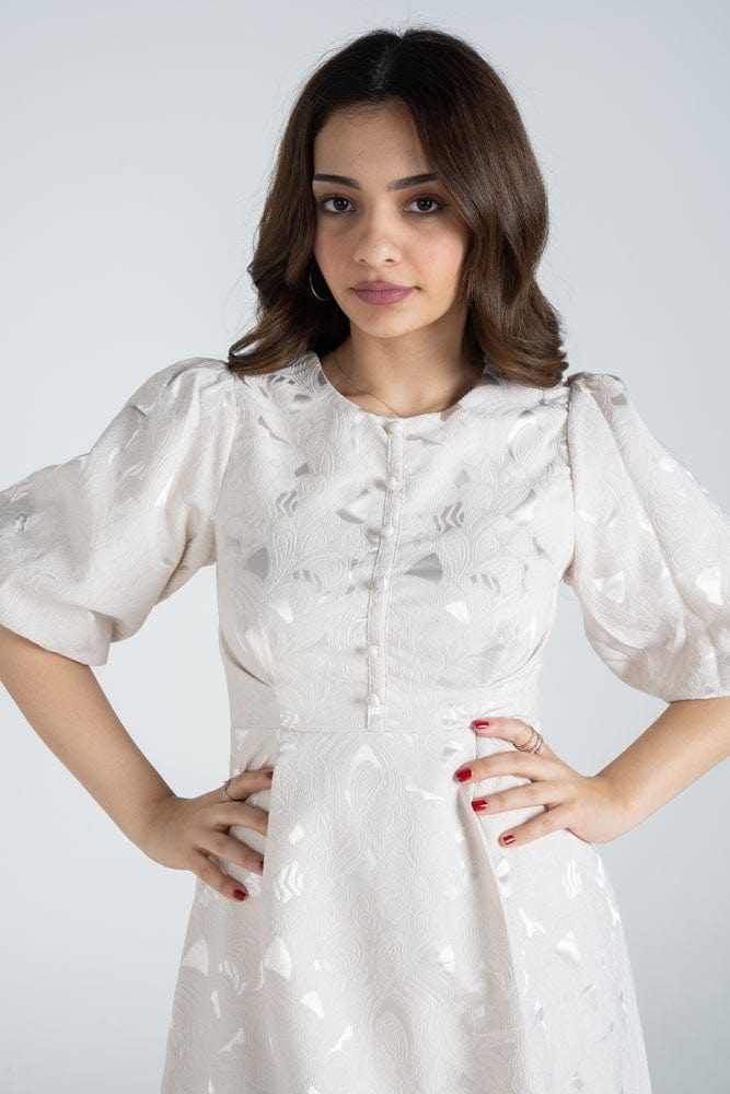 فستان ميدي كلاسيكي منقوش كم منفوش قصير
