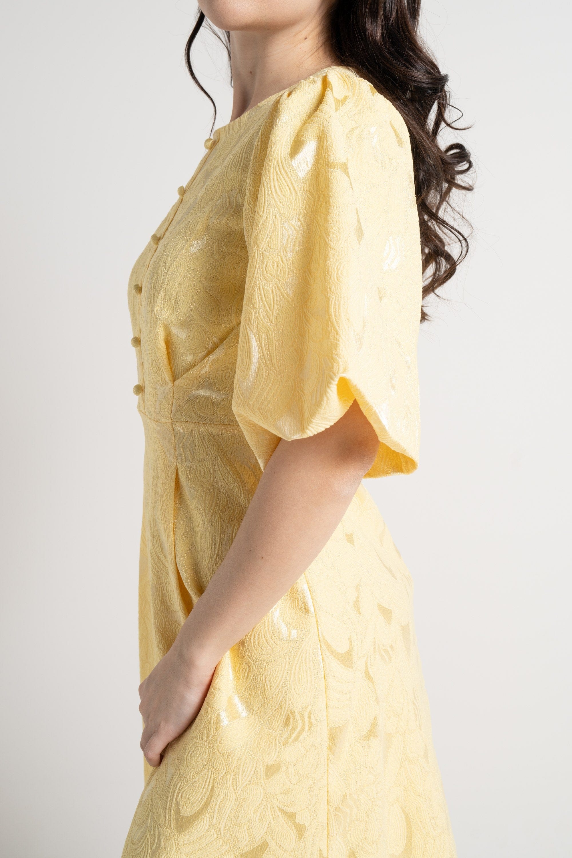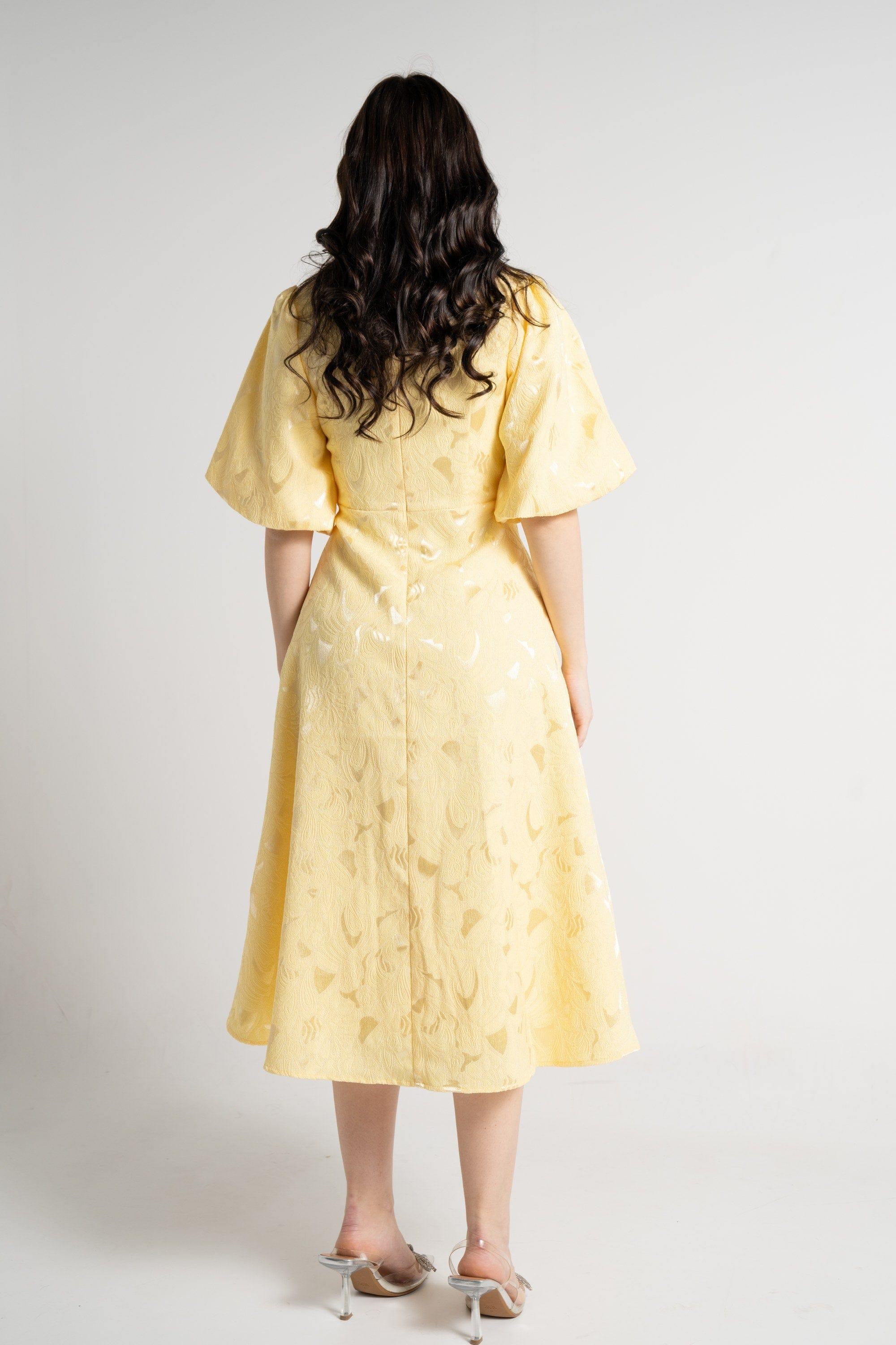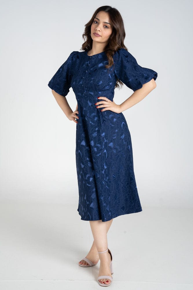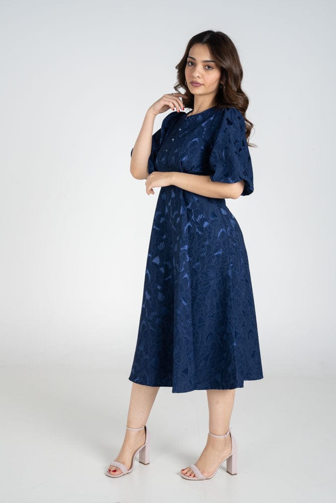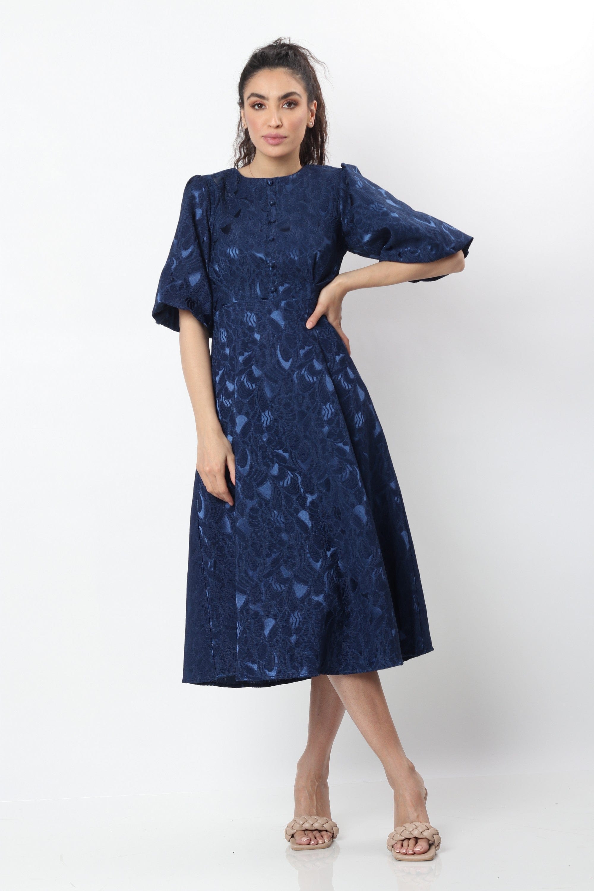 فستان ميدي كلاسيكي منقوش كم منفوش قصير