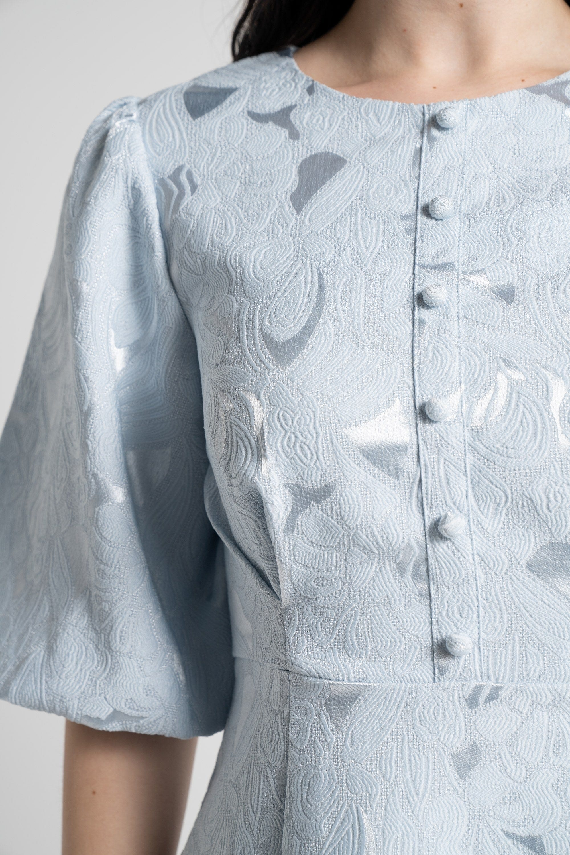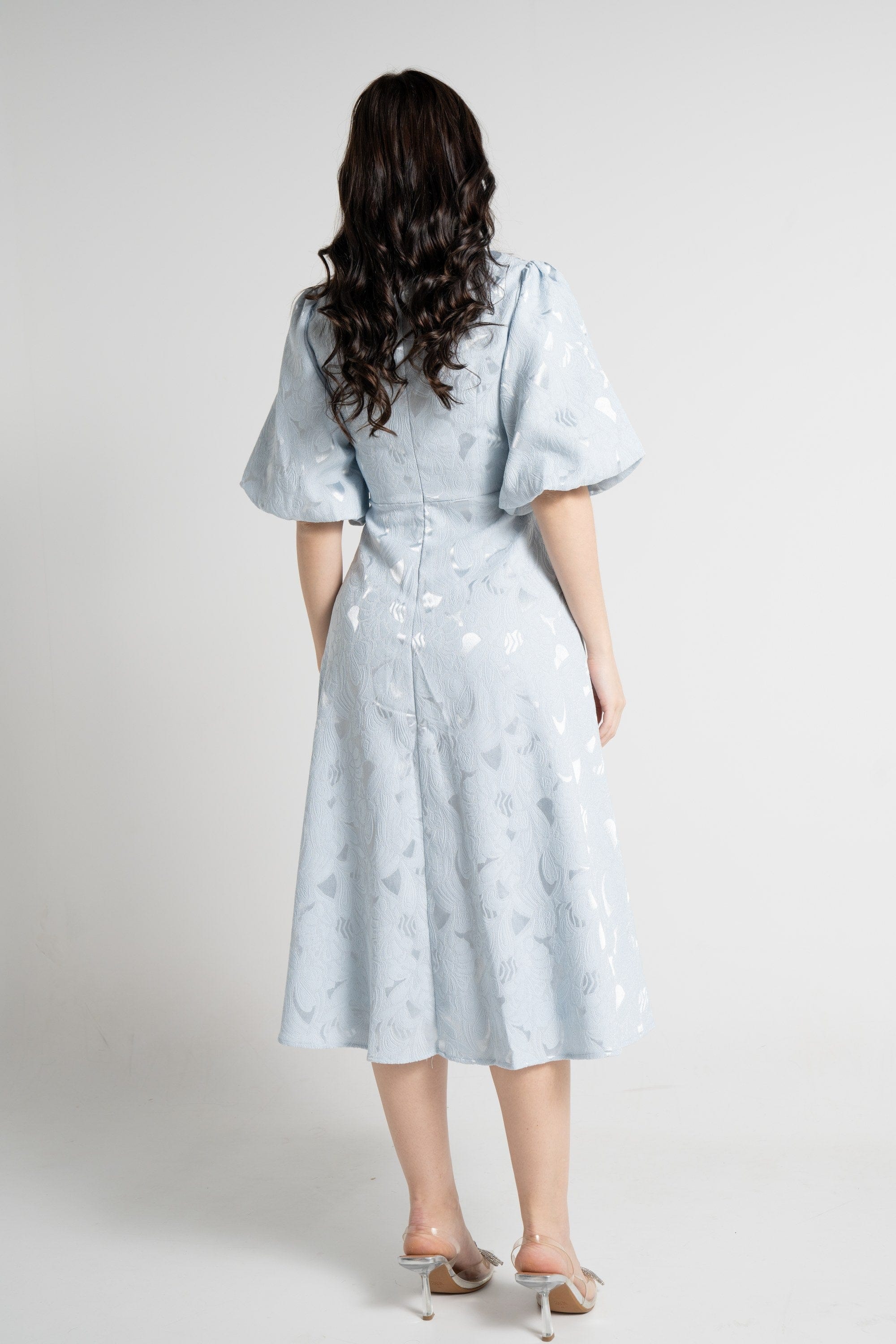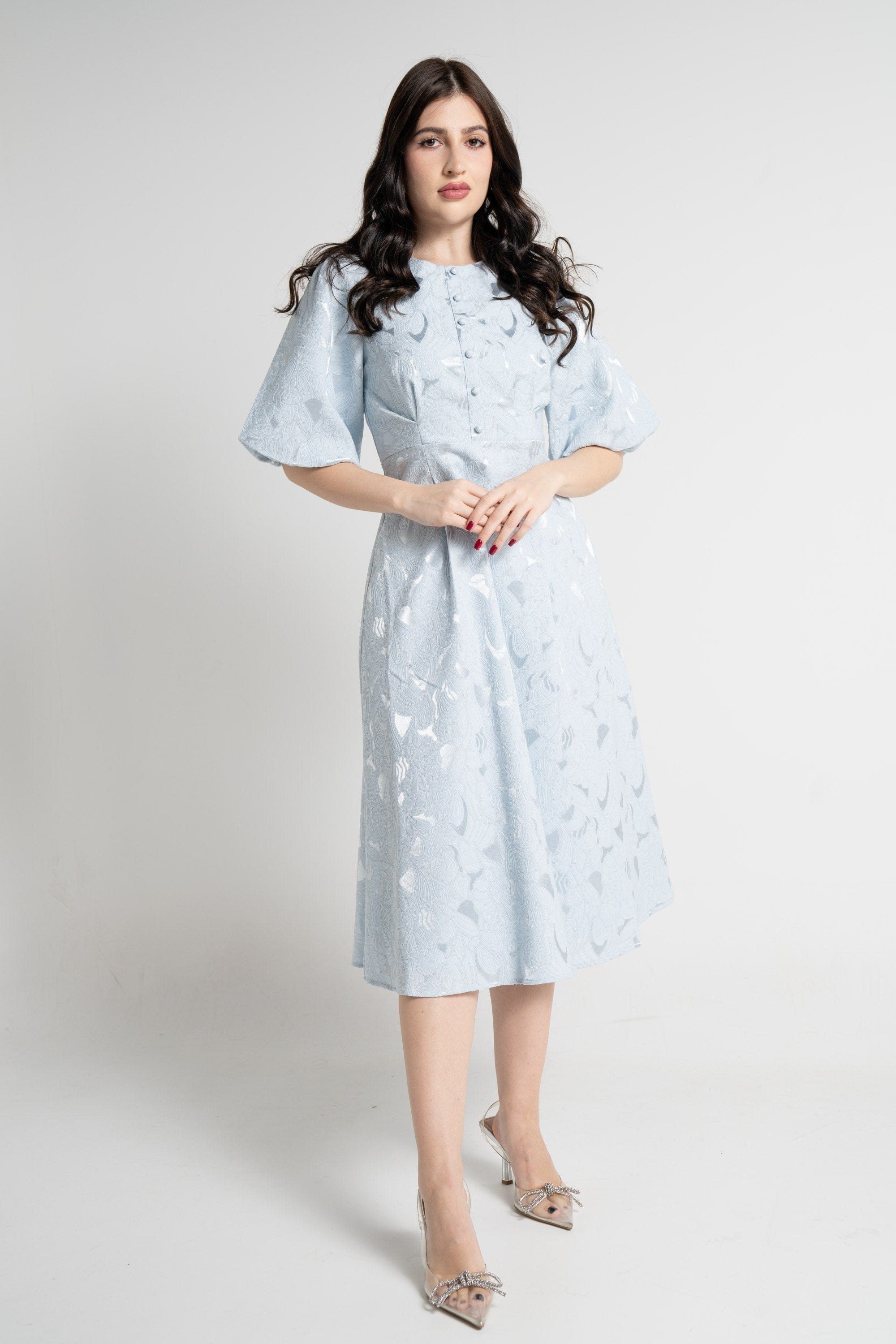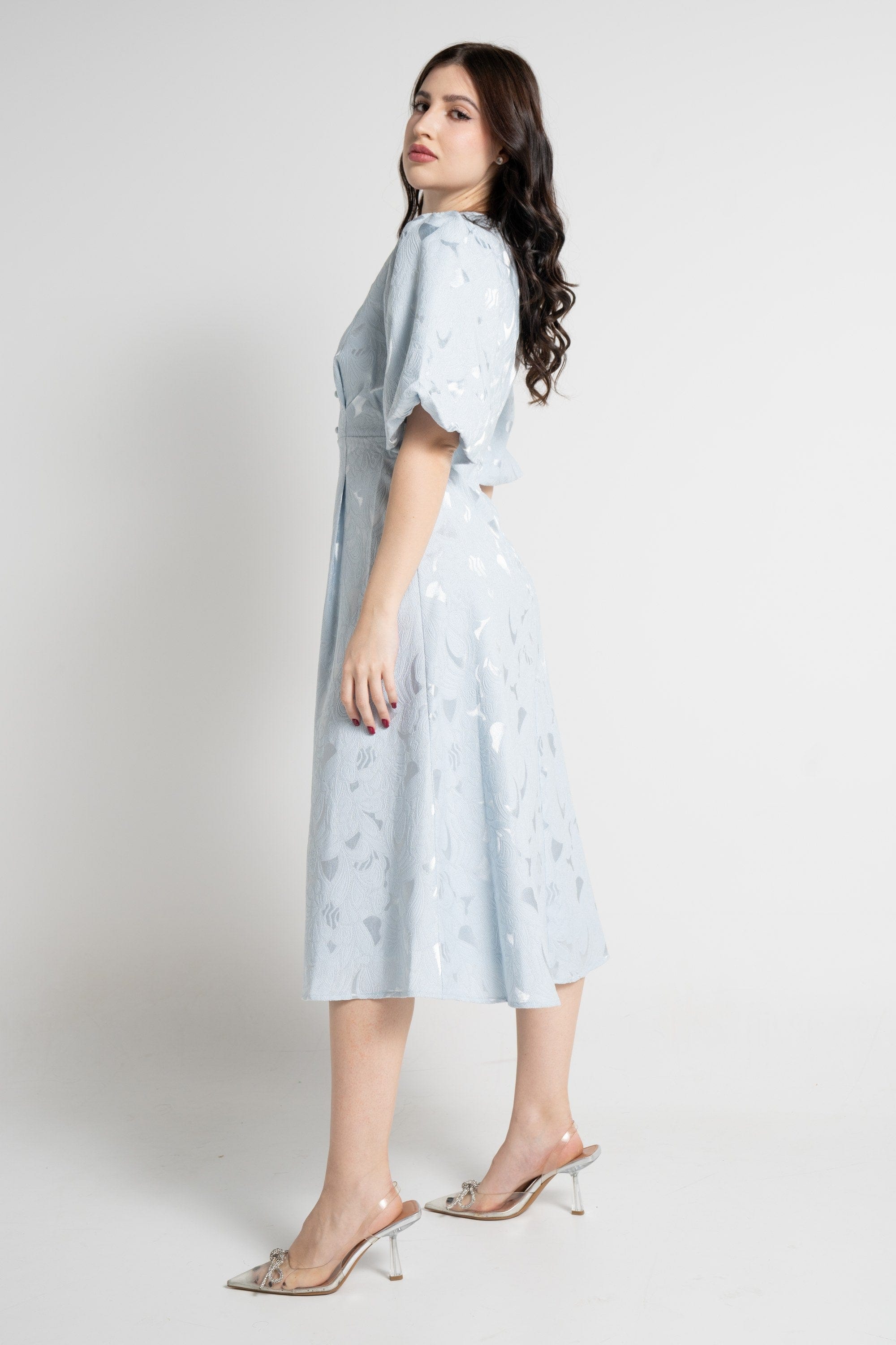 - نقشة أنثوية بلون أزرق فاتح تضيف حياة للإطلالة