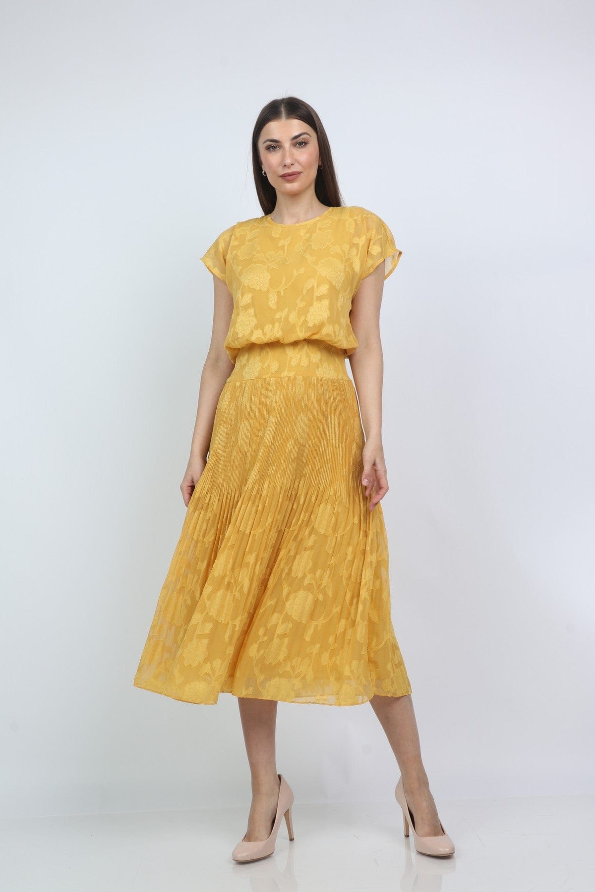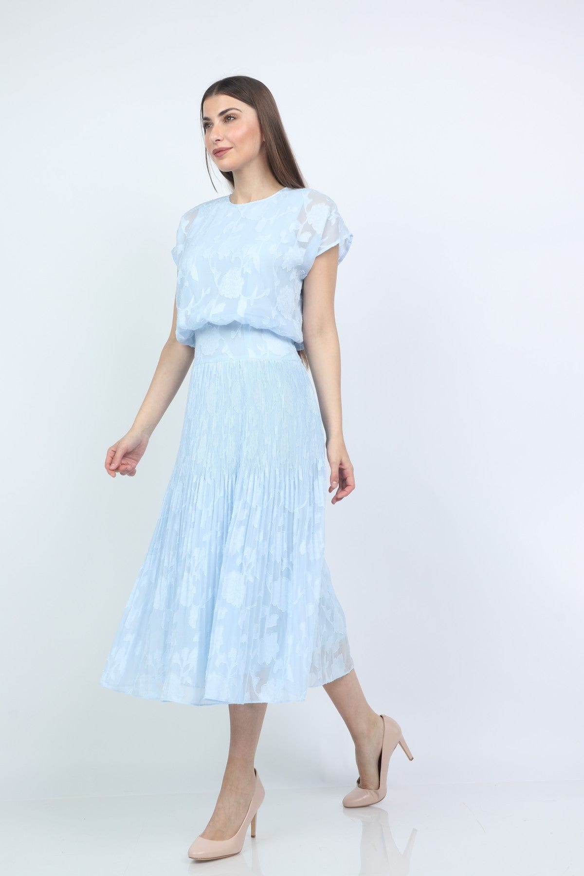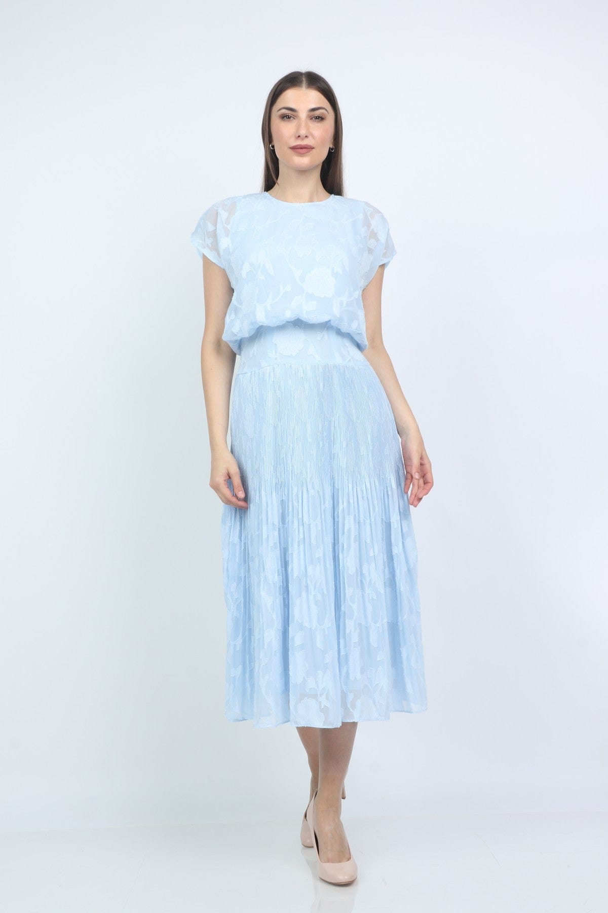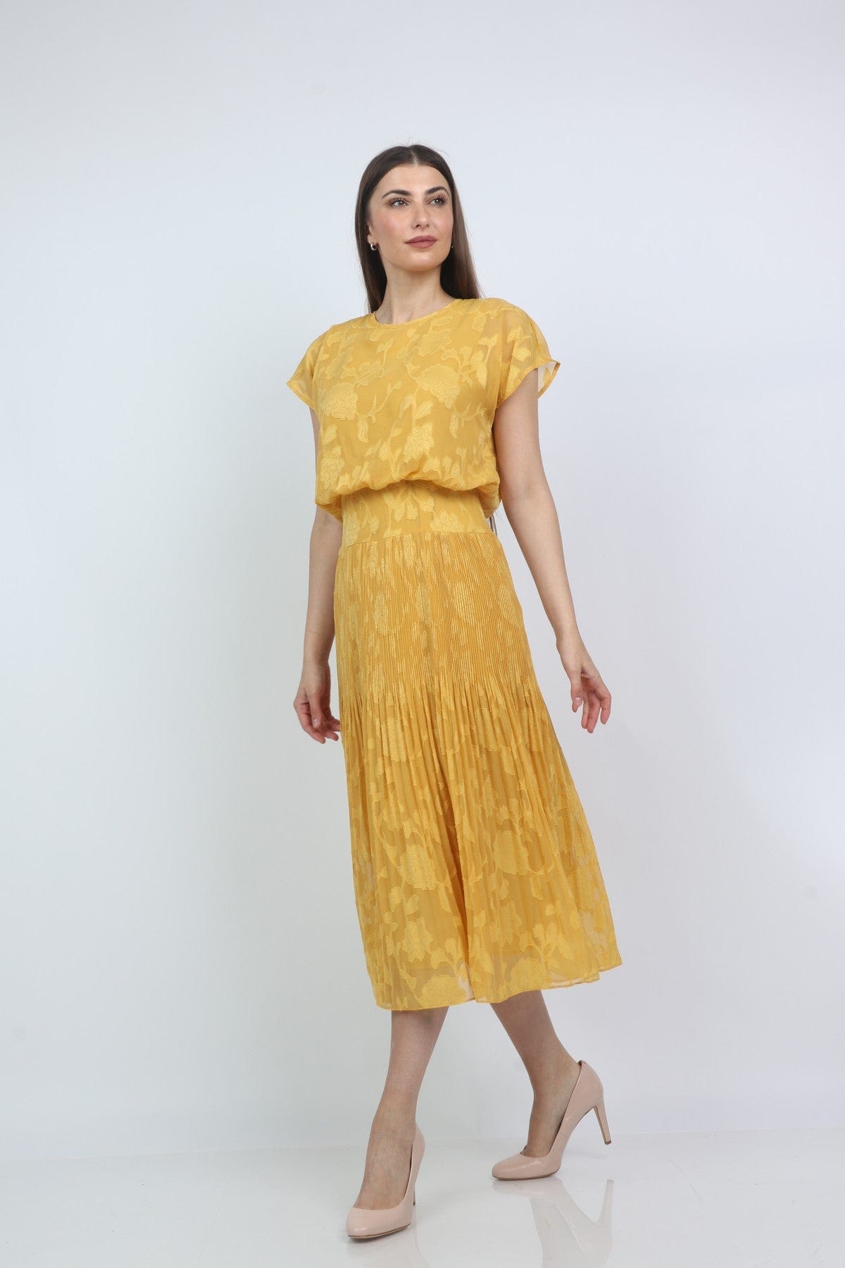 - العناية: اغسلي الفستان بماء بارد على غسالة دورة لطيفة أو يدويًا، لا تبيضي، جففي على حبل بعيدًا عن الشمس المباشرة، وكويه بدرجة حرارة منخفضة عند الحاجة لأن الخامة بوليستر رفيعة.