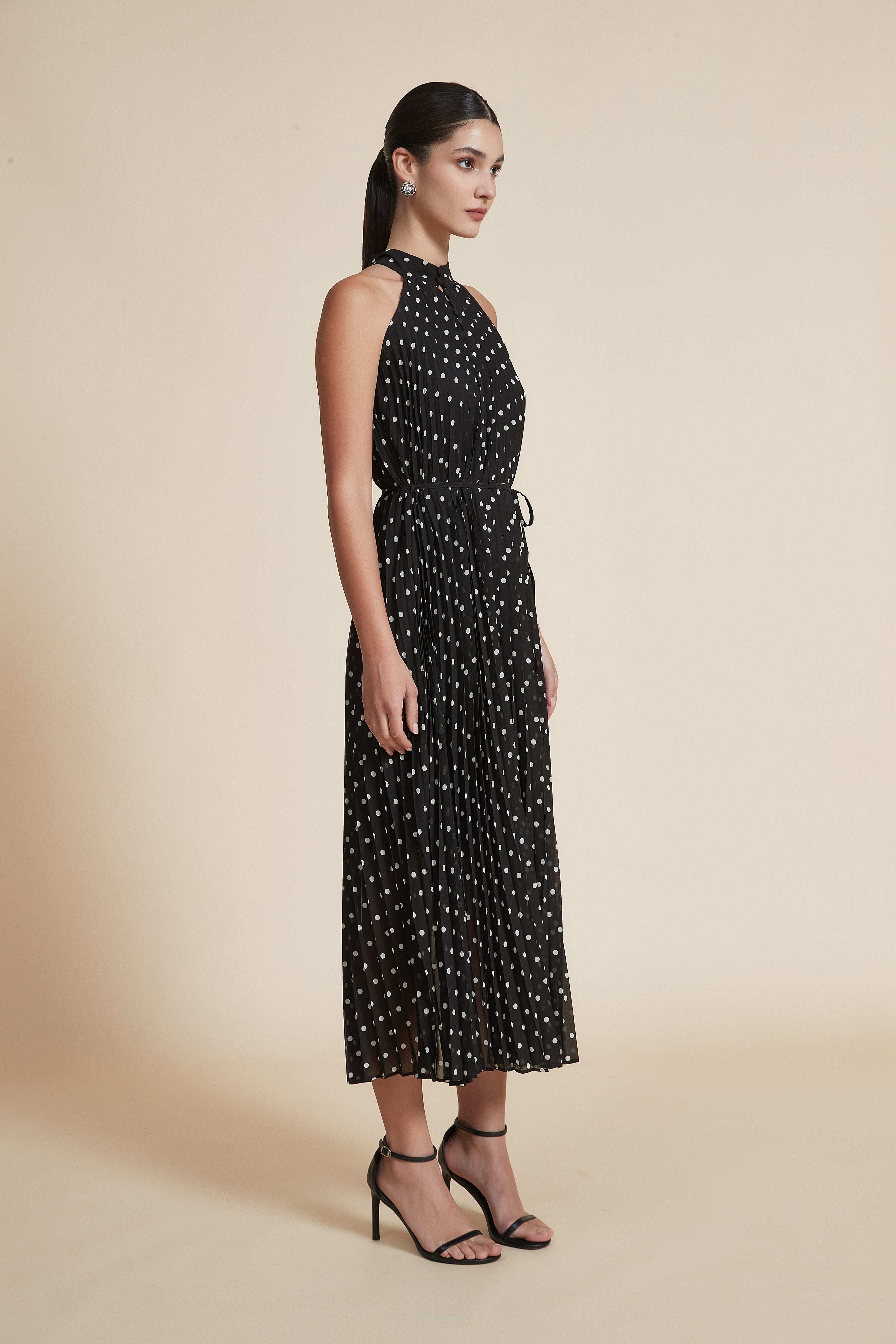 فستان ميدي بفتحة فتحة رقبة هالتير منقط بدون كم