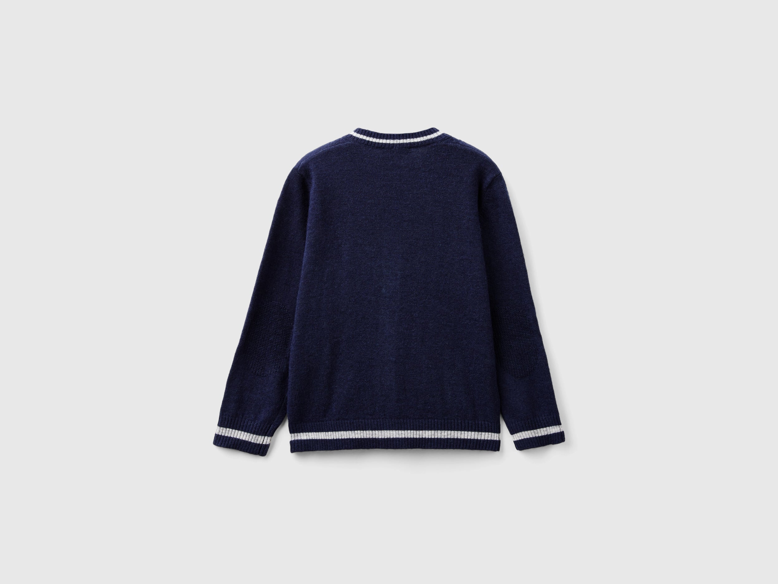 سترة اولادي من الصوف بفتحة صدر على شكل حرف V بأزرار وجيوب اماميه