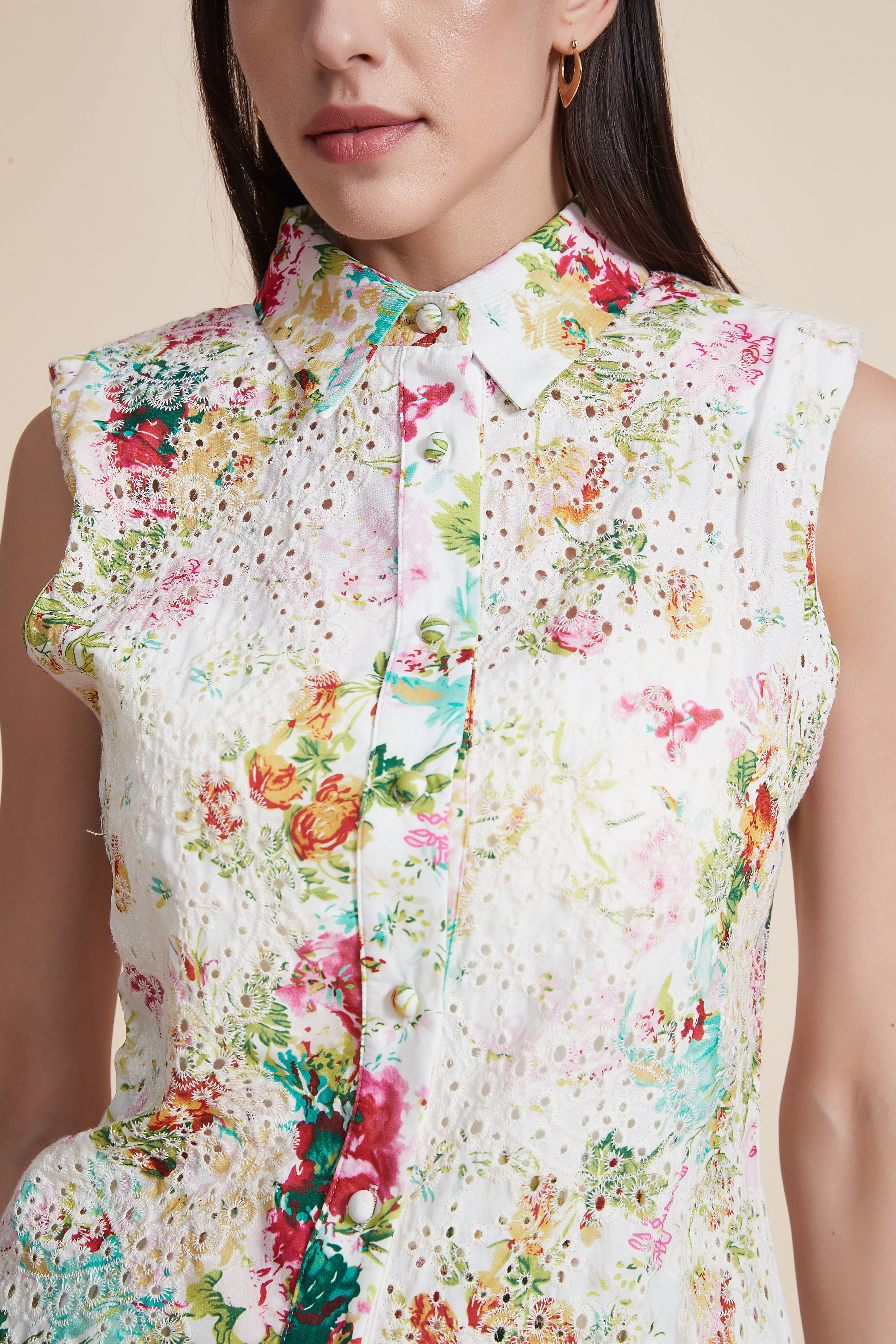 بلوزة بأزرار أمامية منقوشة تطريز انجليزي