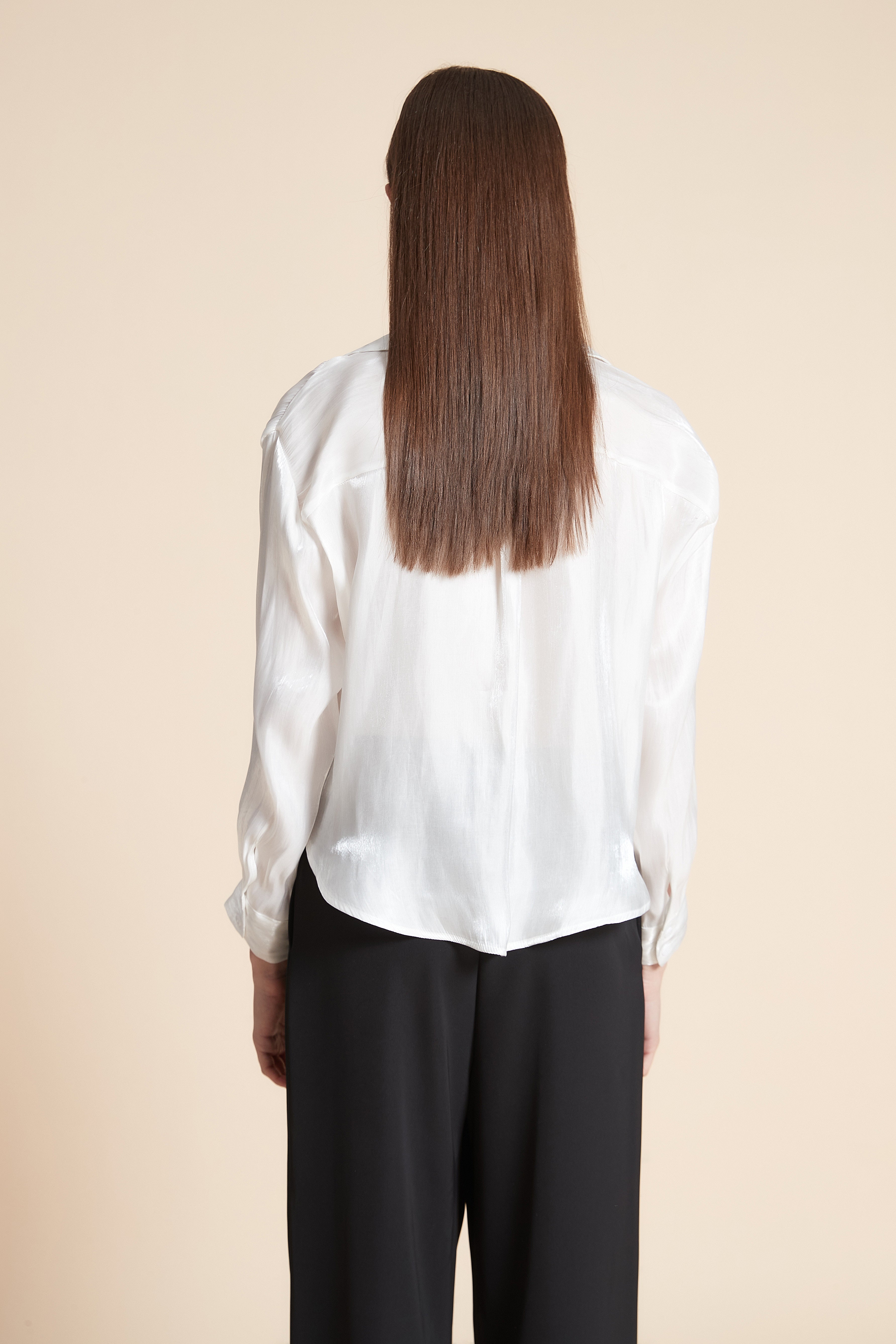 بلوزة قصيرة سادة ستان كم طويل