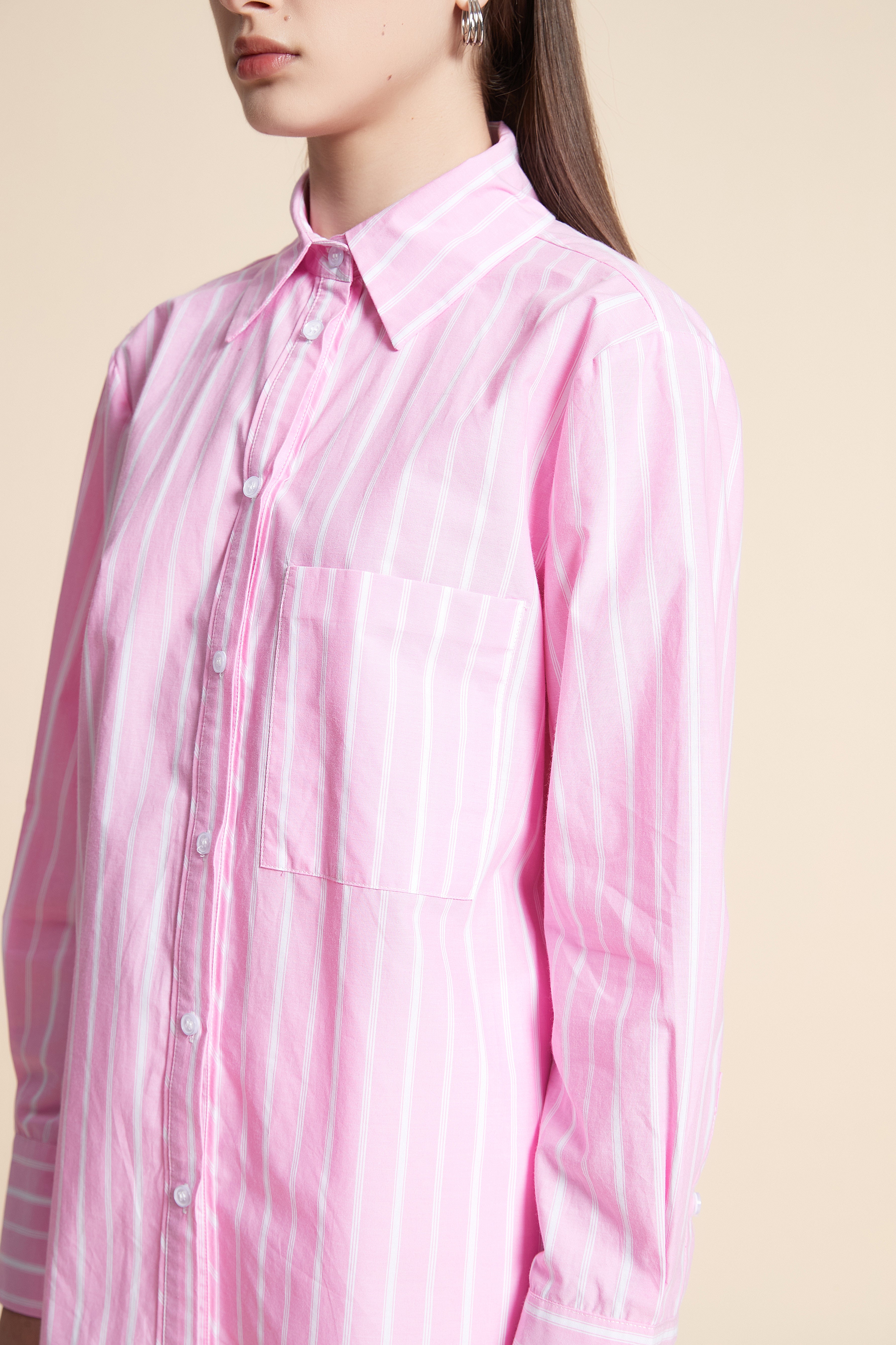 قميص متوسط الطول مقلم كم طويل