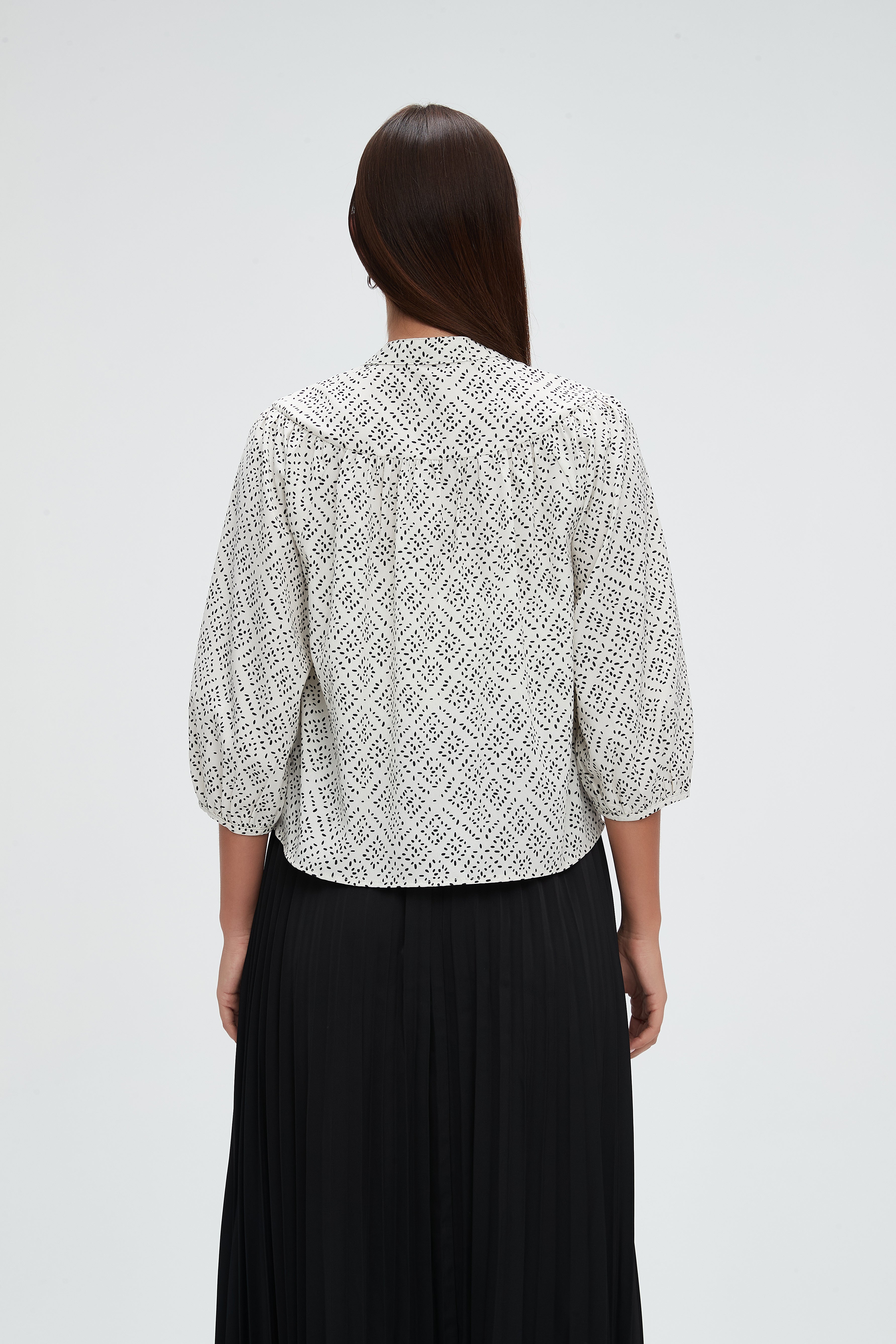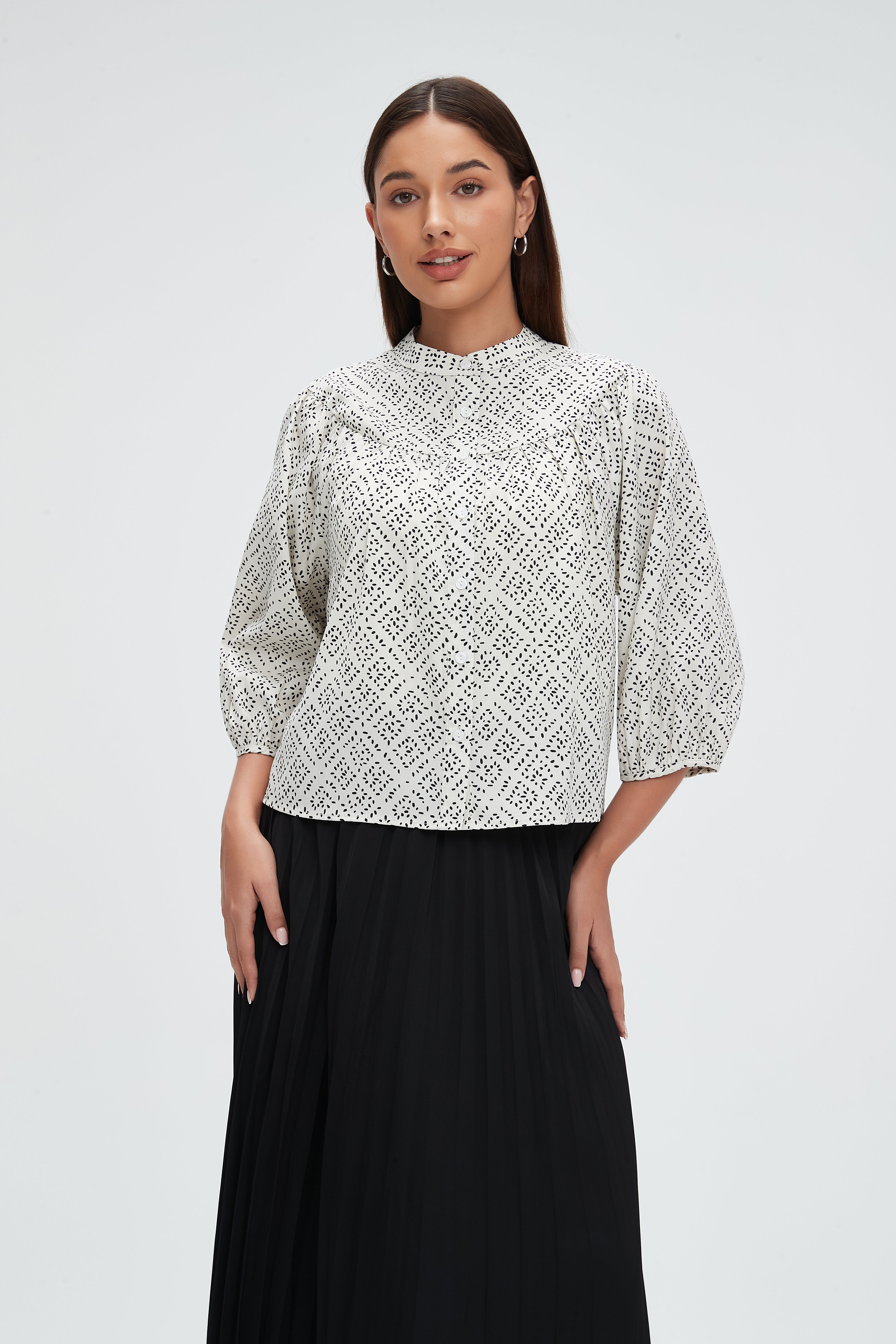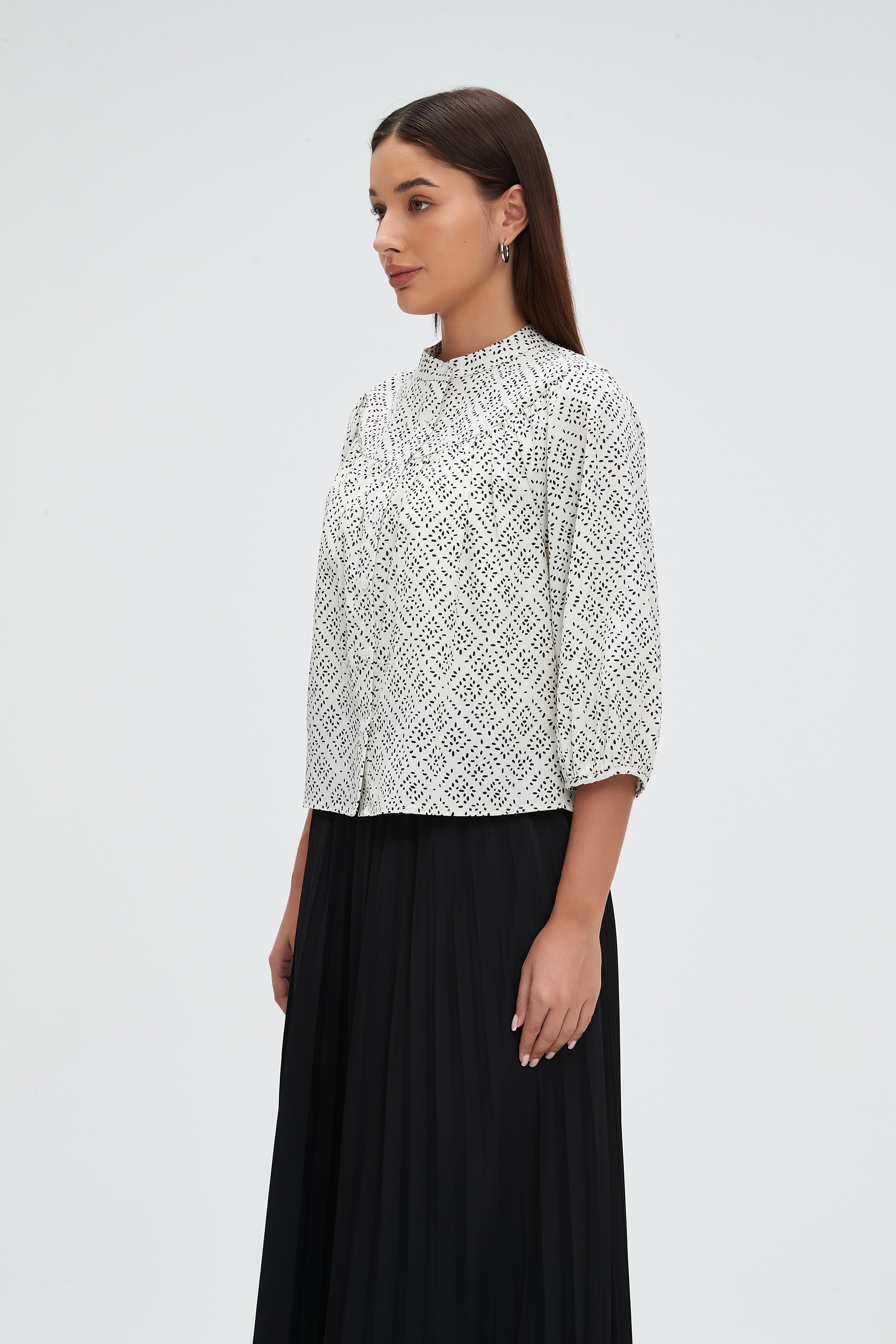بلوزة 3/4 كم منقوشة بنصف ياقة