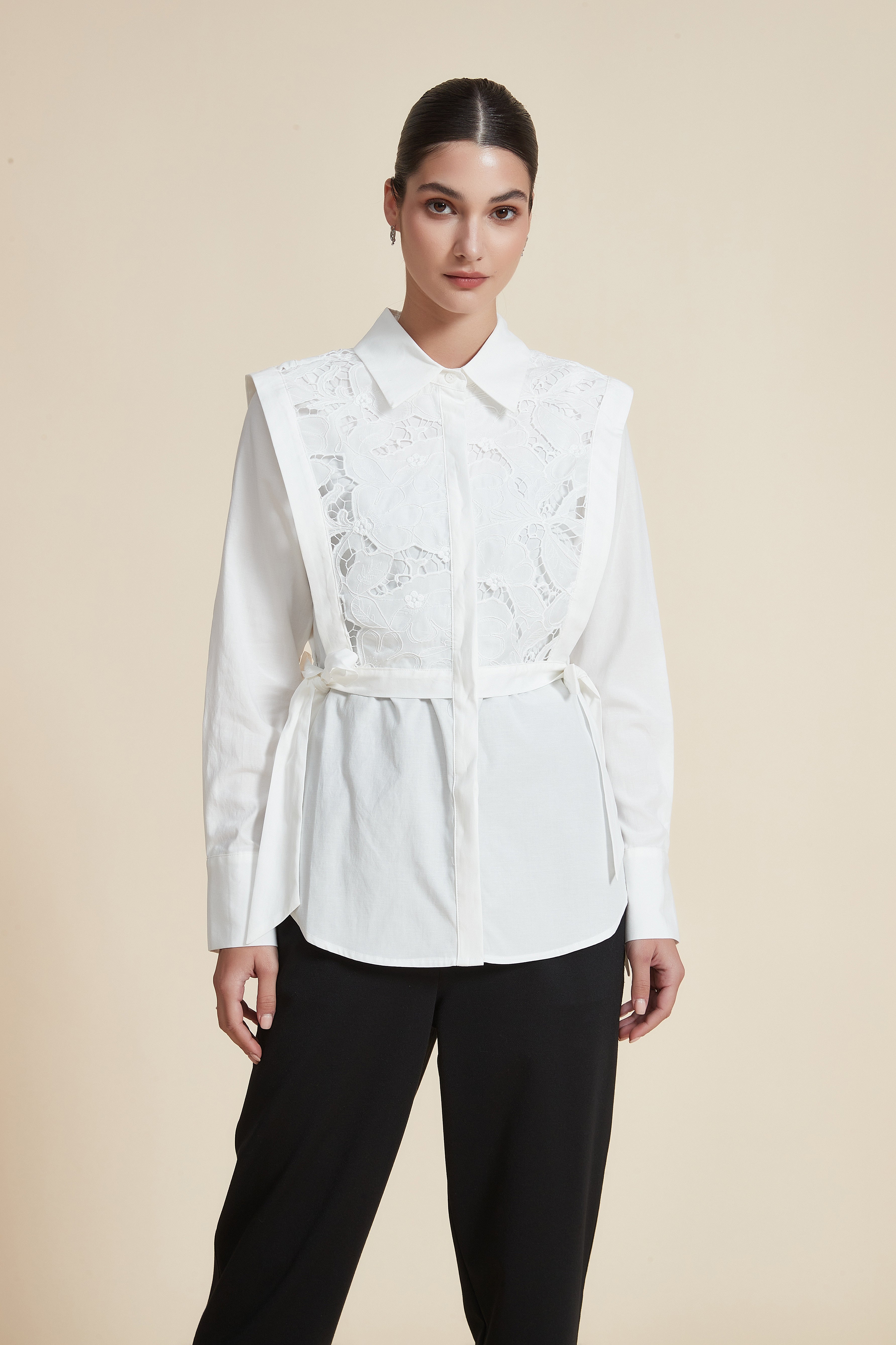 قميص قصير مطرز كم طويل
