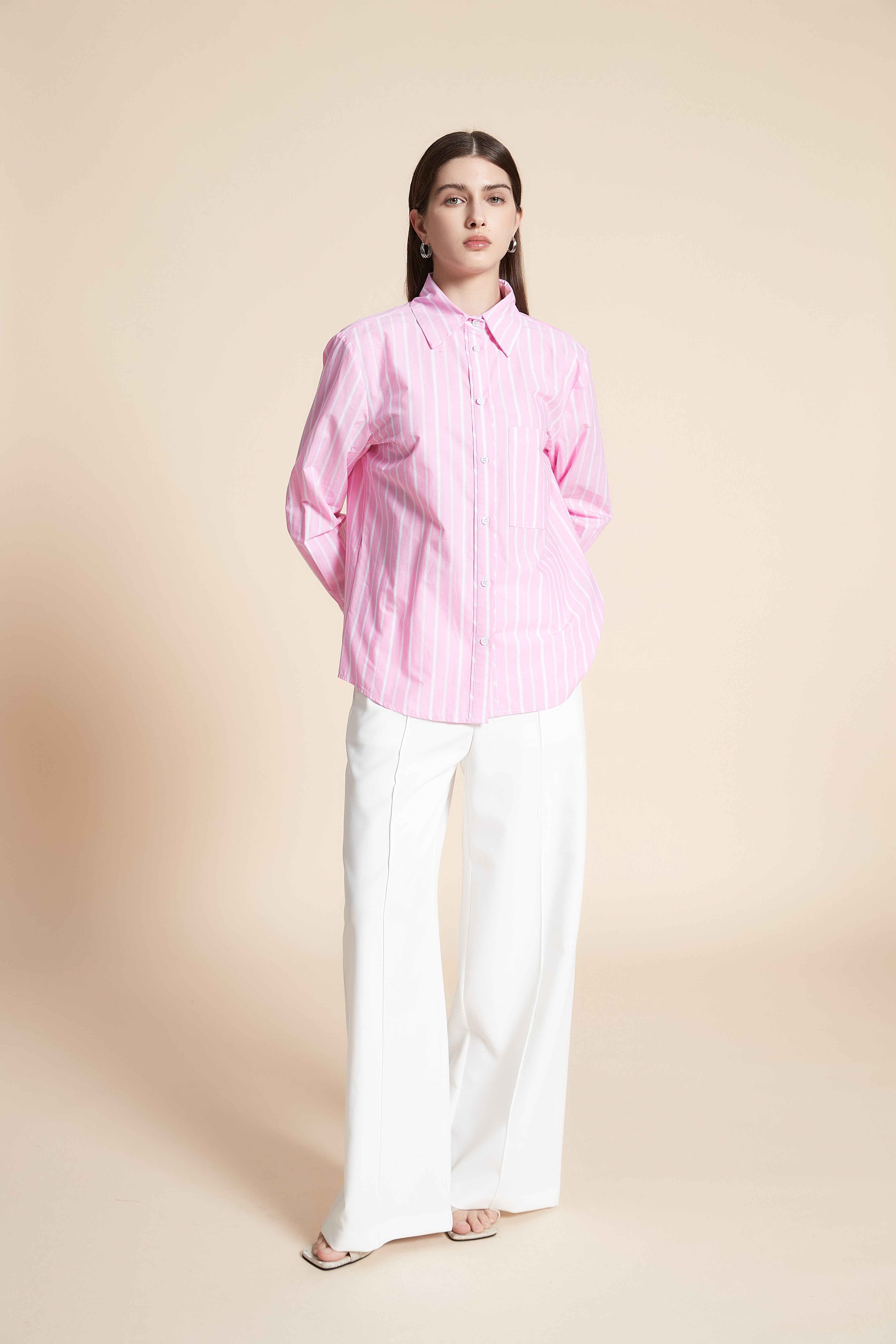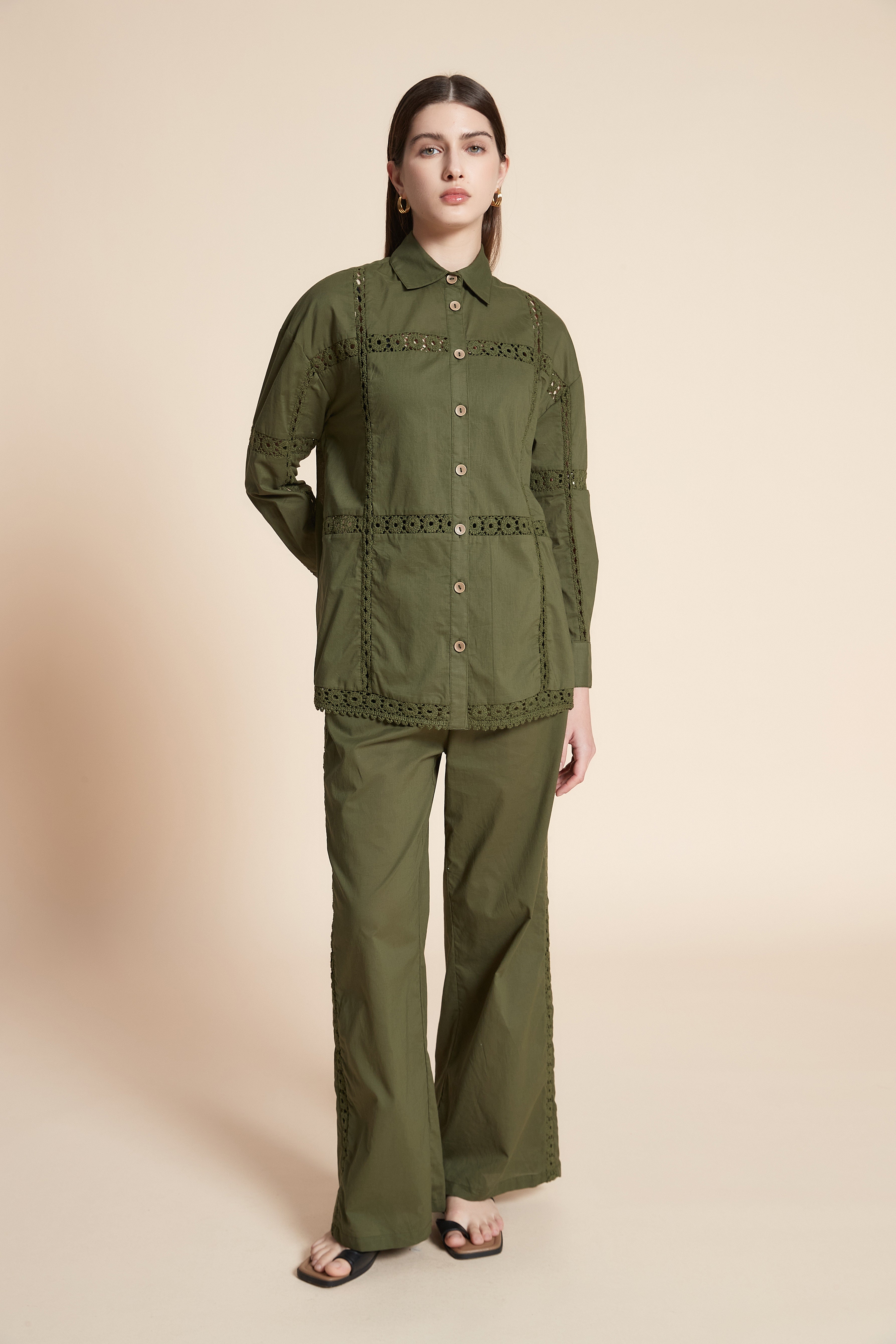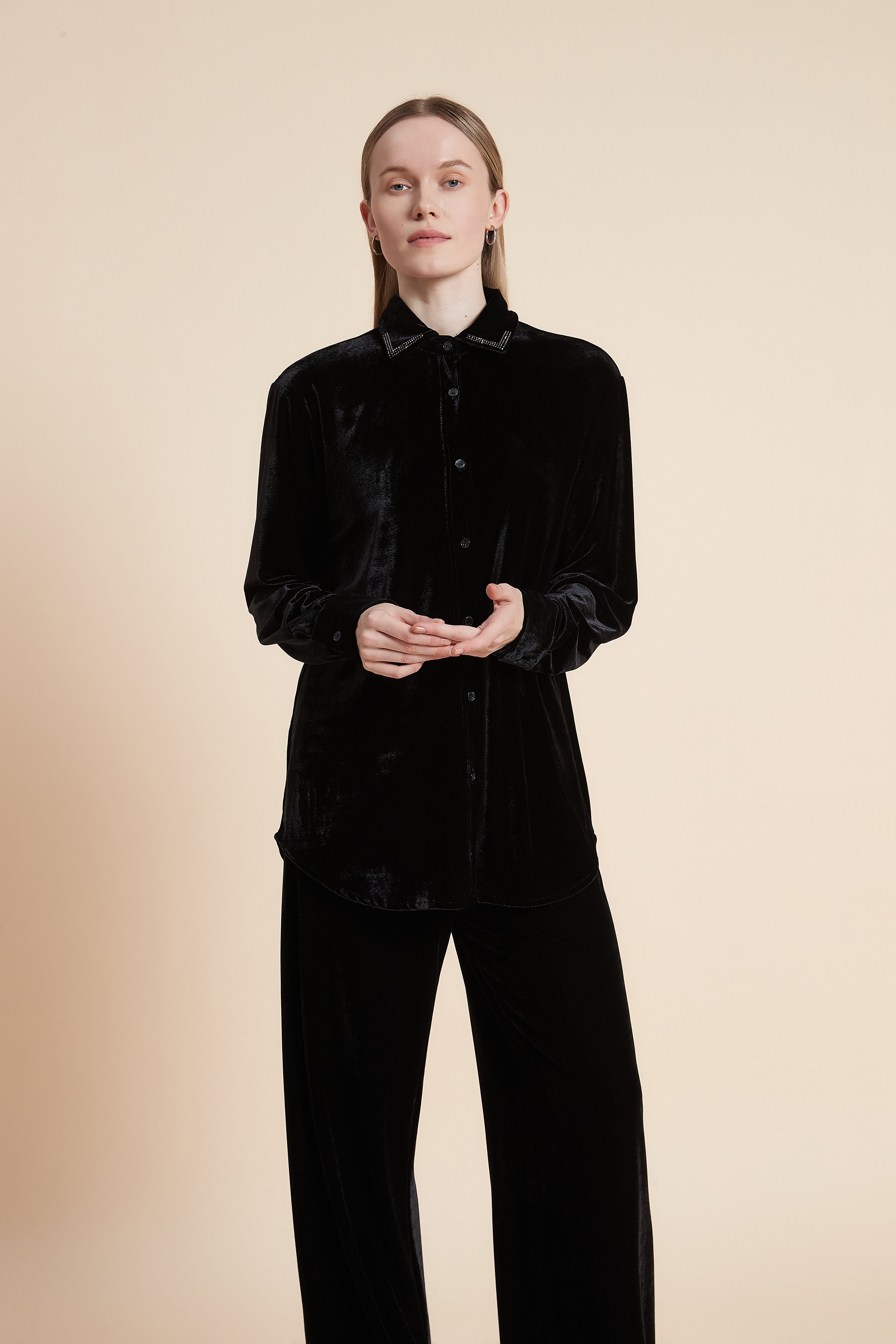 قميص بكم طويل وأزرار