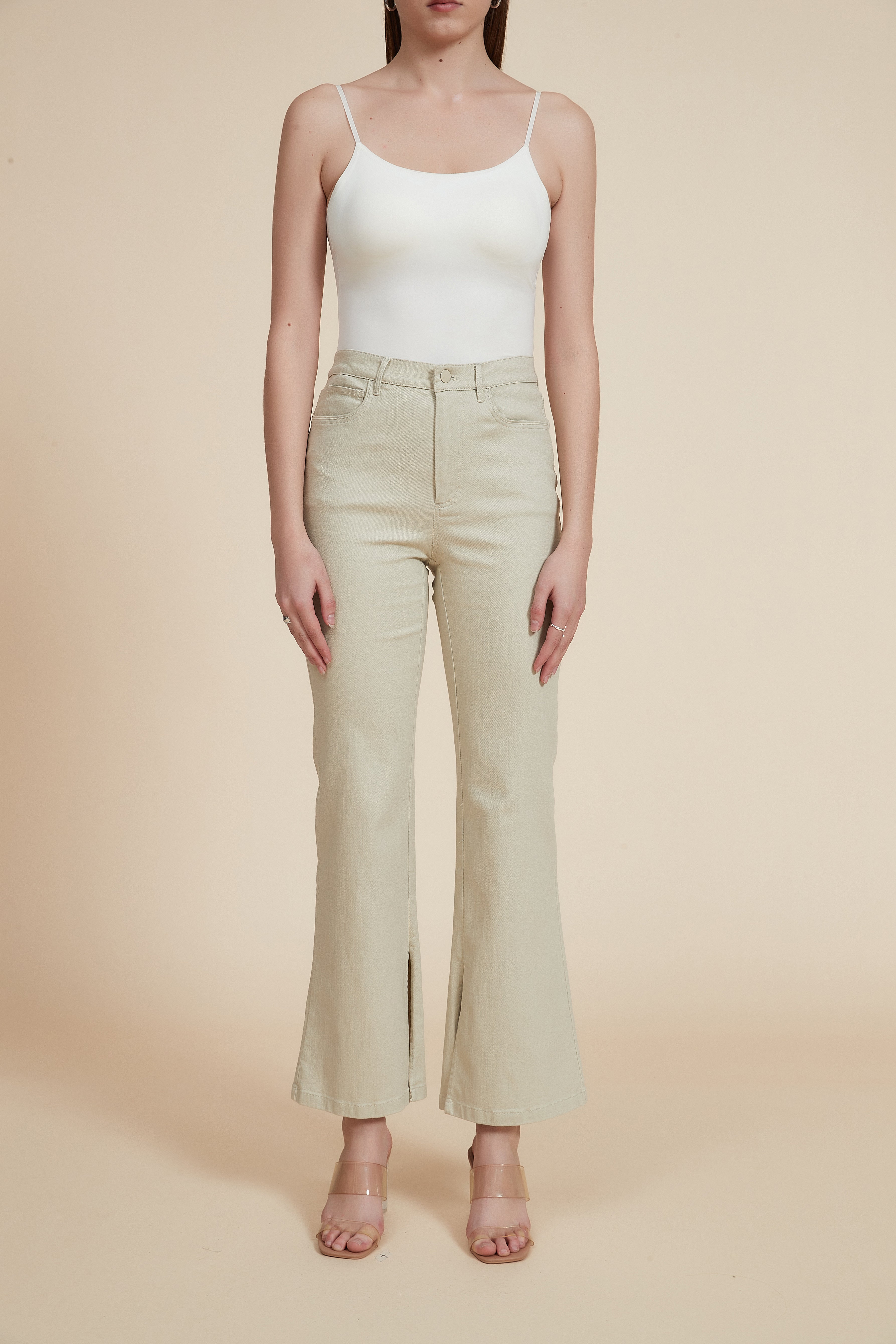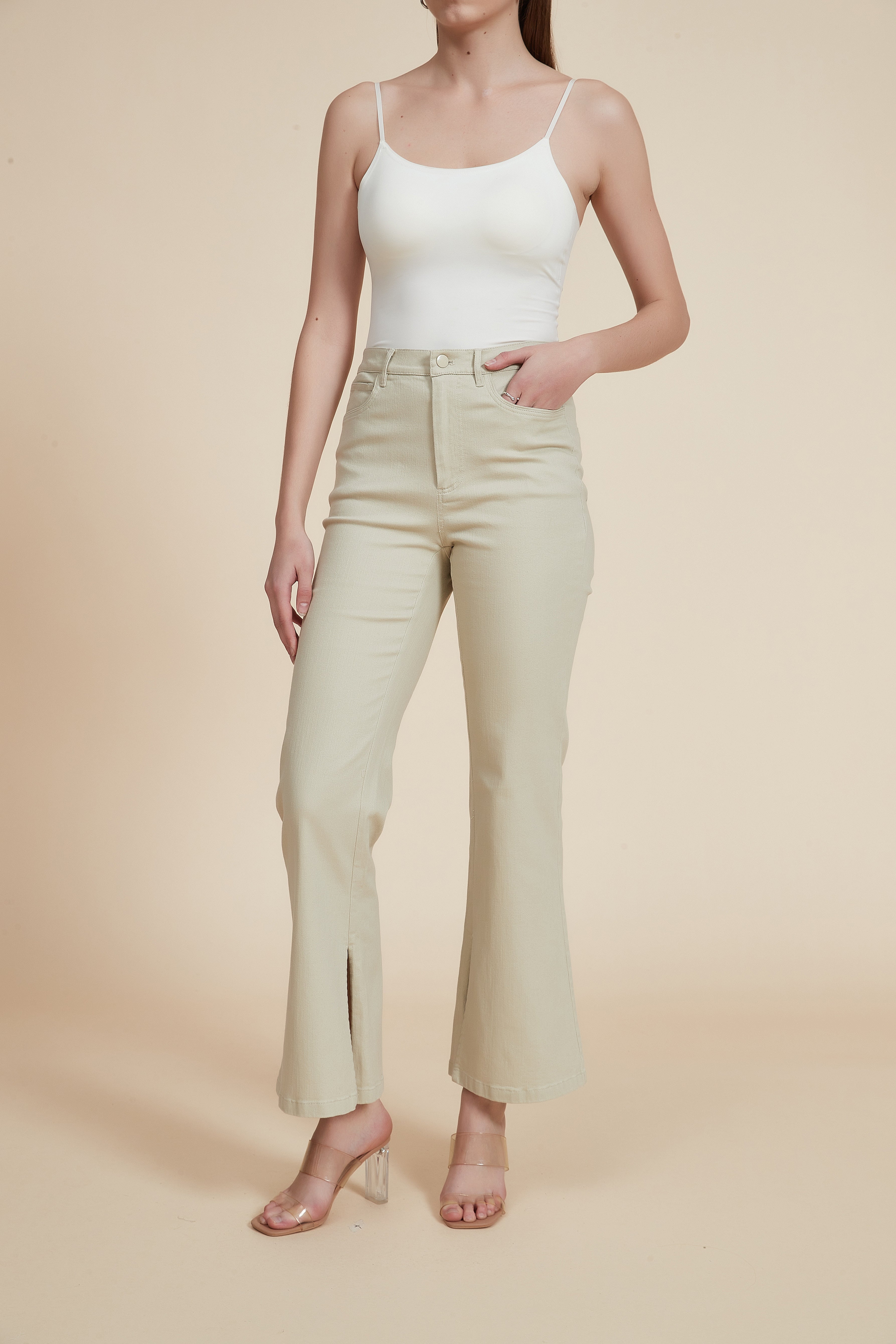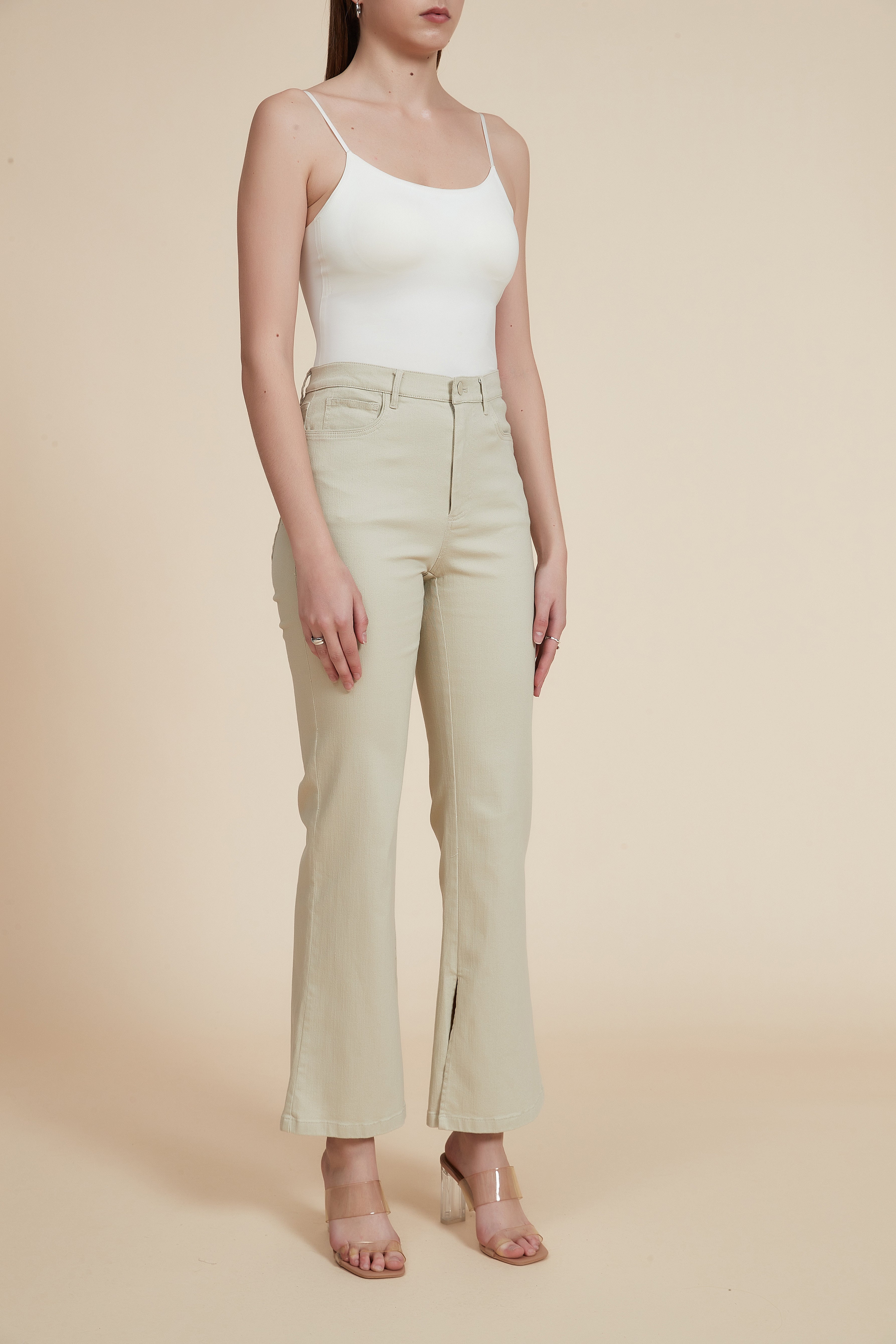 بنطلون سادة بطول الكاحل بفتحة رجل واسعة