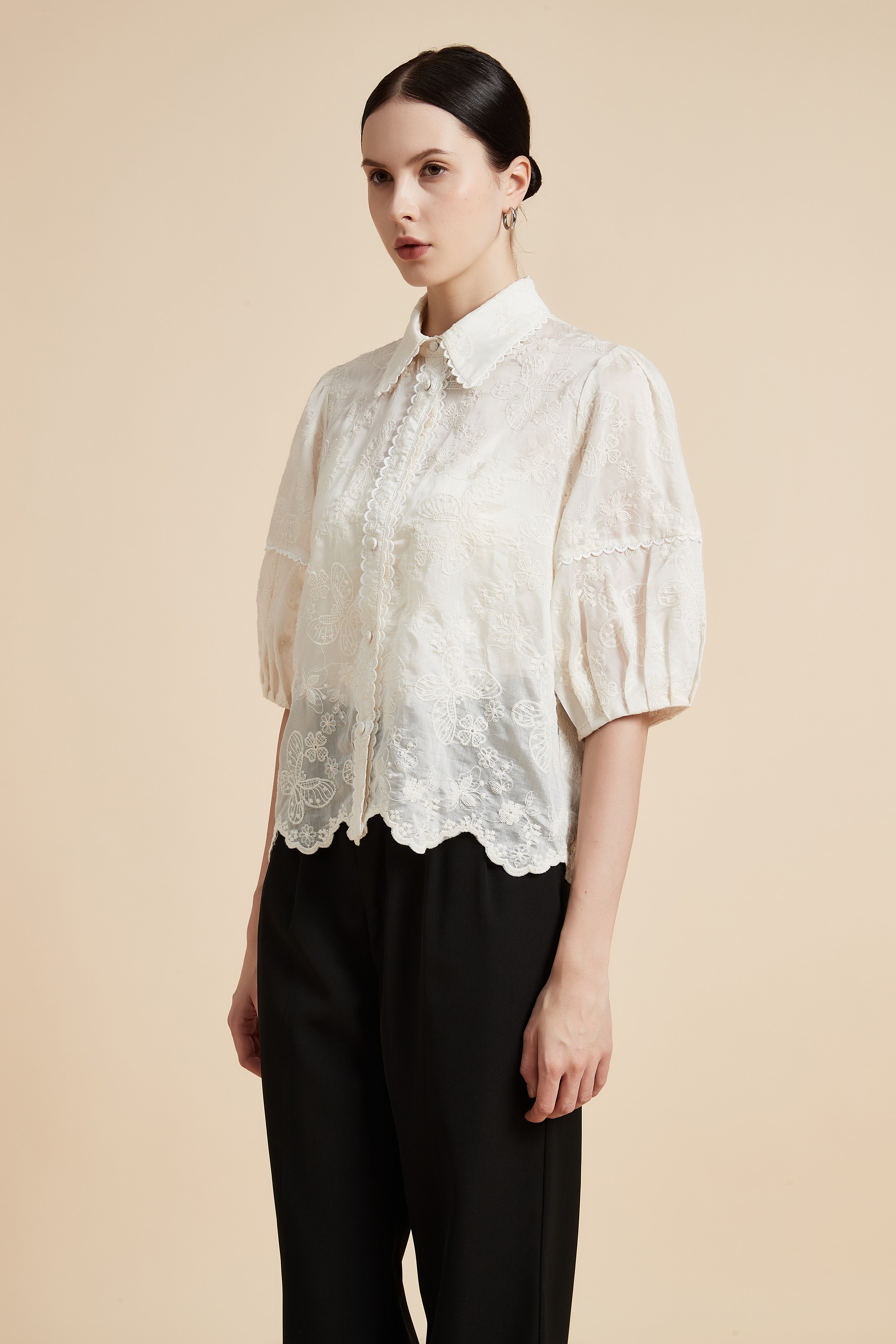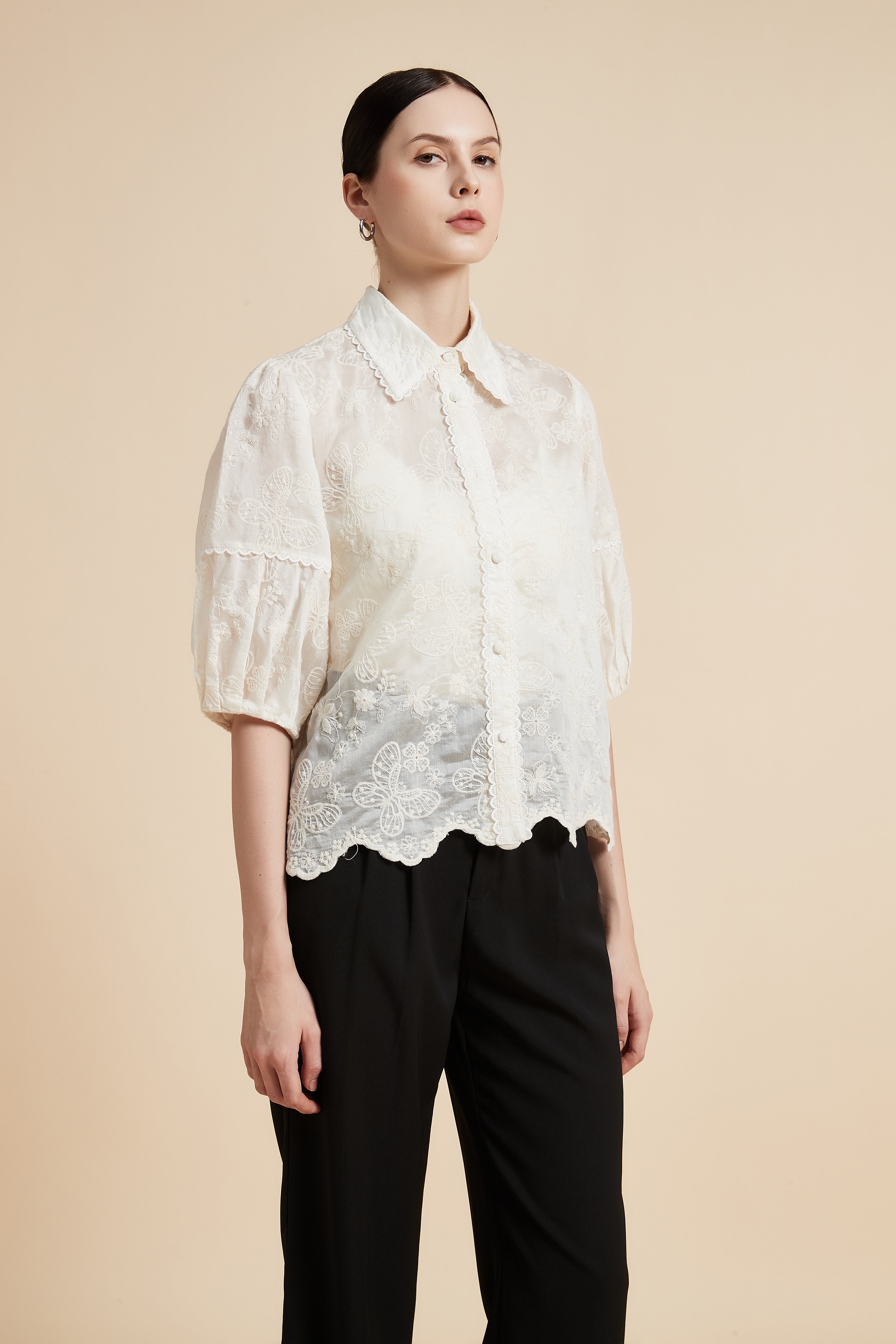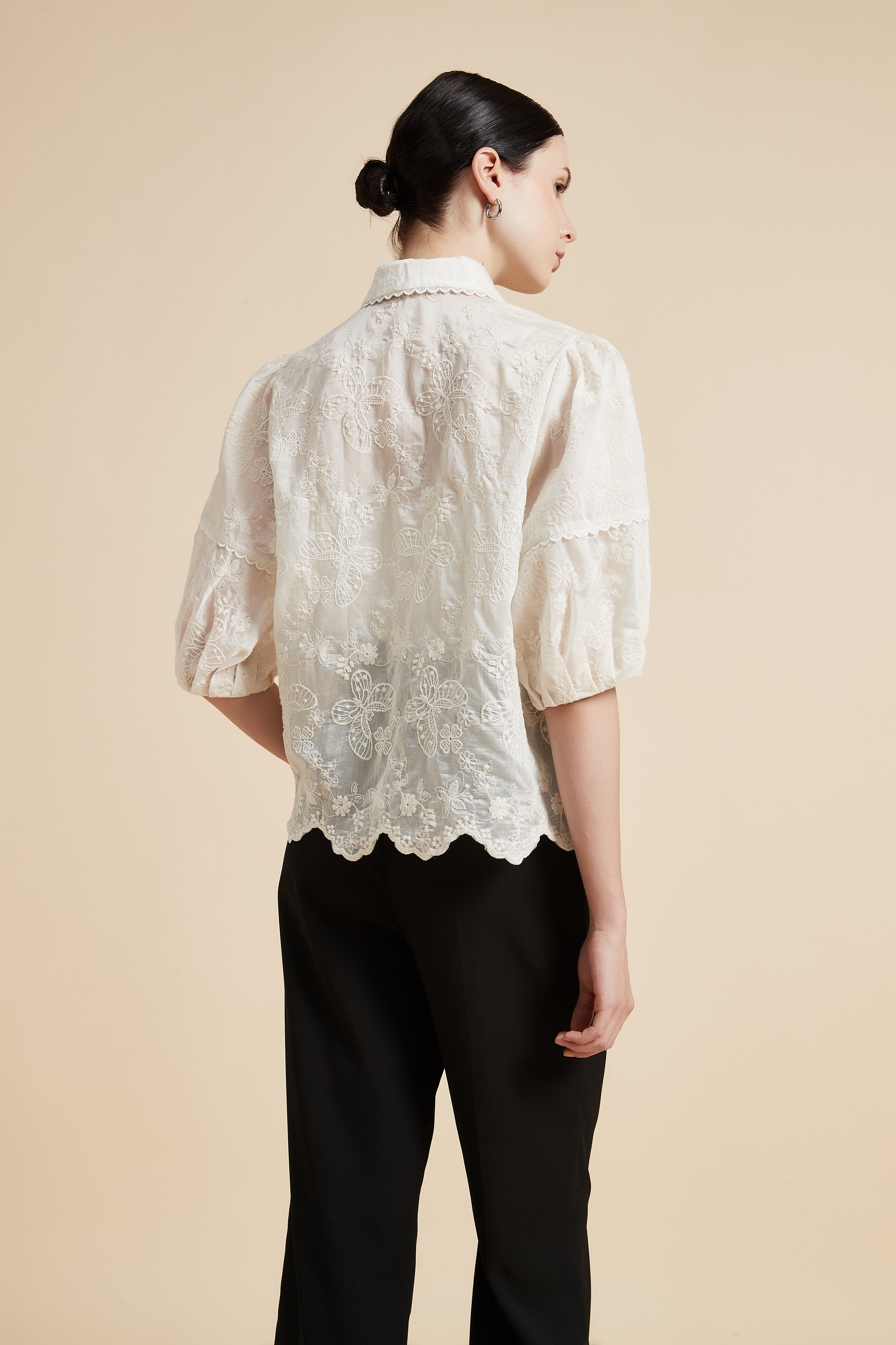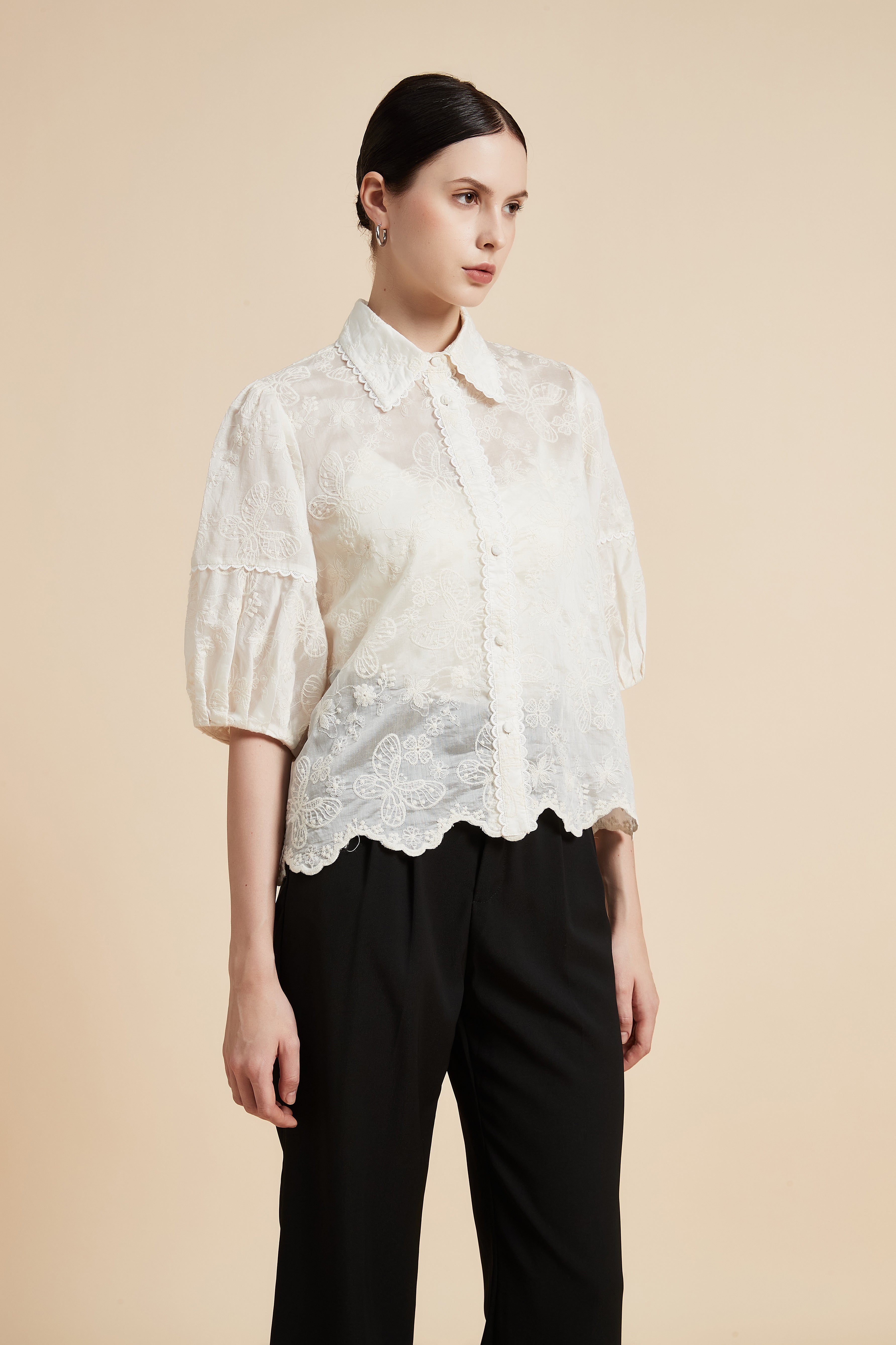 بلوزة نصف كم بياقة قميص