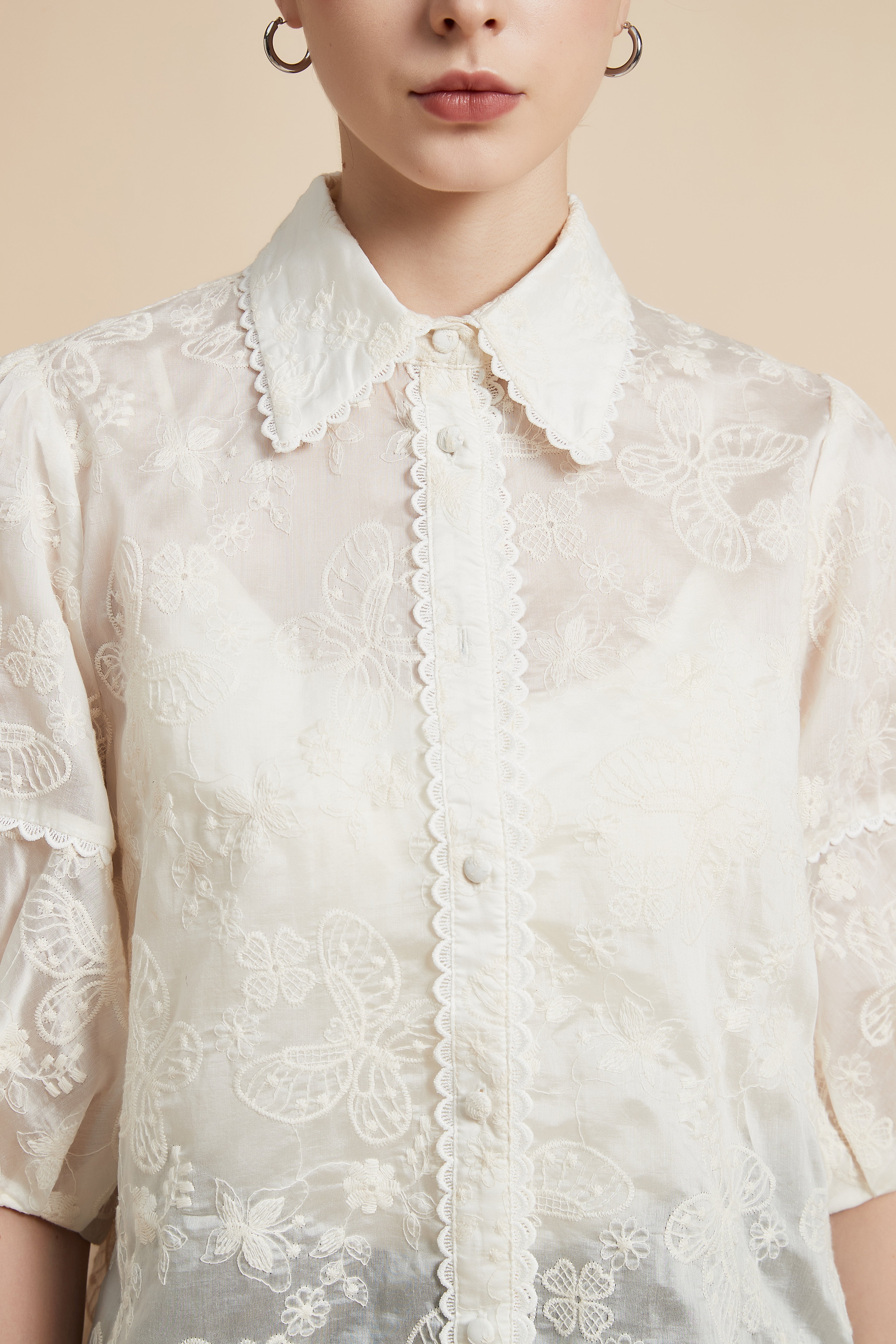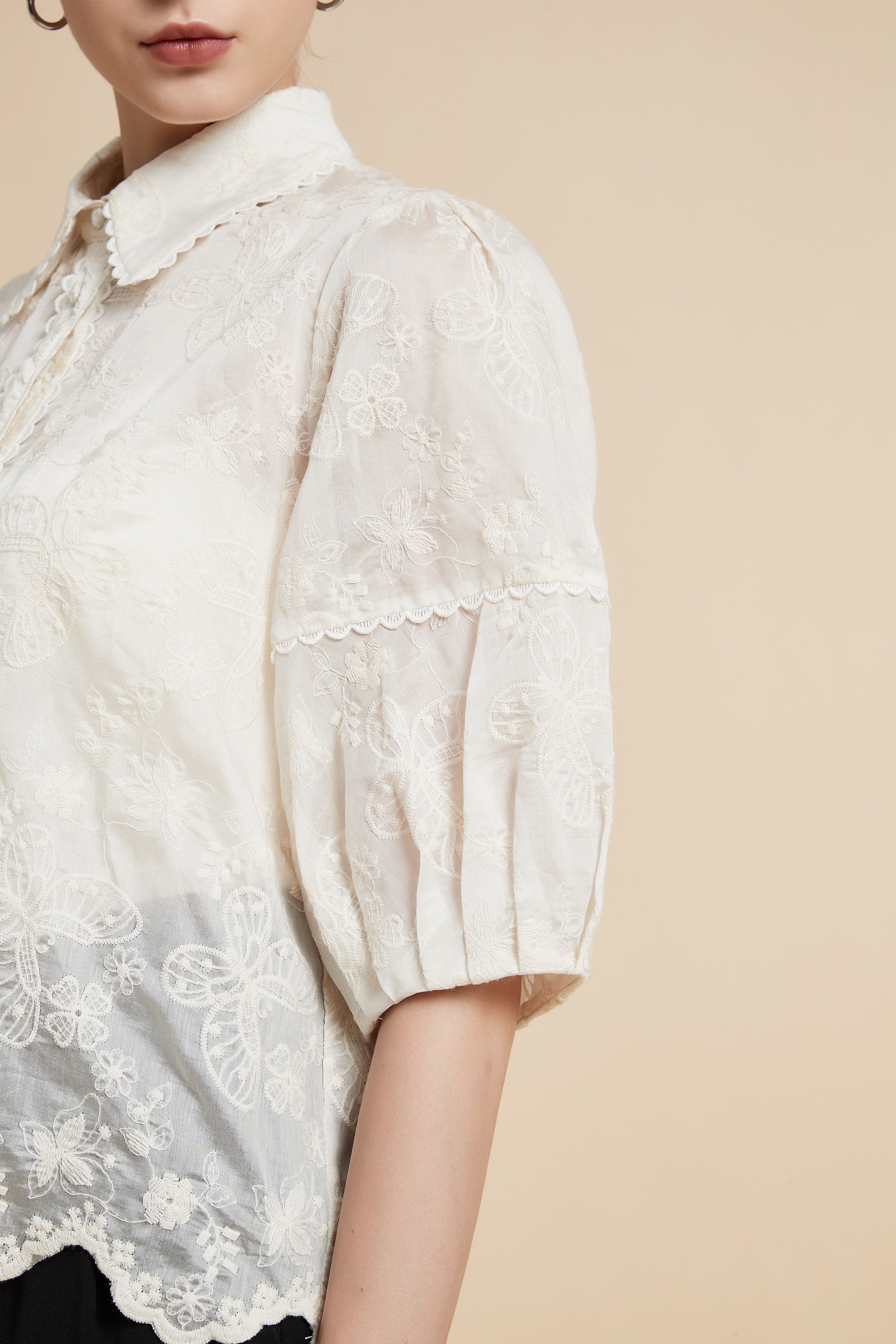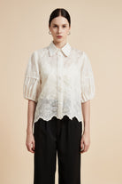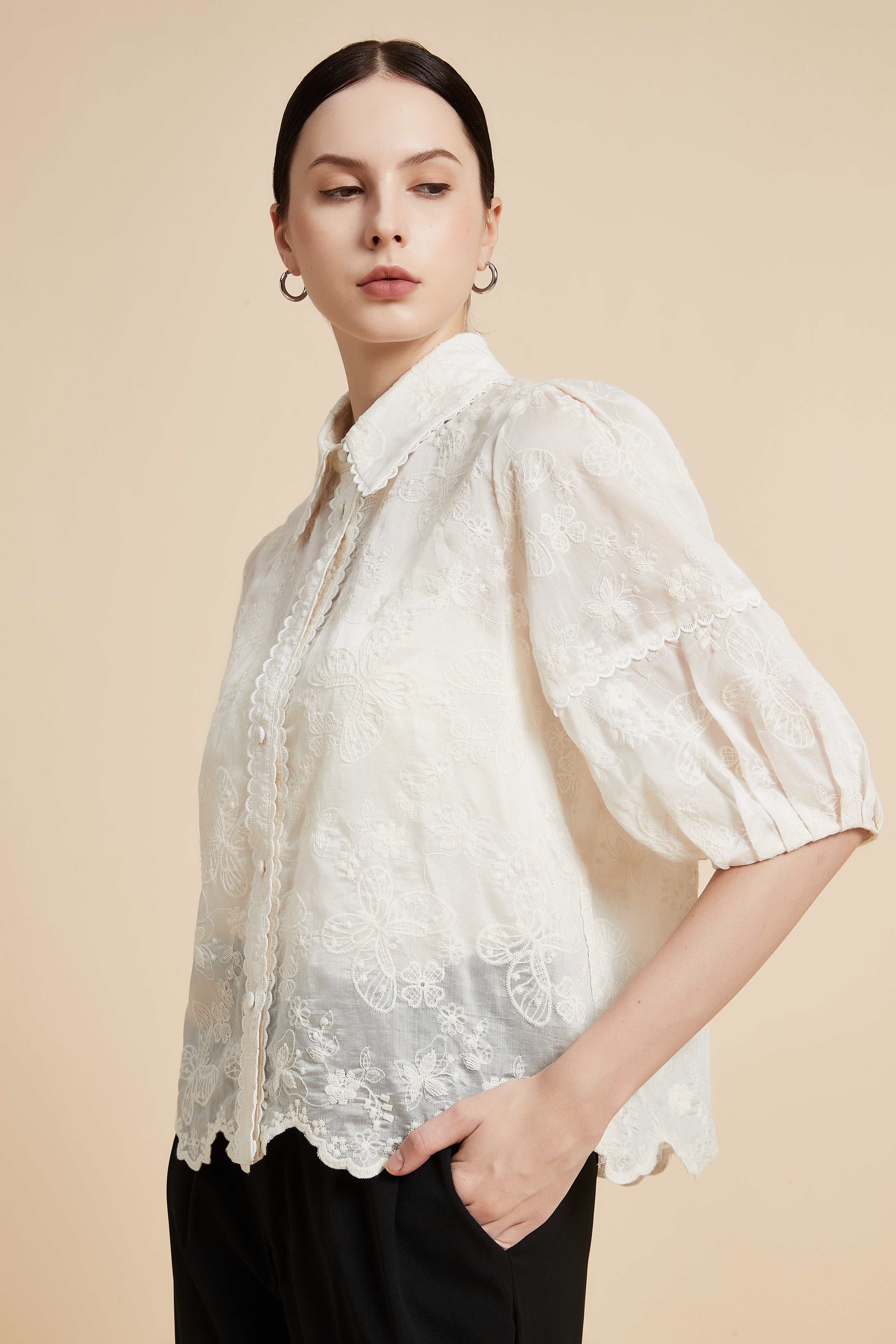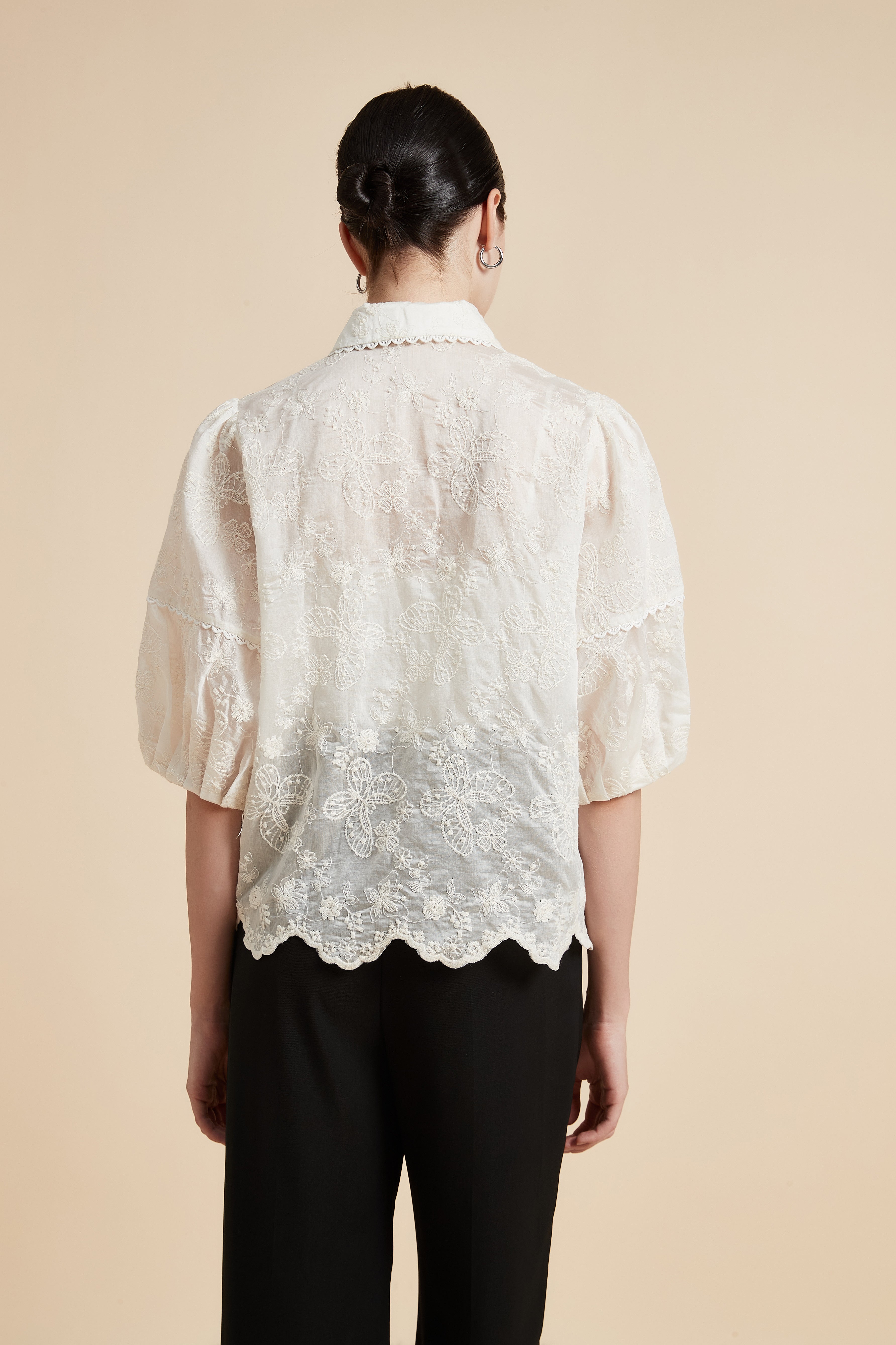بلوزة نصف كم بياقة قميص