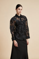بلوزة بكم طويل مع ياقة قميص