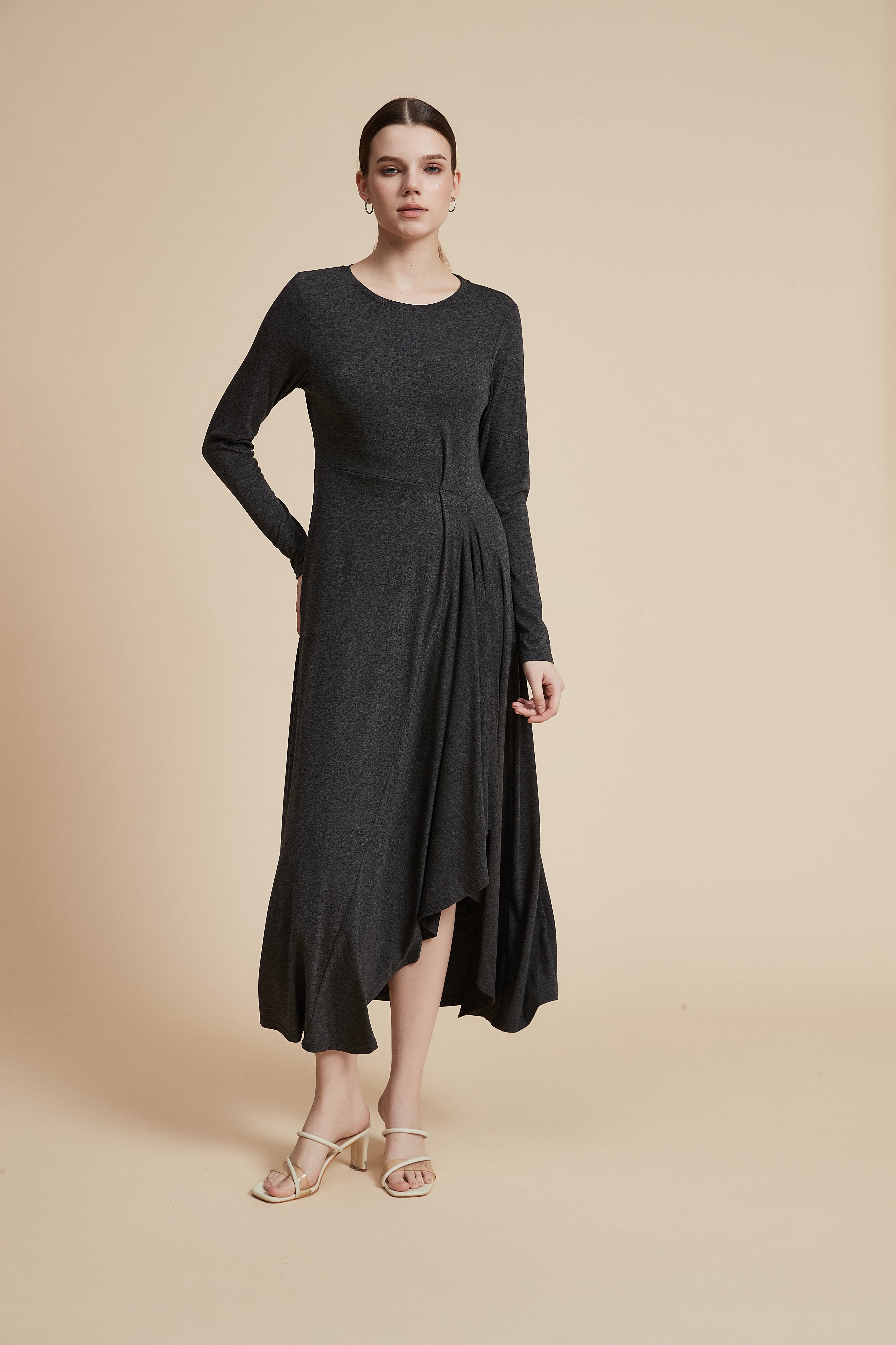 لما تبحثين عن فستان مريح وعصري للخروجات اليومية، هذا الفستان الرمادي هو خيار ممتاز. هذا الفستان رائع لأنه مصنوع من خامة مزيج 25% قطن و70% بوليستر و5% سباندكس تمنحه نعومة القطن مع متانة البوليستر ومرونة السباندكس، فستحبين كيف يتحرك معك. بقصة A وطول ميدي وياقة مستديرة، يعطي مظهر أنيق بدون مبالغة. الأكمام الطويلة والقصّة العادية تجعله مناسبًا للأجواء الكاجوال وعلى مدار كل المواسم بفضل سمكه المتوسط. الفستان سادة وخالٍ من البطانة والجيوب ومن غير حزام، ما يمنحه بساطة يسهل تنسيقها. مصمم للنساء البالغات الباحثات عن راحة يومية ومظهر عصري، خيار عملي لخزانة كل يوم أو لخروجات نهاية الأسبوع. اعثري على مقاسك في فاشن السعودية وأضيفي هذه القطعة المتنوعة إلى خزانة ملابسك اليوم.