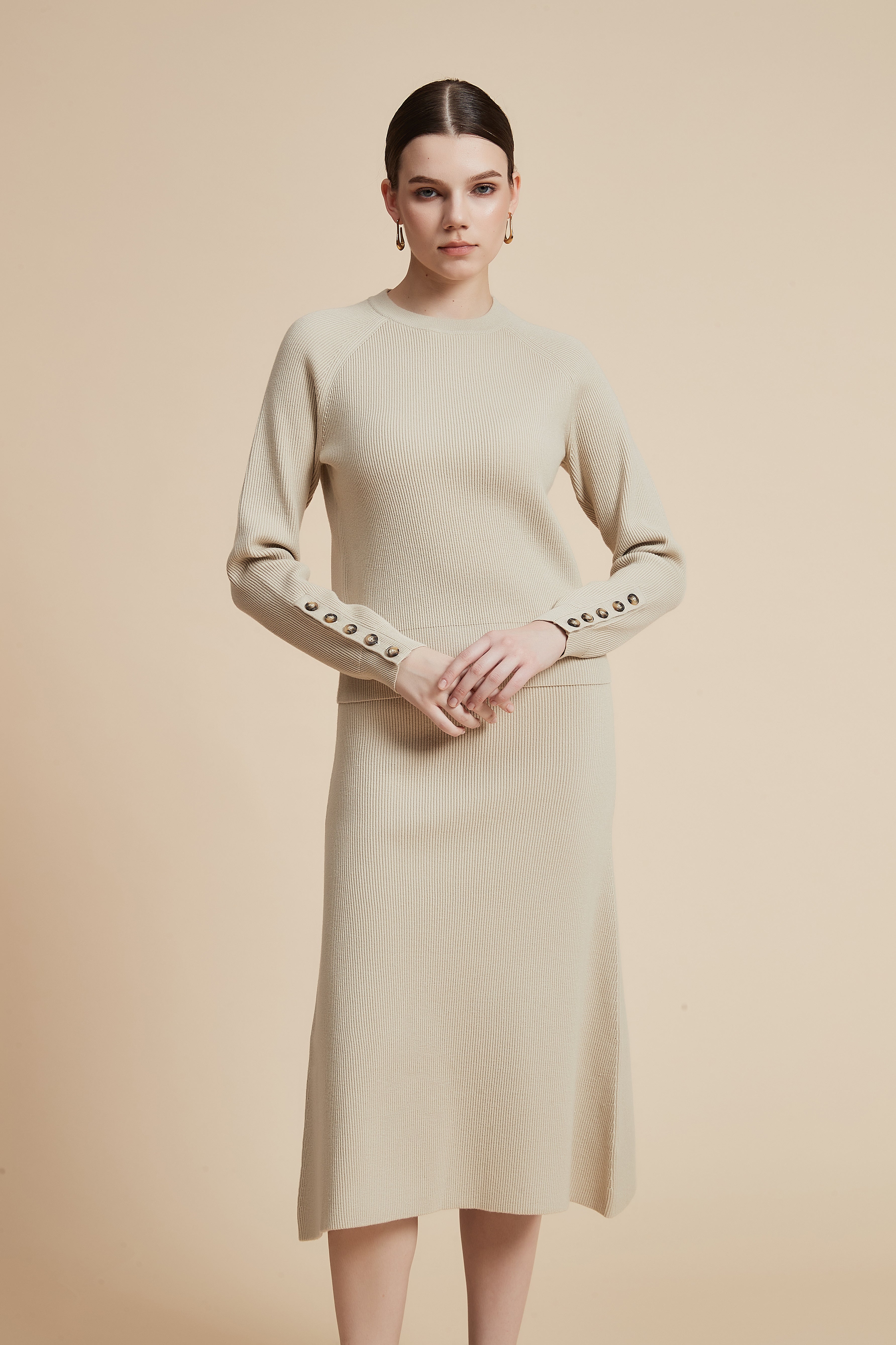 كنزة بطول الخصر سادة بكم طويل