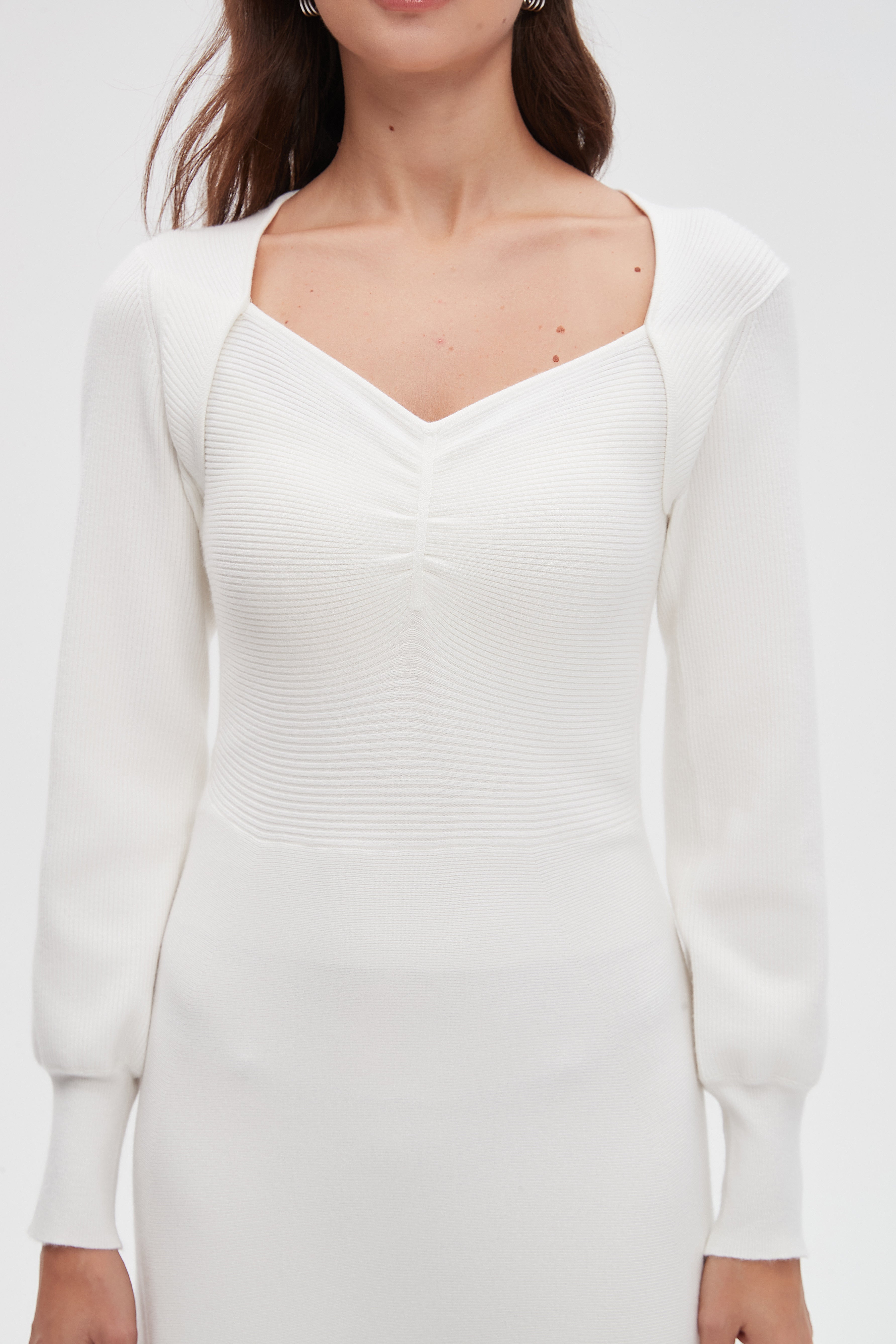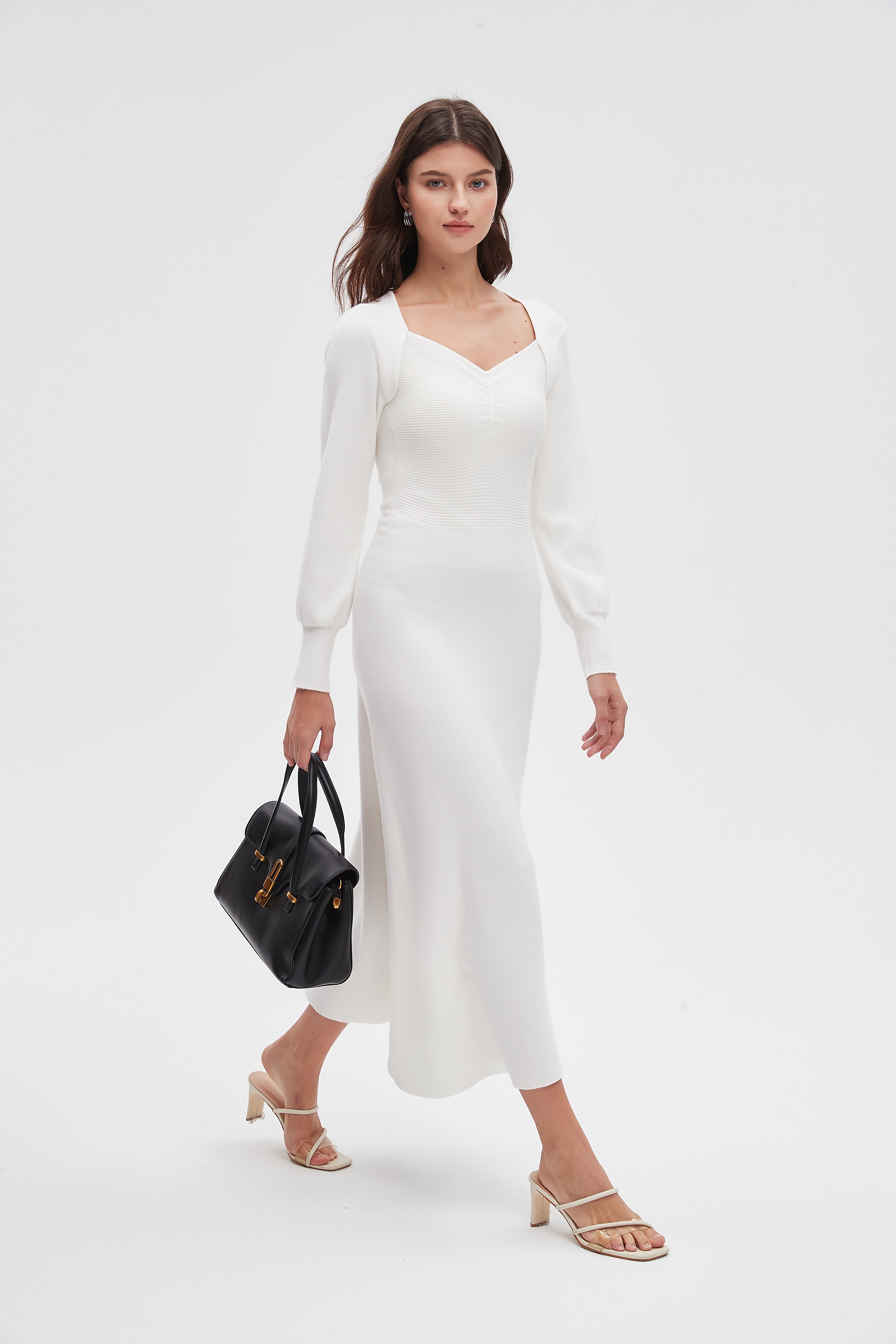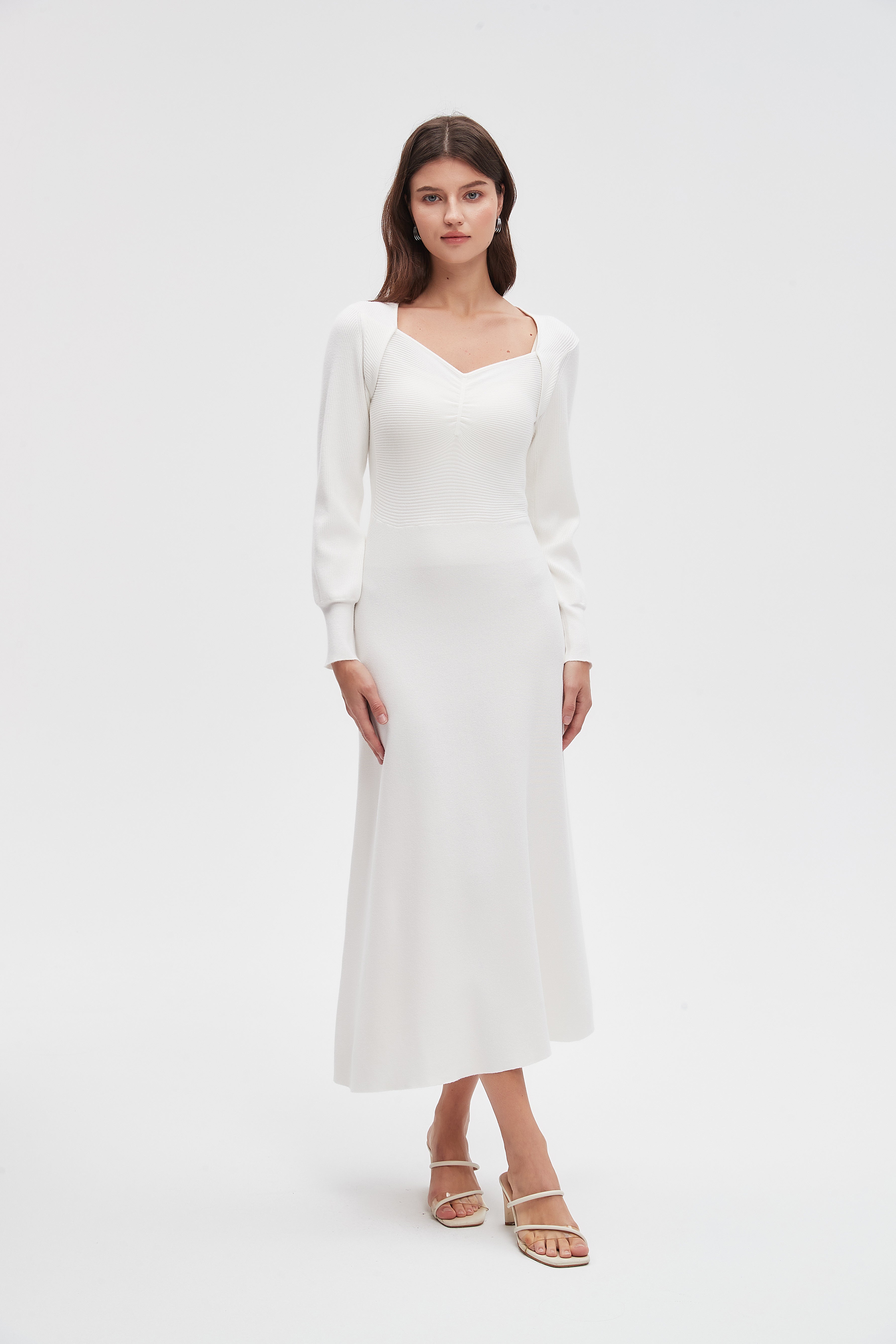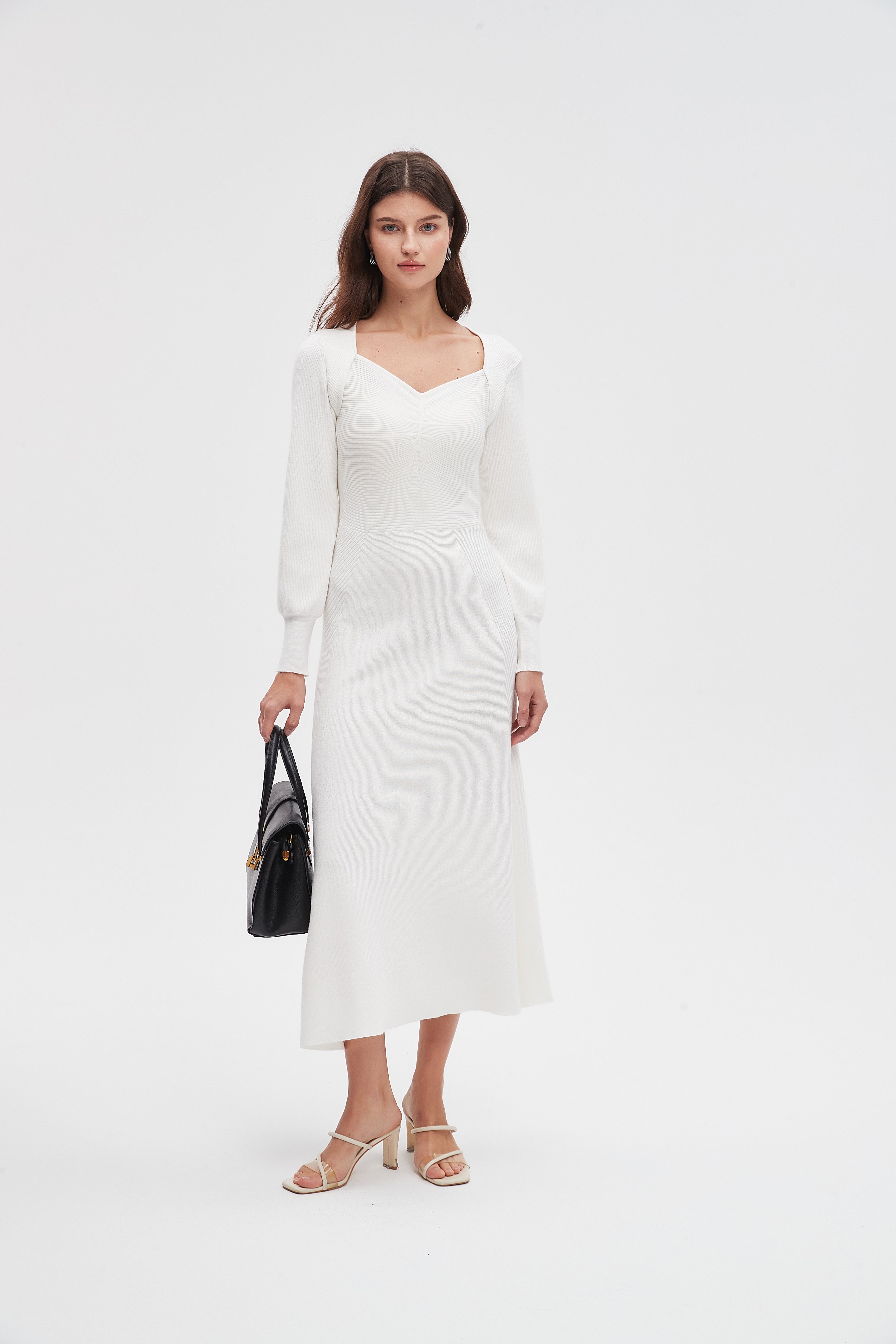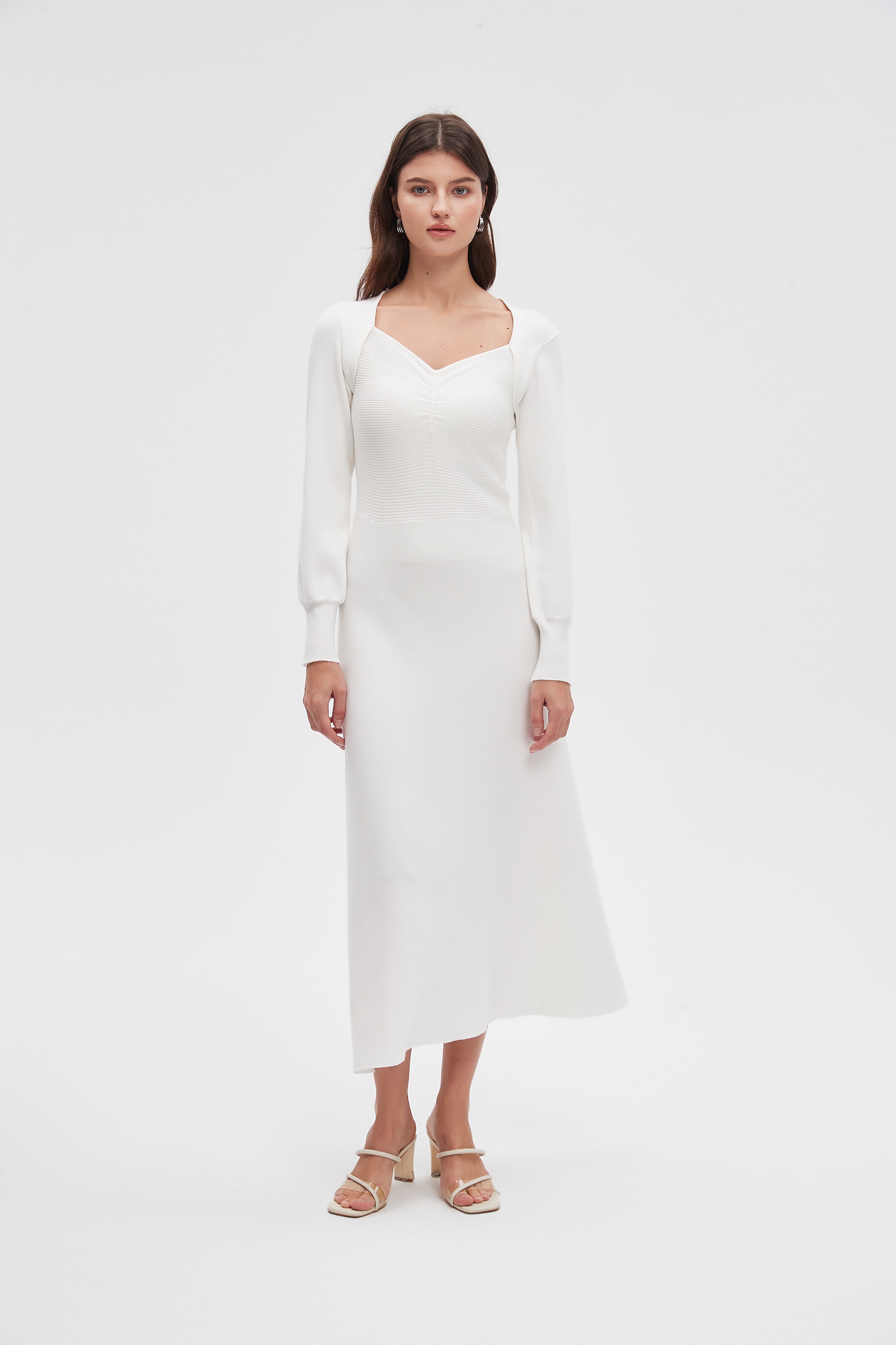 تسوقي فستان أبيض ميدي بكم طويل - فساتين كاجوال