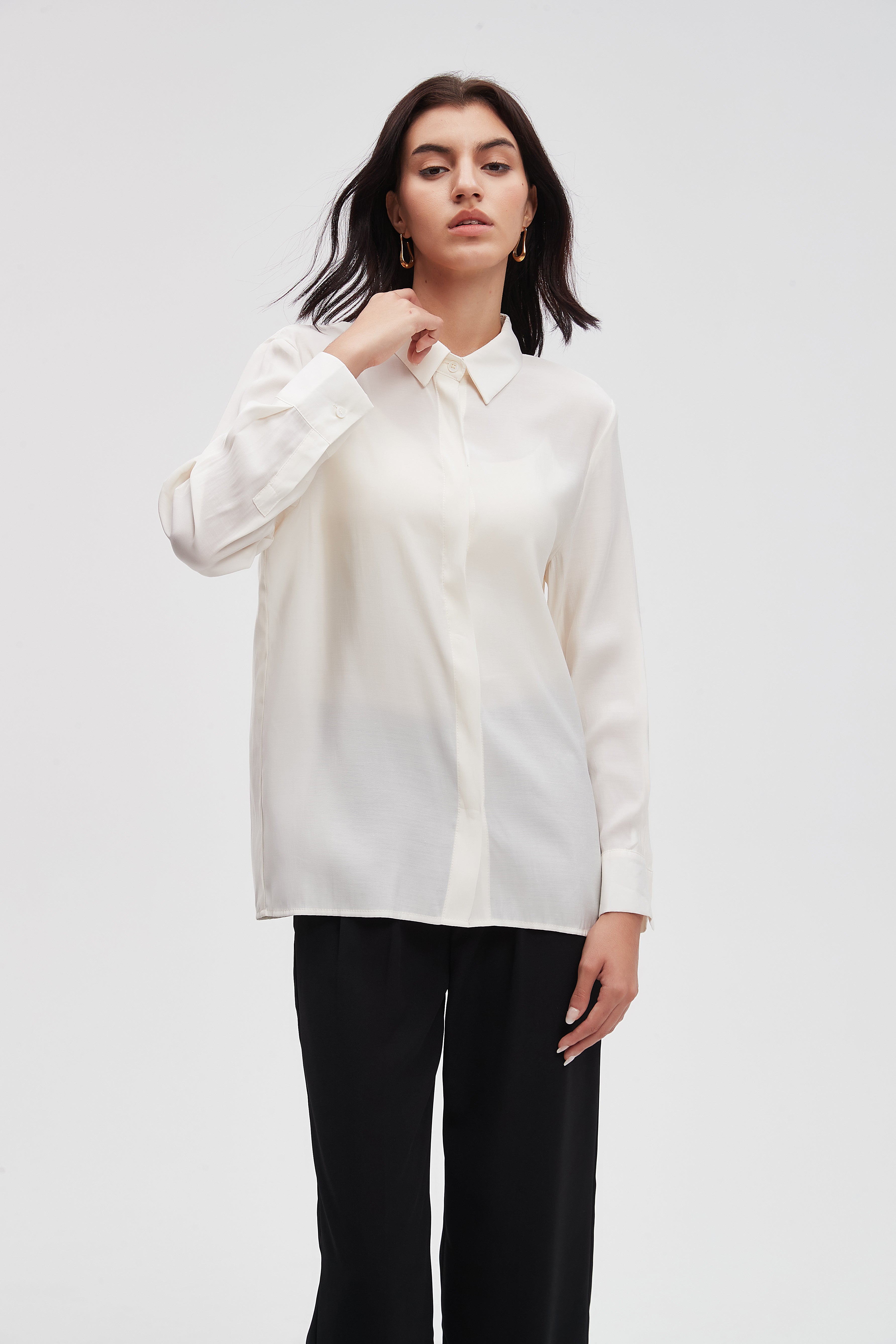بلوزة بطول الخاصرة سادة بكم طويل