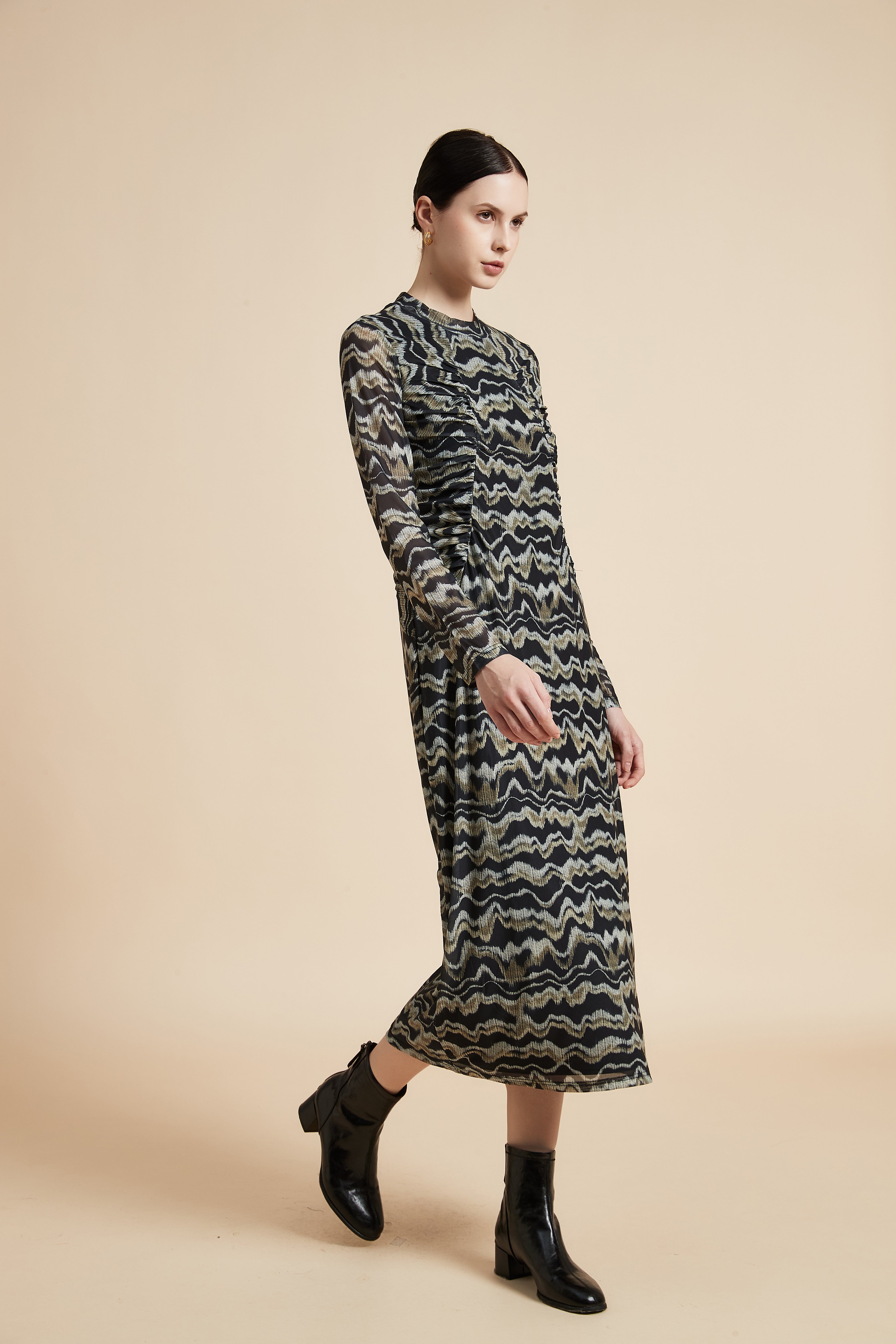 لو تبحثين عن فستان يضيف لمسة مواكبة للموضة لخزانة يومك، هذا الفستان خيار رائع. الجسم من بوليستر 100% يمنح مظهر مرتب وسهولة في الغسيل، والفستان بدون بطانة ليبقى خفيفًا ومريحًا طوال اليوم. قصة مستقيمة وقصة عادية تعطيان silhouette أنيقة ومريحة، وياقة مستديرة كلاسيكية تضيف بساطة مميزة. الطول ميدي مع كم طويل يجعلونه مناسبًا للخروجات النهارية والمناسبات الكاجوال في كل المواسم. النقوش الهندسية متعدد الألوان على قاعدة سوداء تضفي طابع شبابي وحيوي، بينما سماكته المتوسطة تجعله مناسبًا للانتقالات بين الفصول. لا يحتوي على جيوب ولا حزام، لذلك ستستمتعين بإطلالة نظيفة وسهلة التنسيق مع إكسسوارات بسيطة. اعثري على مقاسك في فاشن السعودية وأضيفي هذه القطعة المتنوعة إلى خزانة ملابسك اليوم.