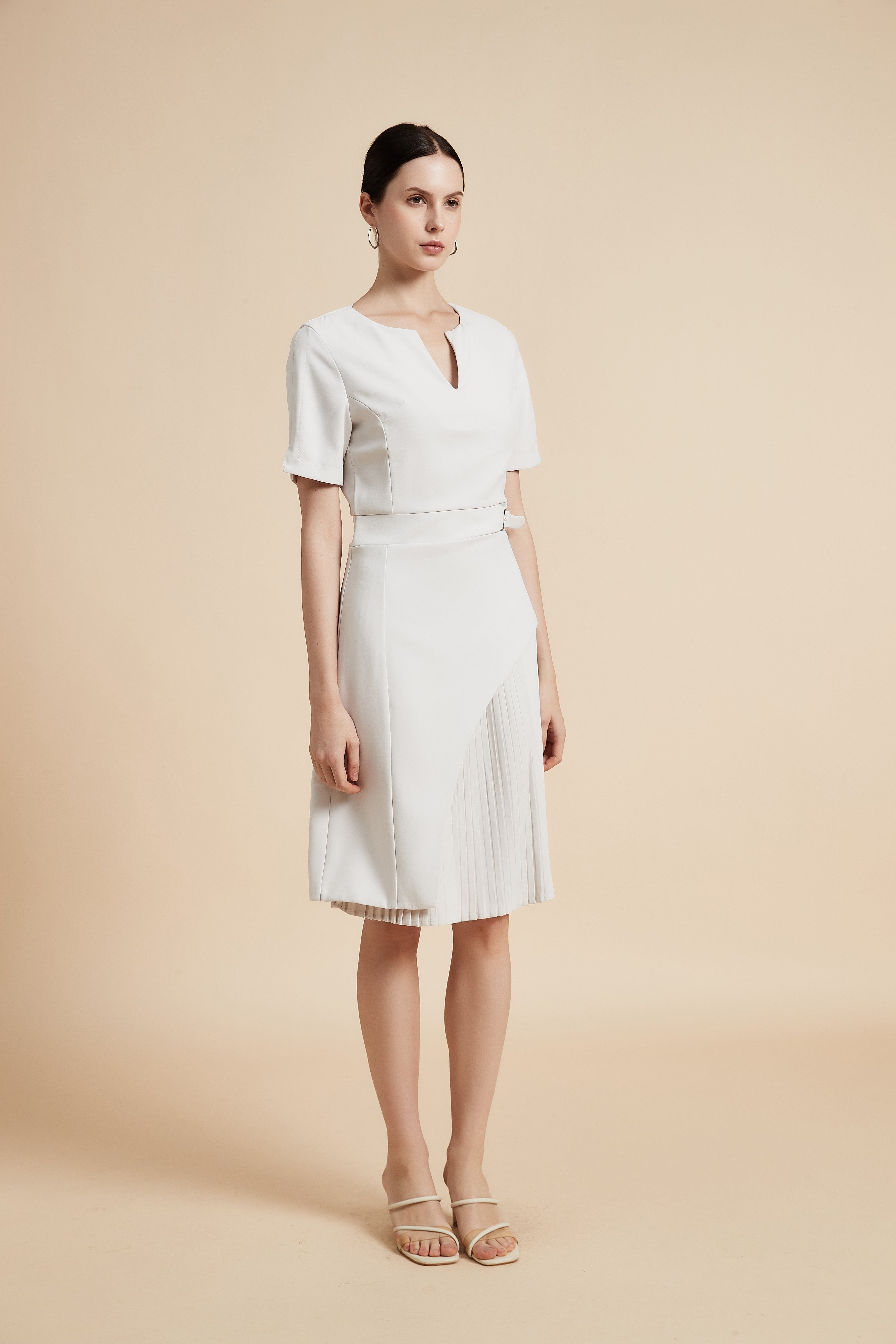 قد تبحثين عن فستان رسمي يجمع بين بساطة المظهر والراحة للعمل والاجتماعات، وهذا الفستان الأبيض بقصة A وطول الركبة هو خيار واضح. خامته بوليستر 100% تمنحك قطعة لا تتجعد بسهولة وتحافظ على شكلها مع سماكة متوسطة مناسبة لكل المواسم. ياقة V وأكمام قصيرة تضيفان لمسة أنثوية متوازنة من دون مبالغة، والتصميم السادة يبرز بساطته الأنيقة. الفستان يأتي بدون بطانة وبلا جيوب، مع حزام مرفق كطريقة إغلاق وتحديد للخصر ليمنحك مظهرًا مرتبًا ومكتبيًا. ستحبين كيف يمنحك هذا القصّان مظهرًا رسميًا مناسبًا للاجتماعات والمناسبات الرسمية، مع إمكانية تكييفه للخروجات المسائية أو المناسبات شبه الرسمية بسهولة. اعثري على مقاسك في فاشن السعودية وأضيفي هذه القطعة المتنوعة إلى خزانة ملابسك اليوم.