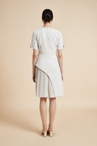 - التنسيق: نسقيه مع بليزر وحذاء بكعب متوسط للمكتب، أو مع صندل مسطح وحقِبة بسيطة للنهار. استعملي الحزام المرفق لتحديد الخصر، وأضافي إكسسوار معدني واحد للمناسبات المسائية لمظهر أنيق وهادئ.