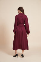 فستان ميدي سادة بكم طويل وحزام خصر