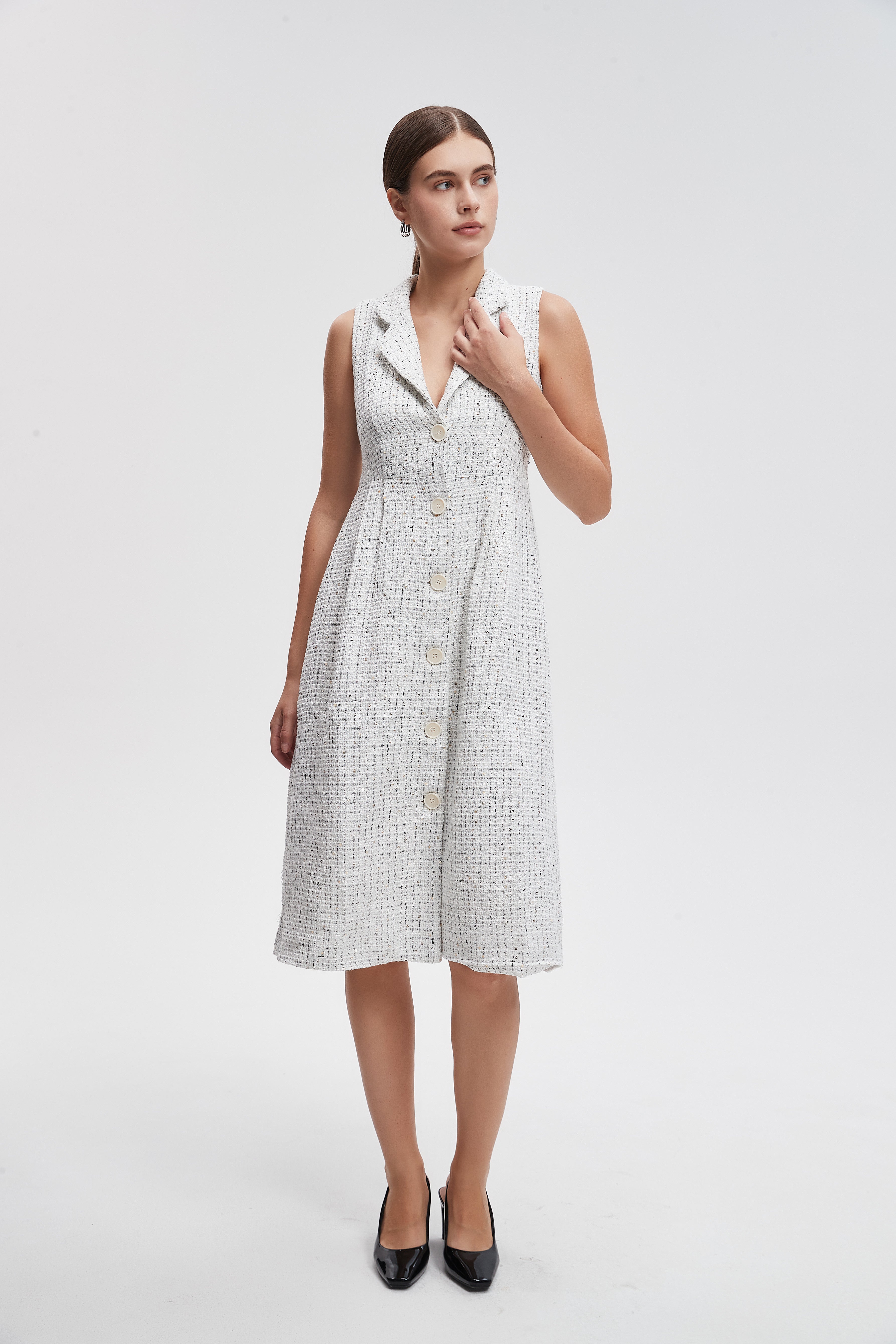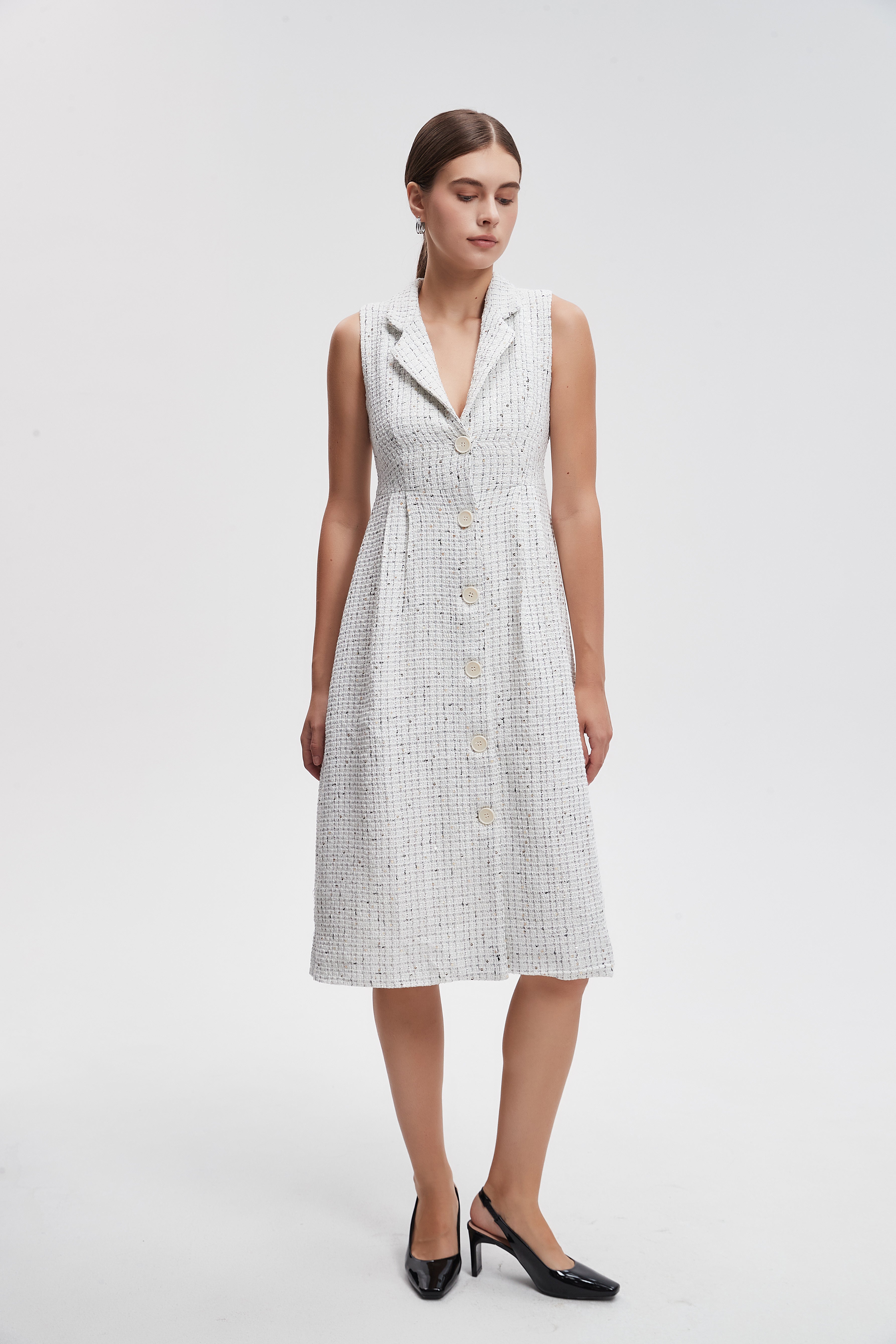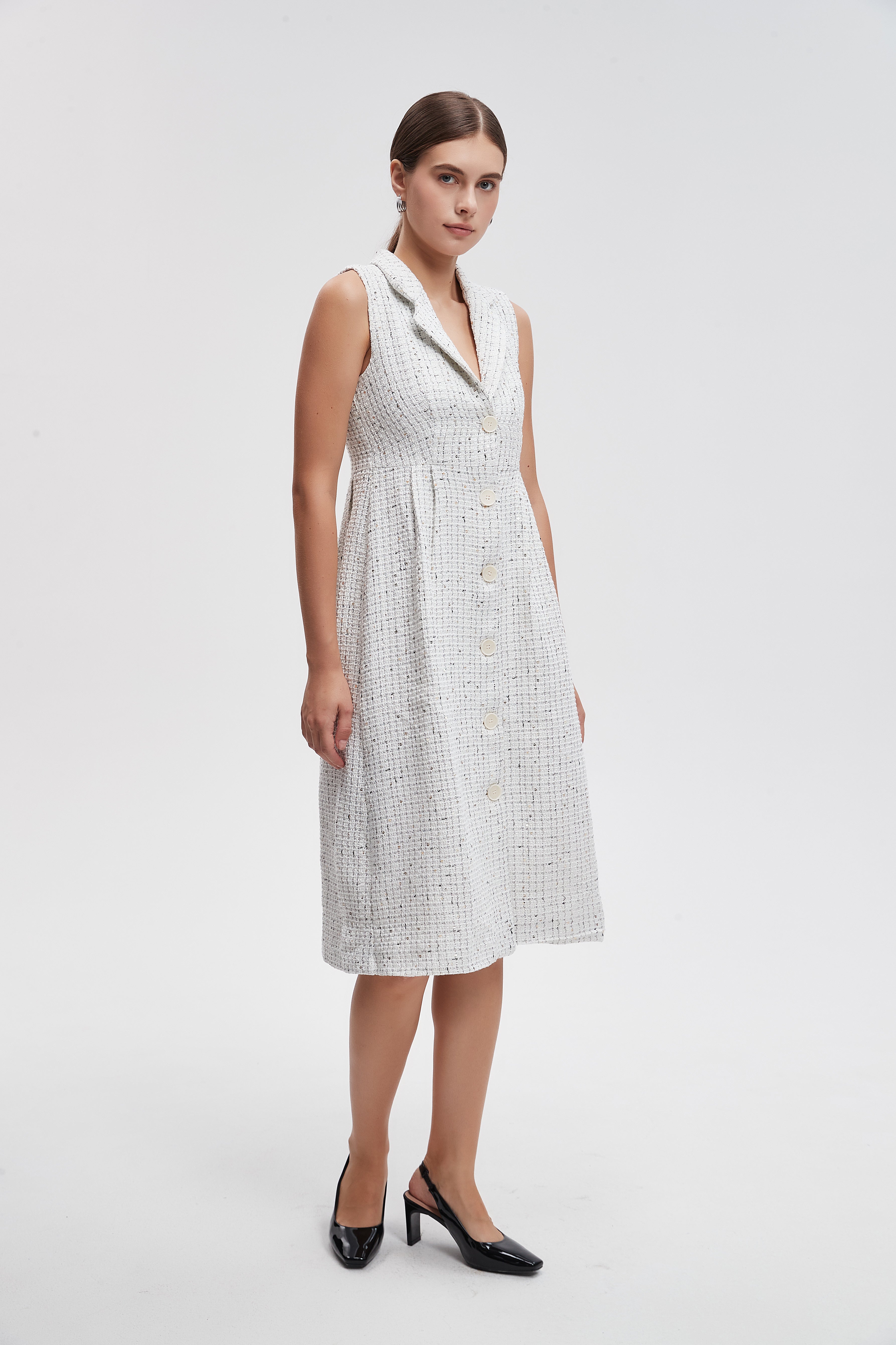 فستان ميدي صوف بأزرار امامية