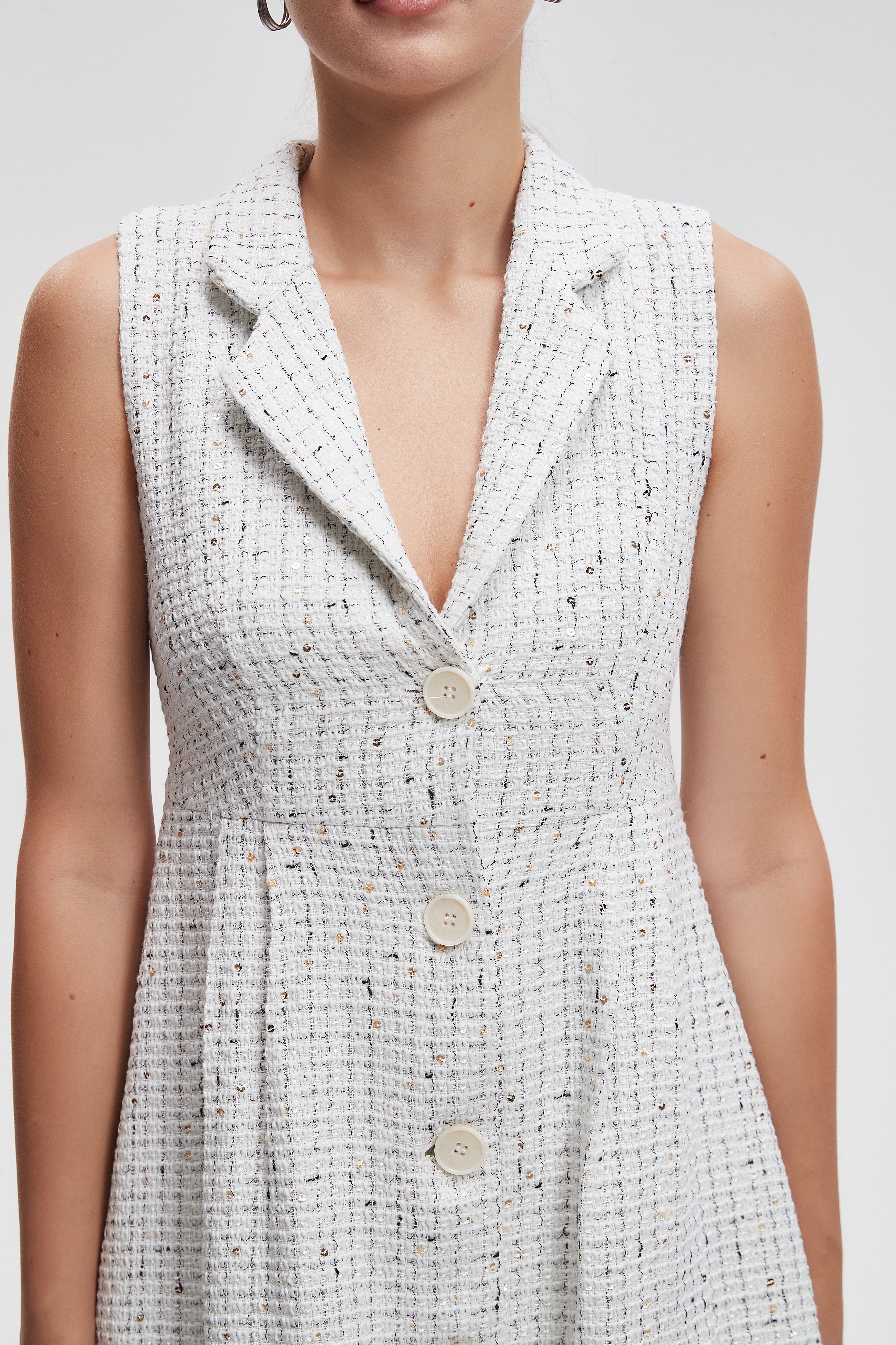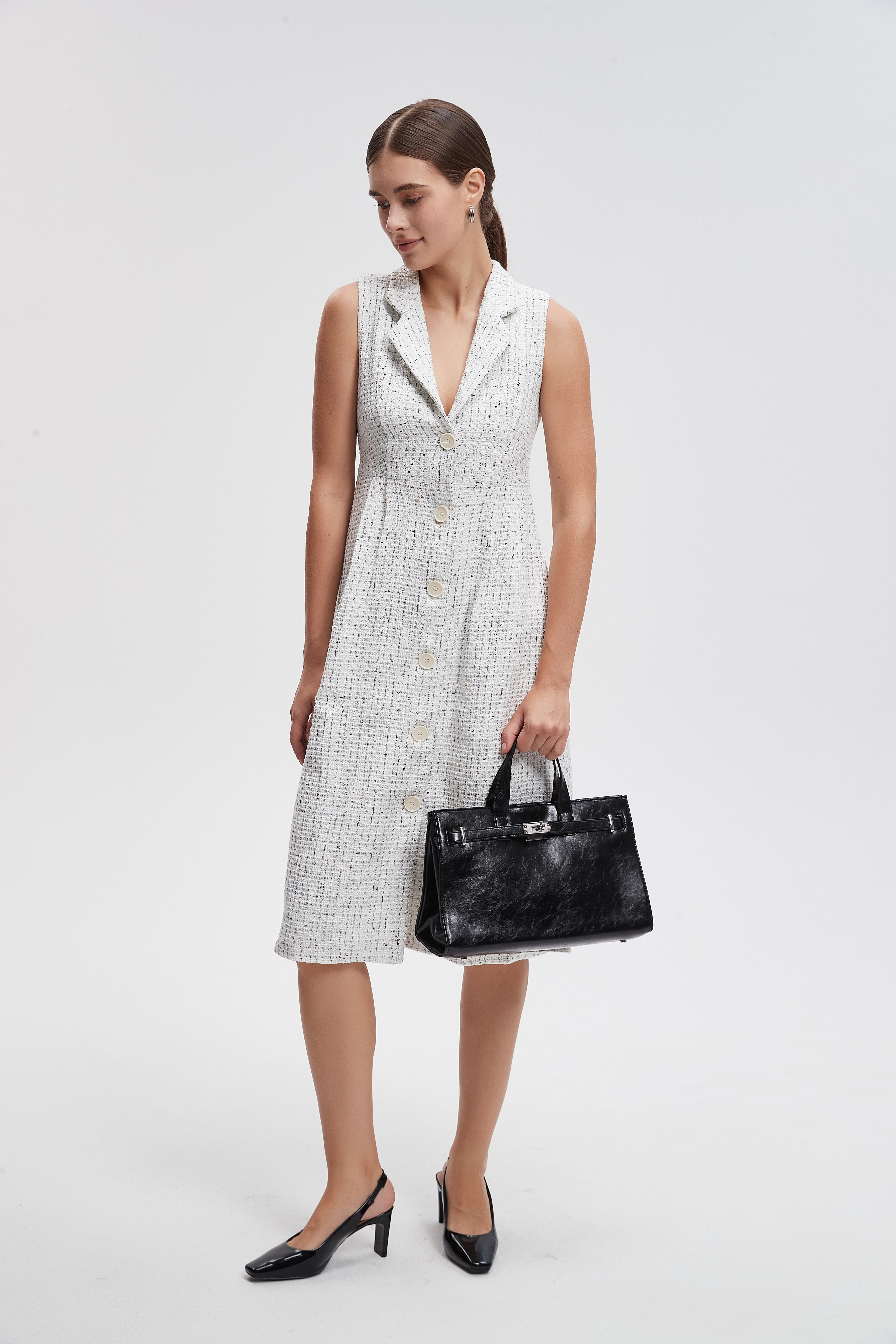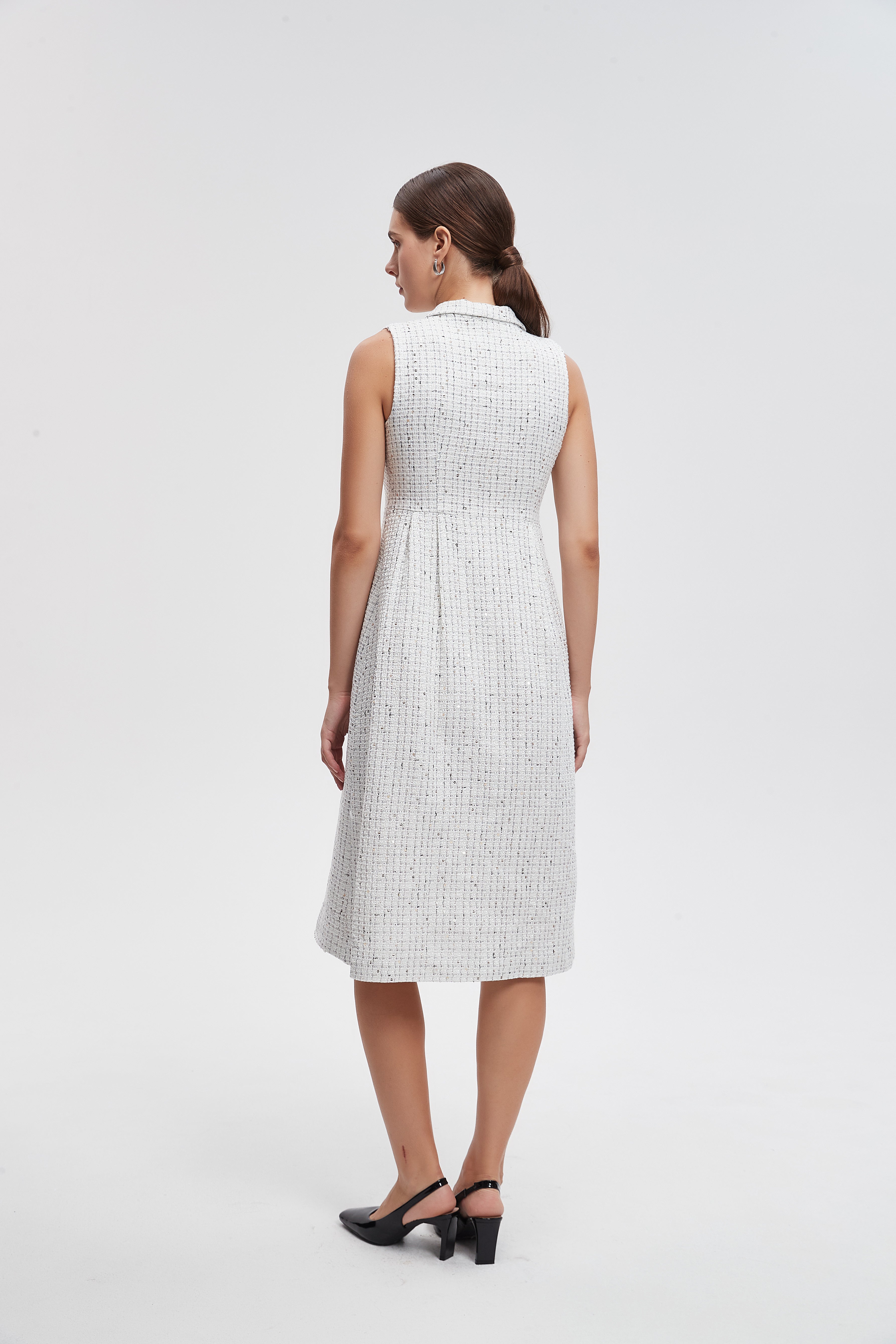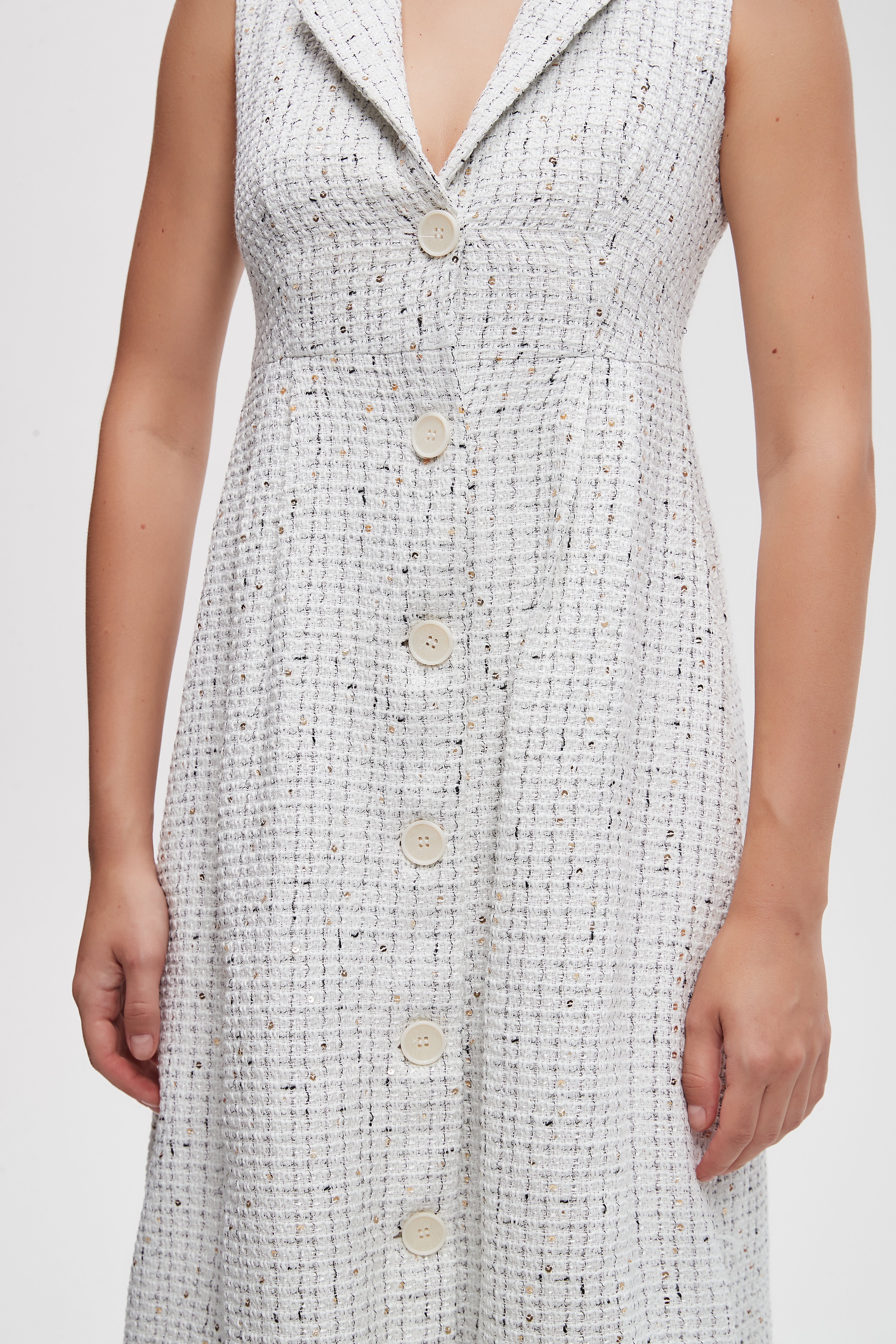 فستان ميدي صوف بأزرار امامية