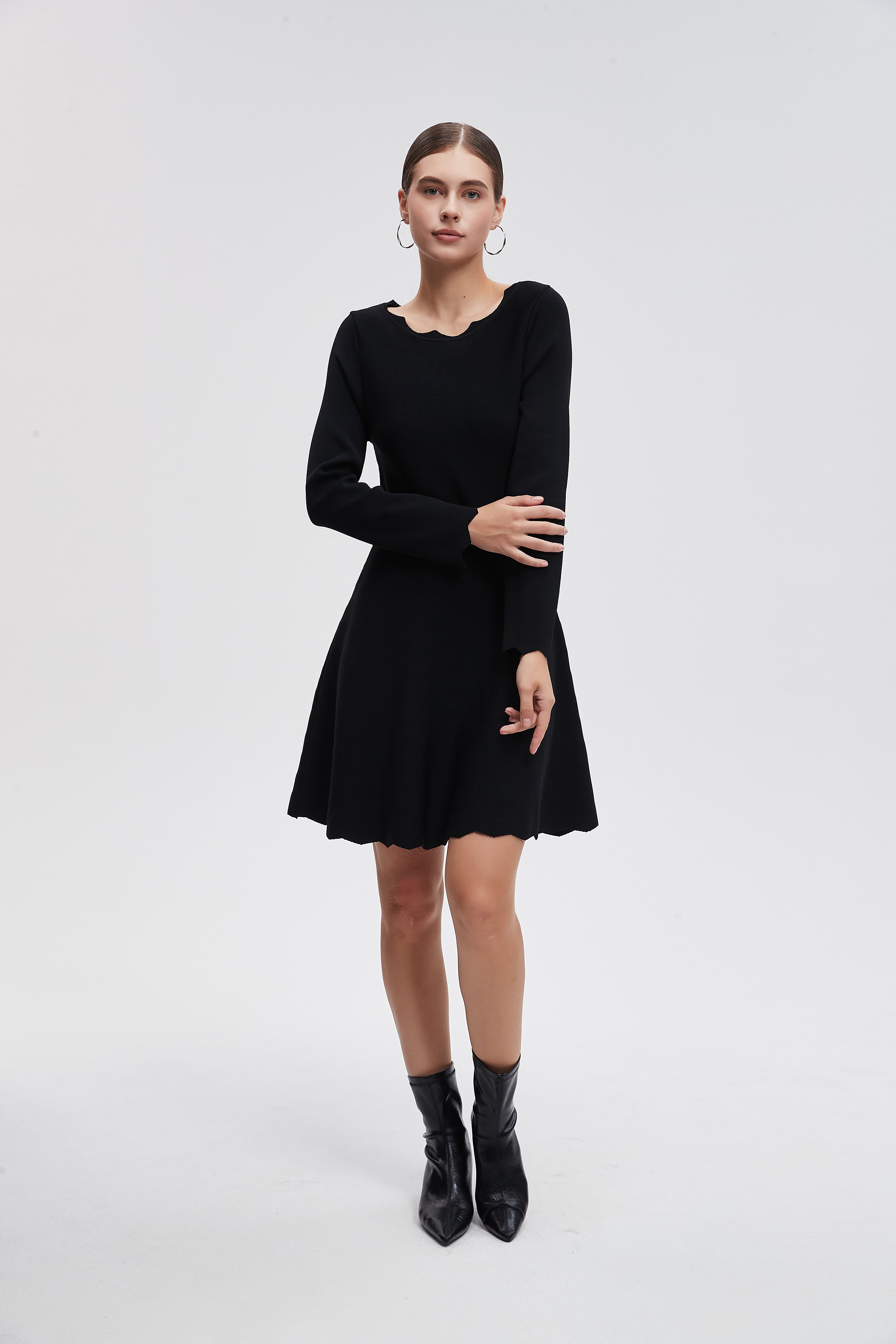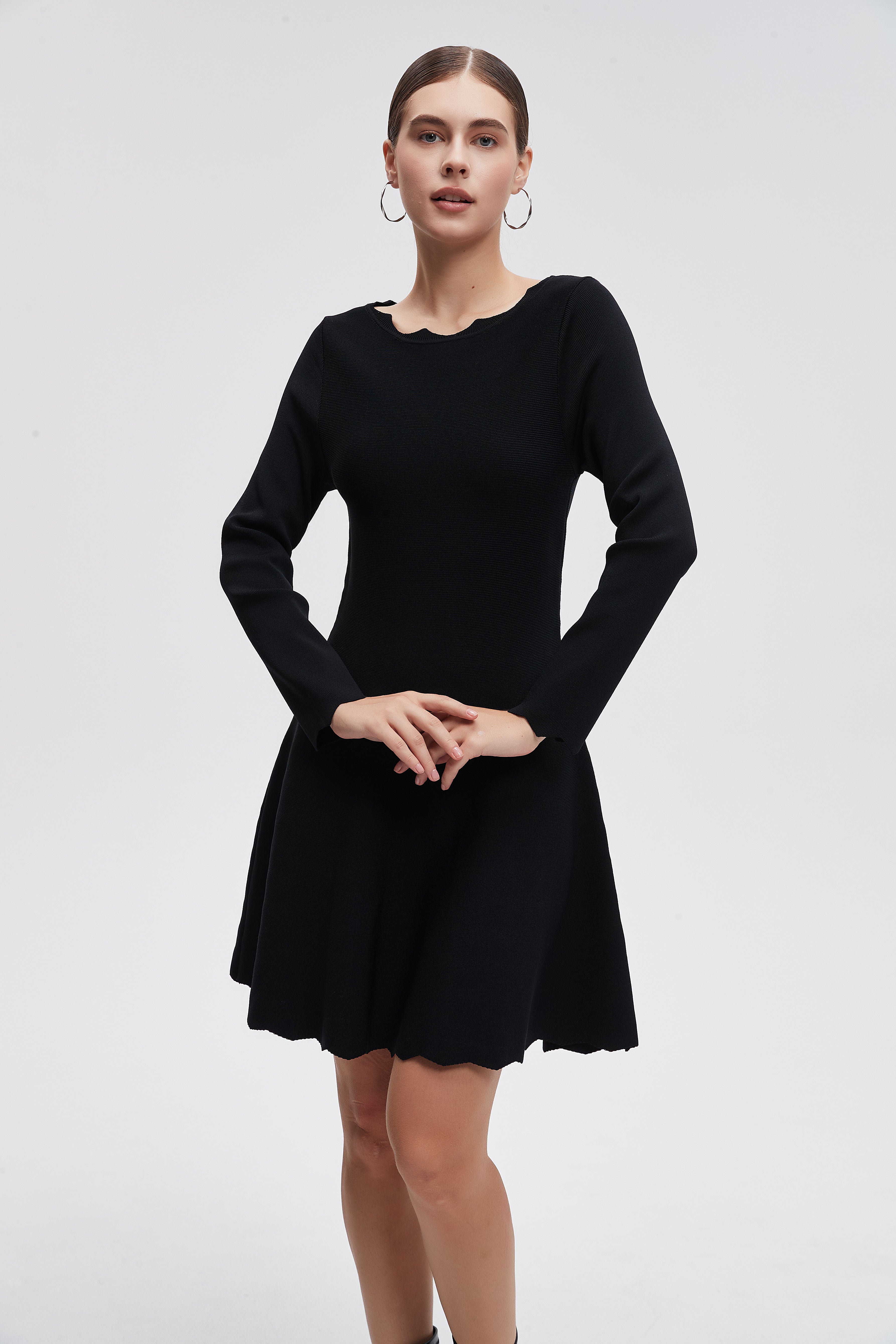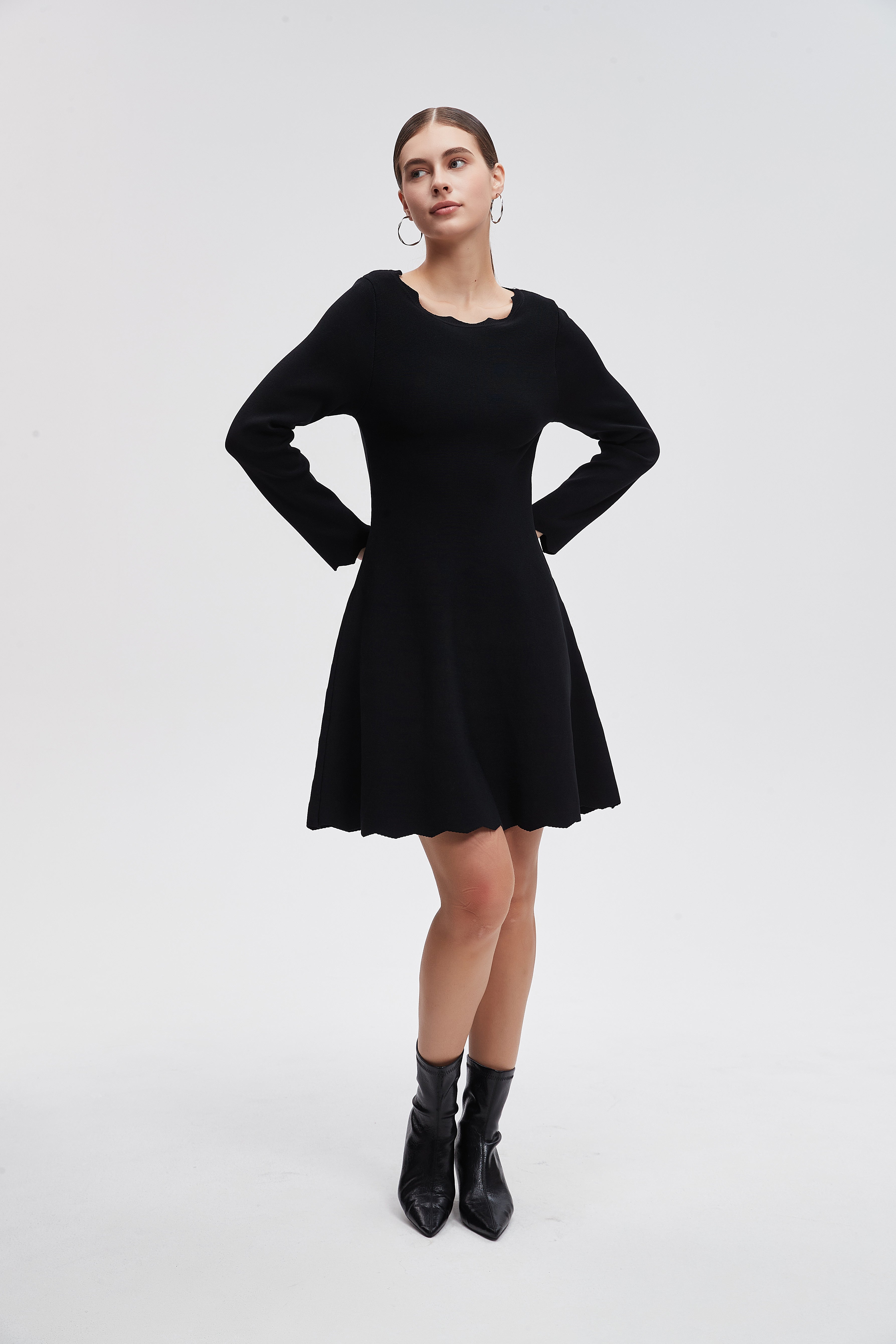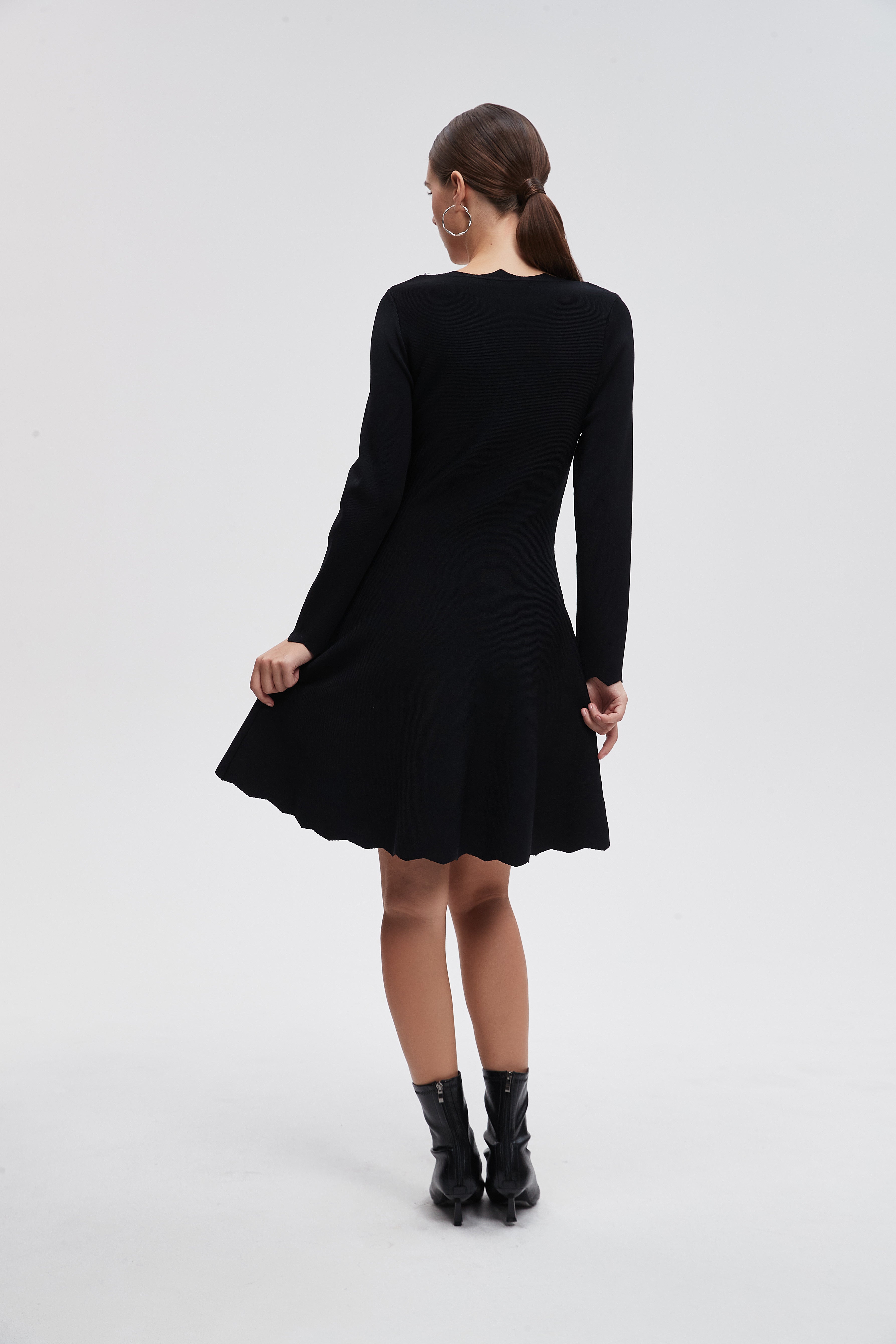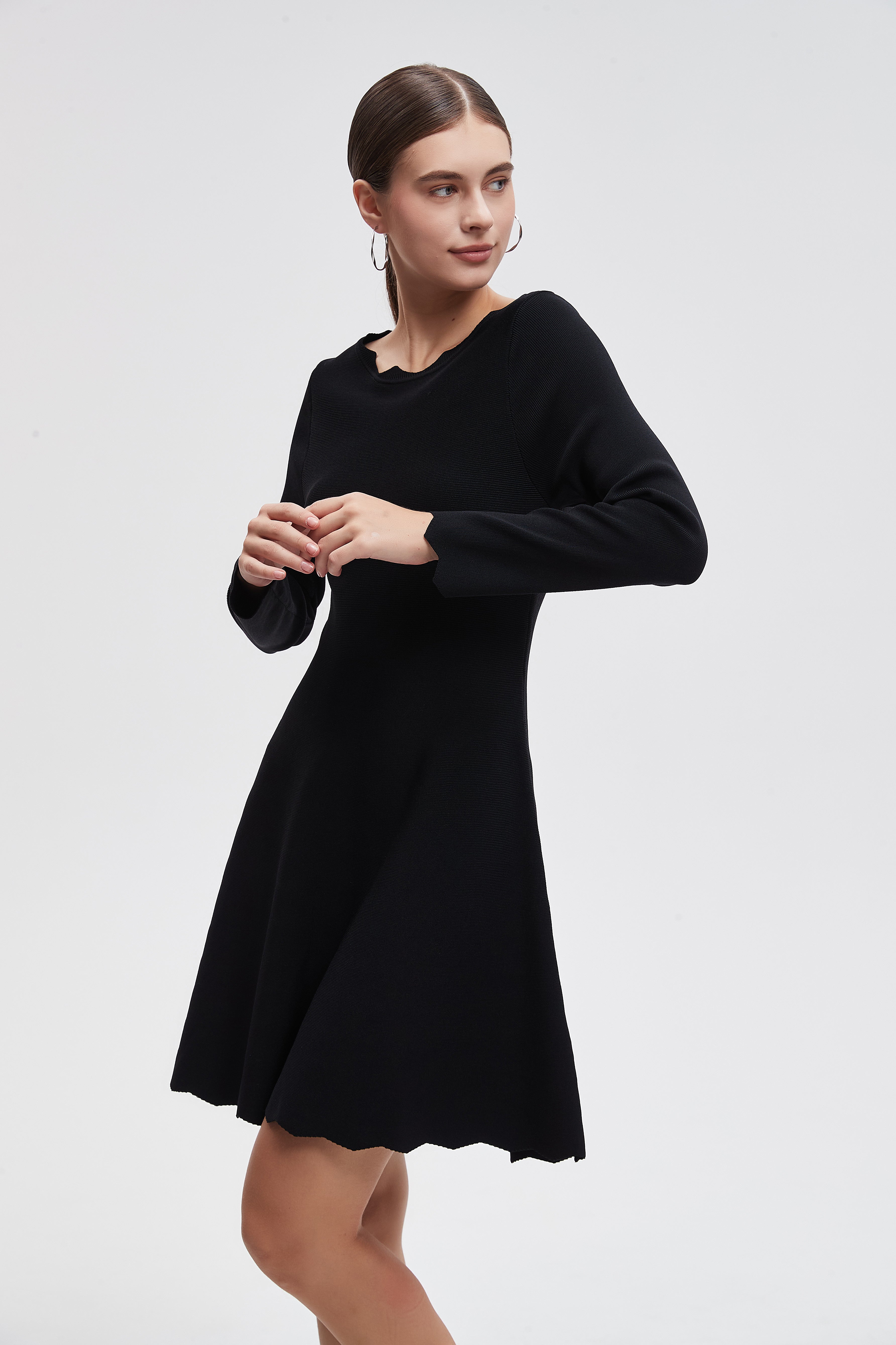 فستان قصير سادة اكمام طويلة