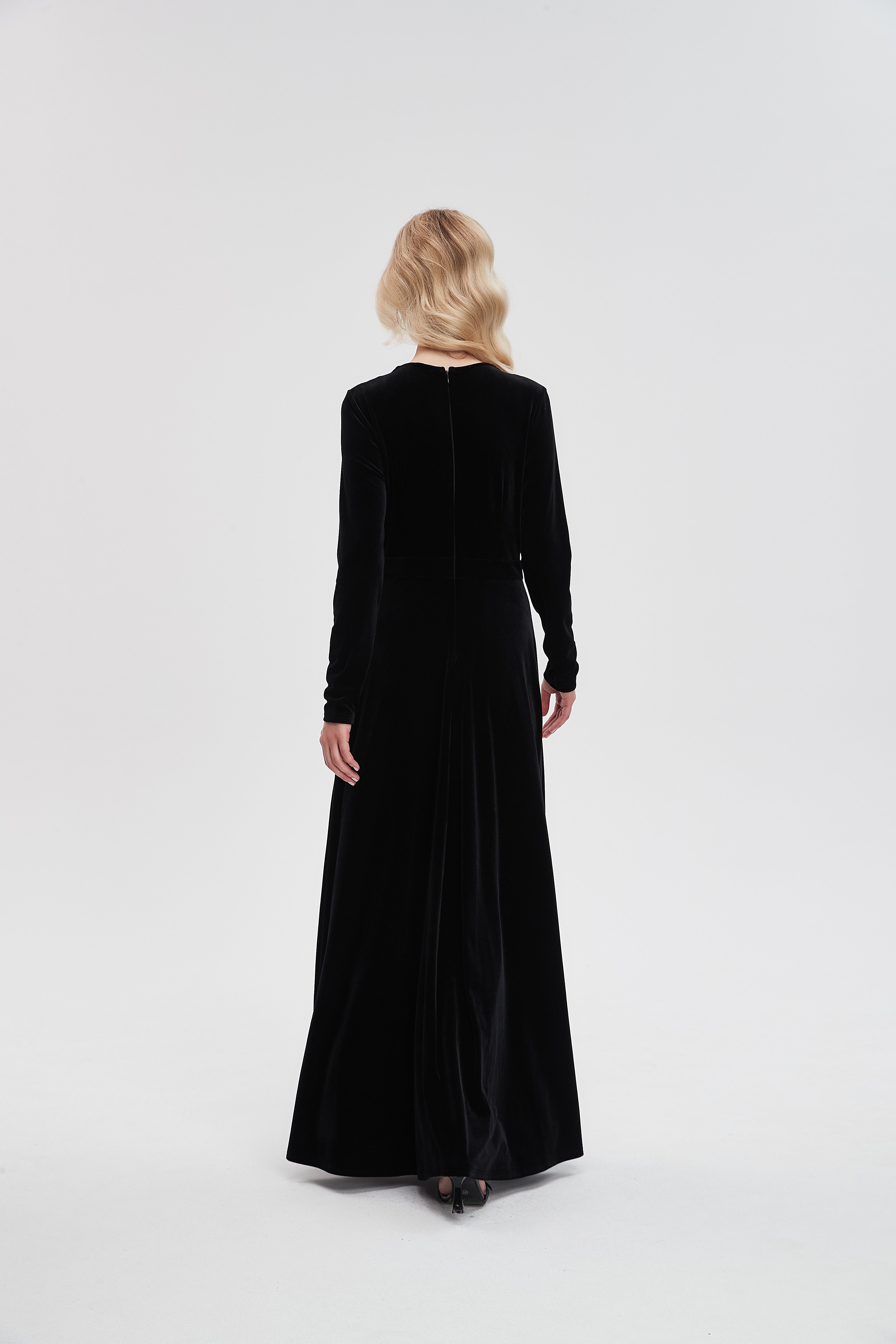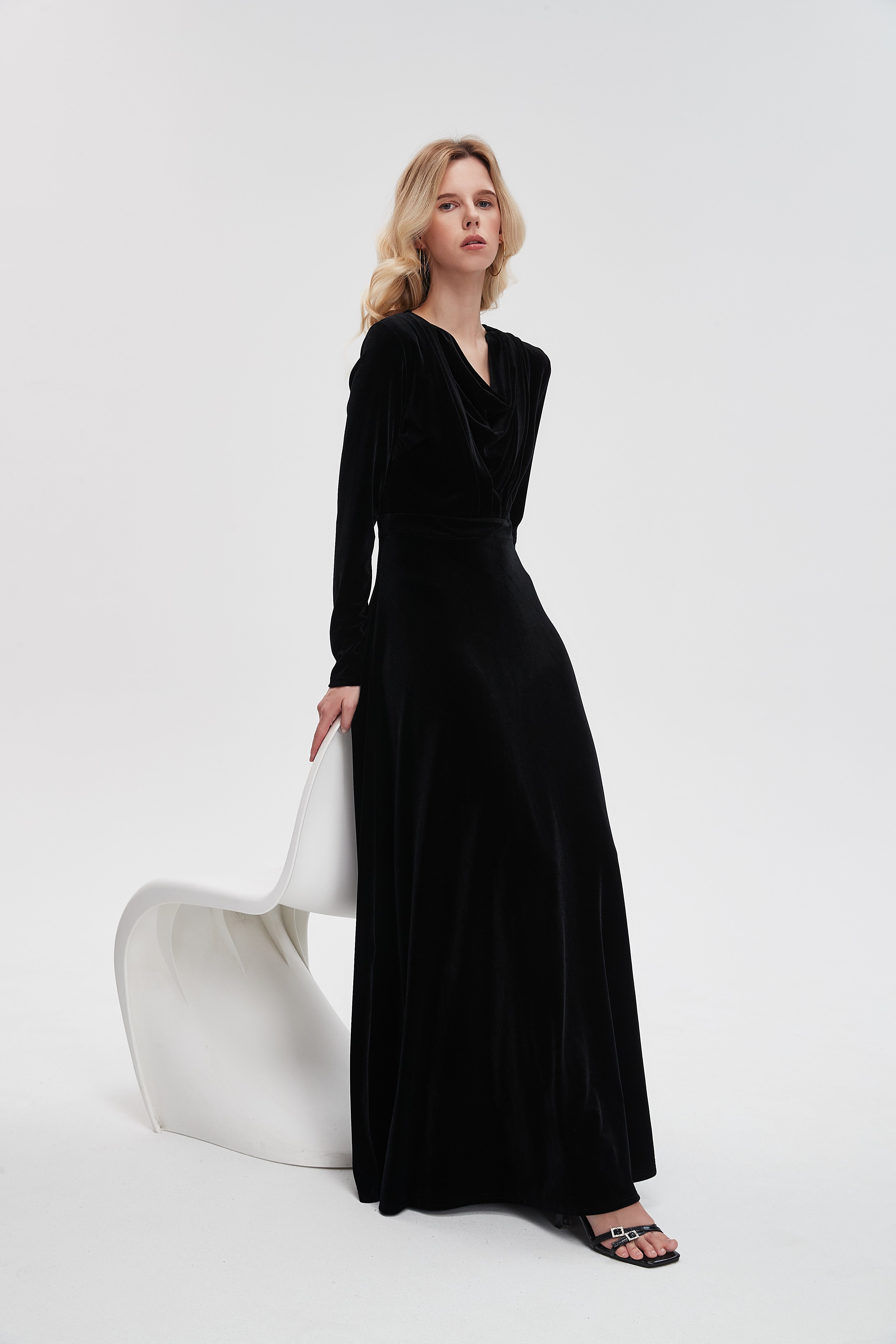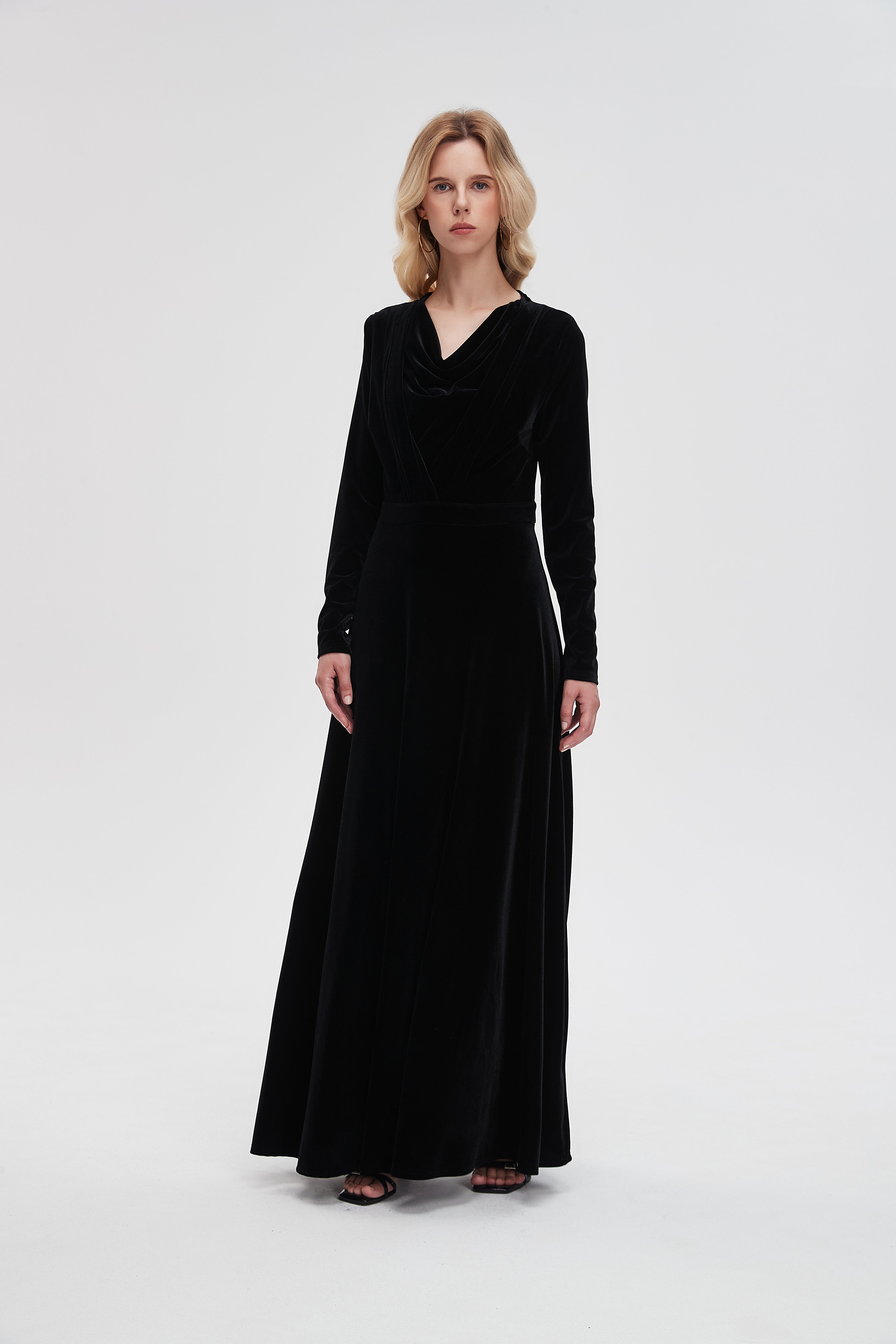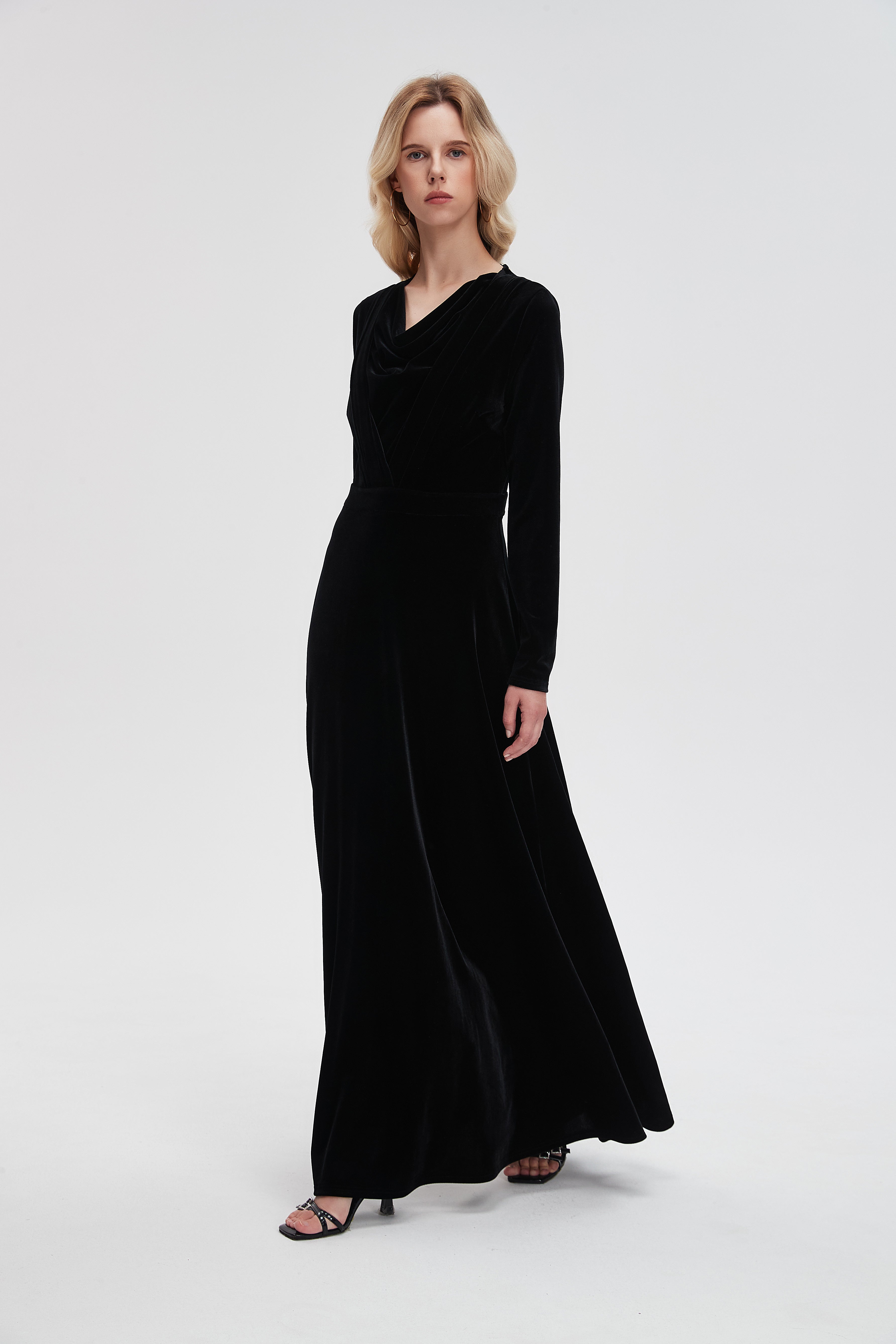 لو تبغين فستان أسود عملي ومواكب للموضة، هذا الفستان خيار يلفت الانتباه. قصة A ماكسي تمنحك أناقة طويلة دون التضحية بالراحة، وستحبين كيف يتحرك معك في المشي. ياقة منسدلة تمنح المظهر لمسة أنثوية هادئة، والأكمام الطويلة تضيف طابعاً مناسباً للمساء والنهار على حد سواء. التصميم سادة باللون الأسود يعطيك قاعدة سهلة للتنسيق، مع قصة عادية تناسب جميع الأجسام. الخامة متوسطة السماكة وبدون بطانة، لذا هو مناسب لكل المواسم مع لمسات طبقات بسيطة في الأيام الباردة. لا يوجد جيوب ولا حزام مرفق، ما يجعل الإطلالة نظيفة وبسيطة. مثالي للخروجات الرومانسية ولمسات السهرة، وستكون قطعة أساسية في خزانة ملابسك. اعثري على مقاسك في فاشن السعودية وأضيفي هذه القطعة المتنوعة إلى خزانة ملابسك اليوم.