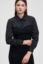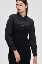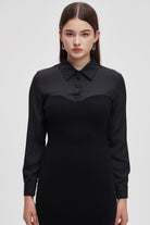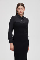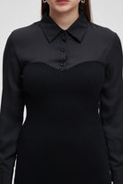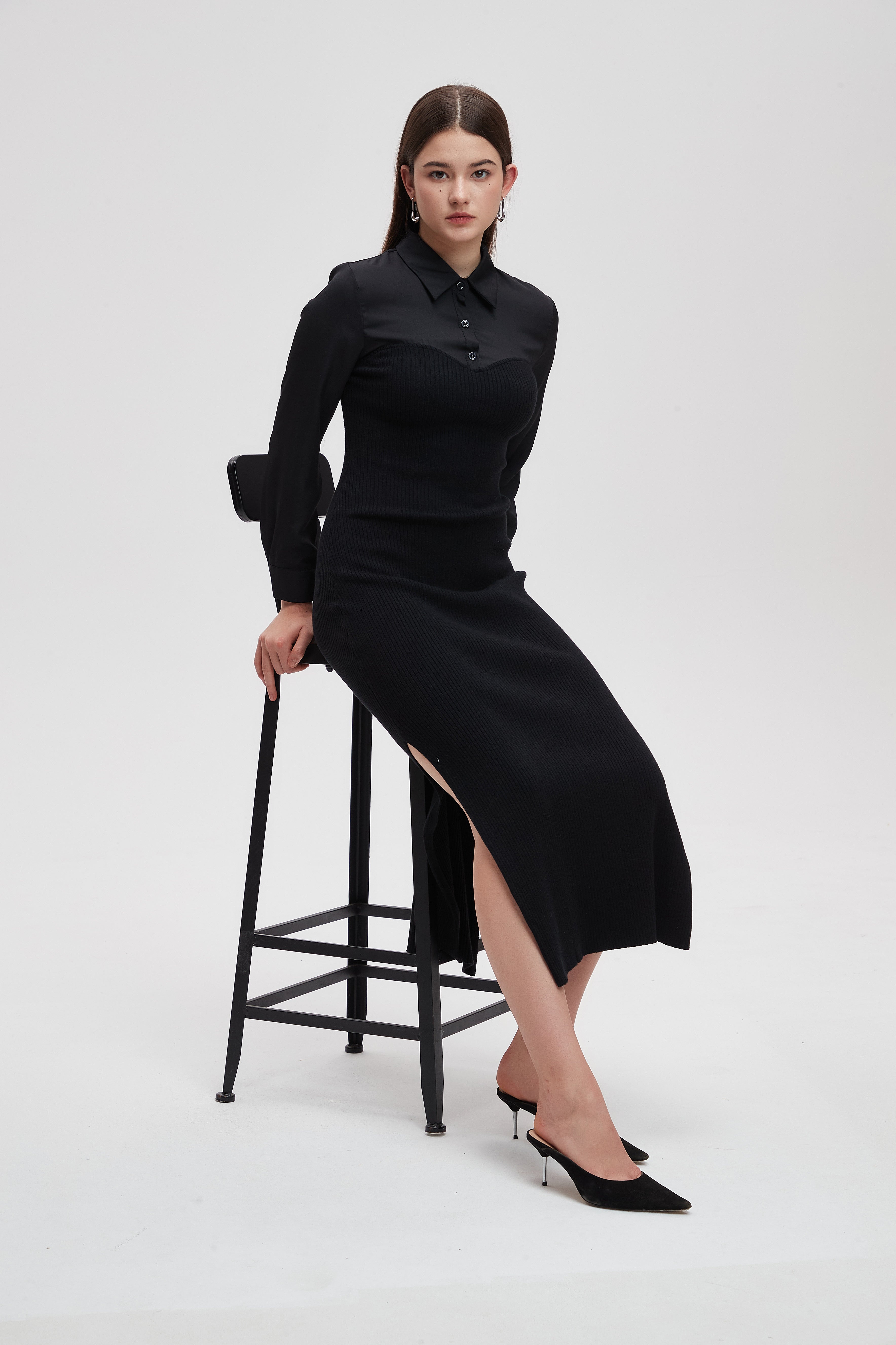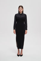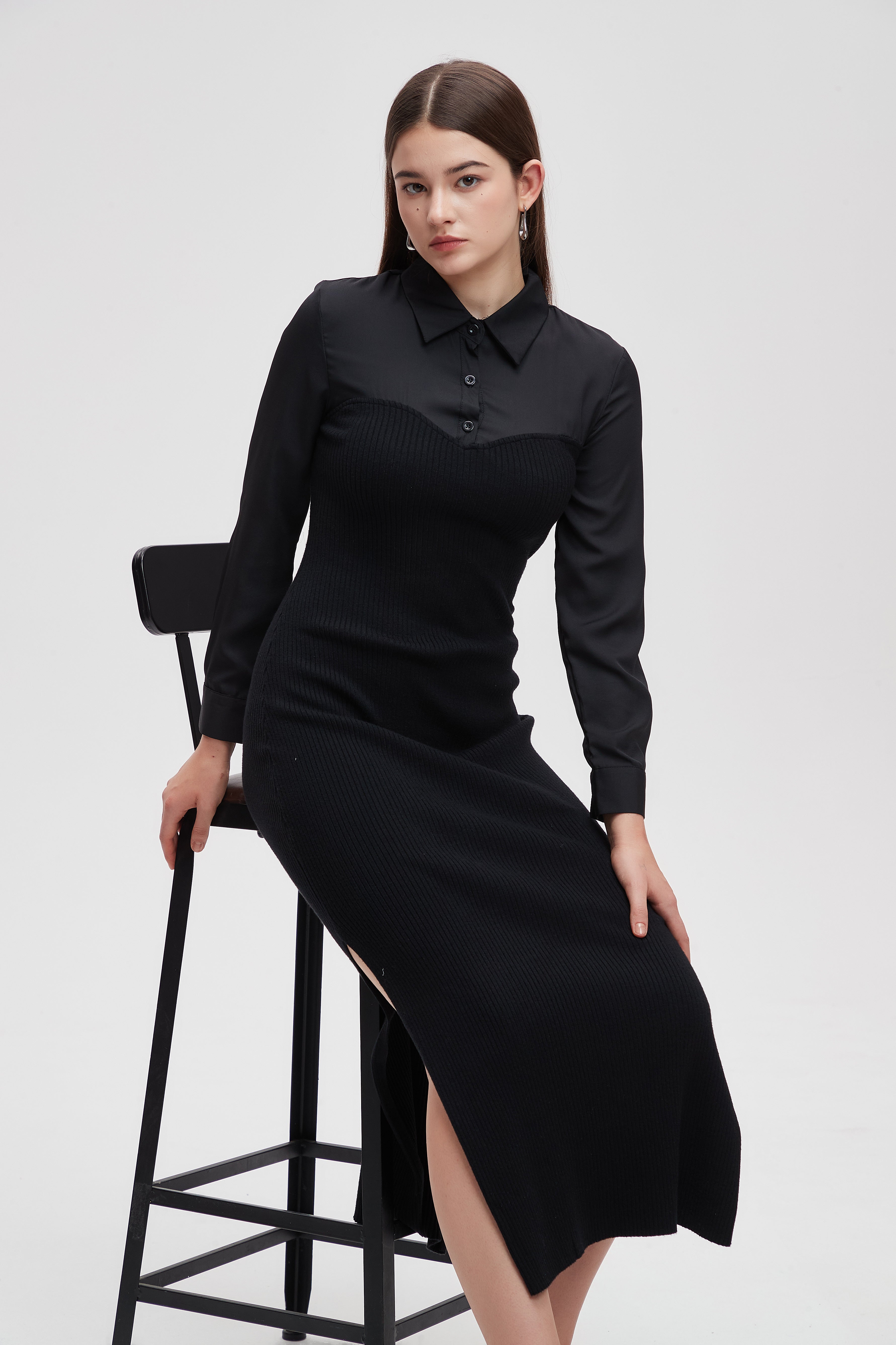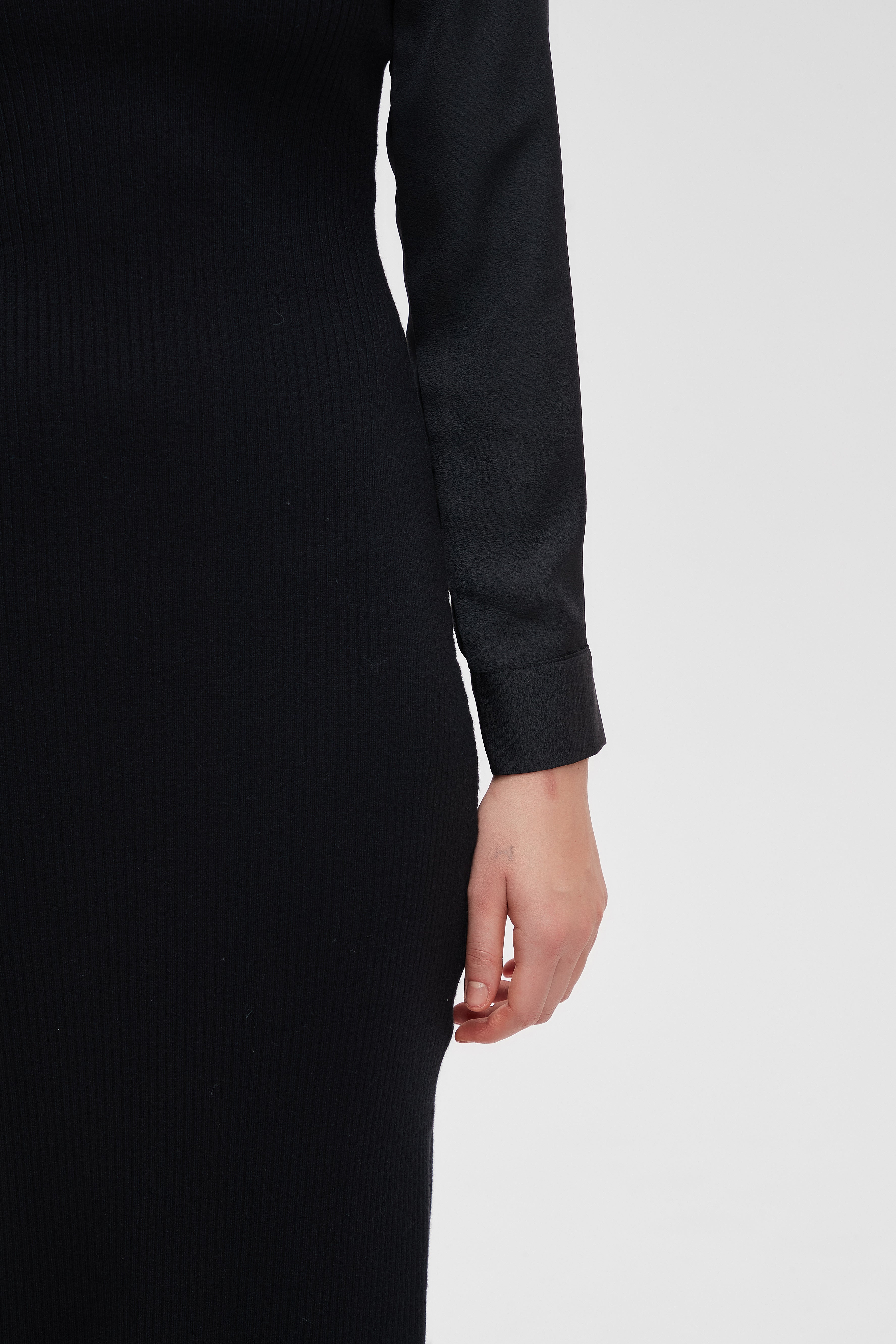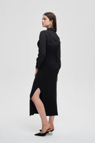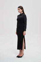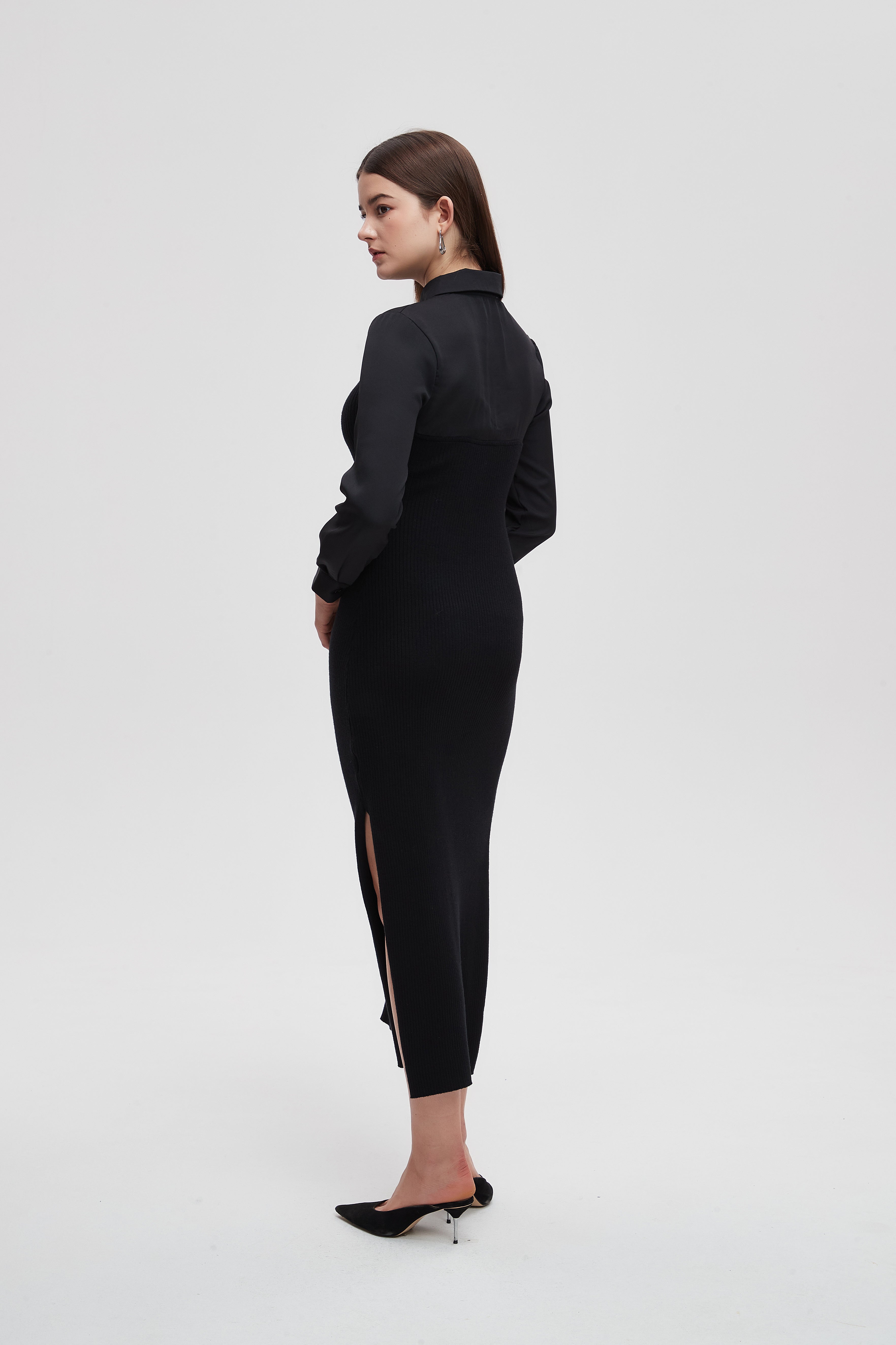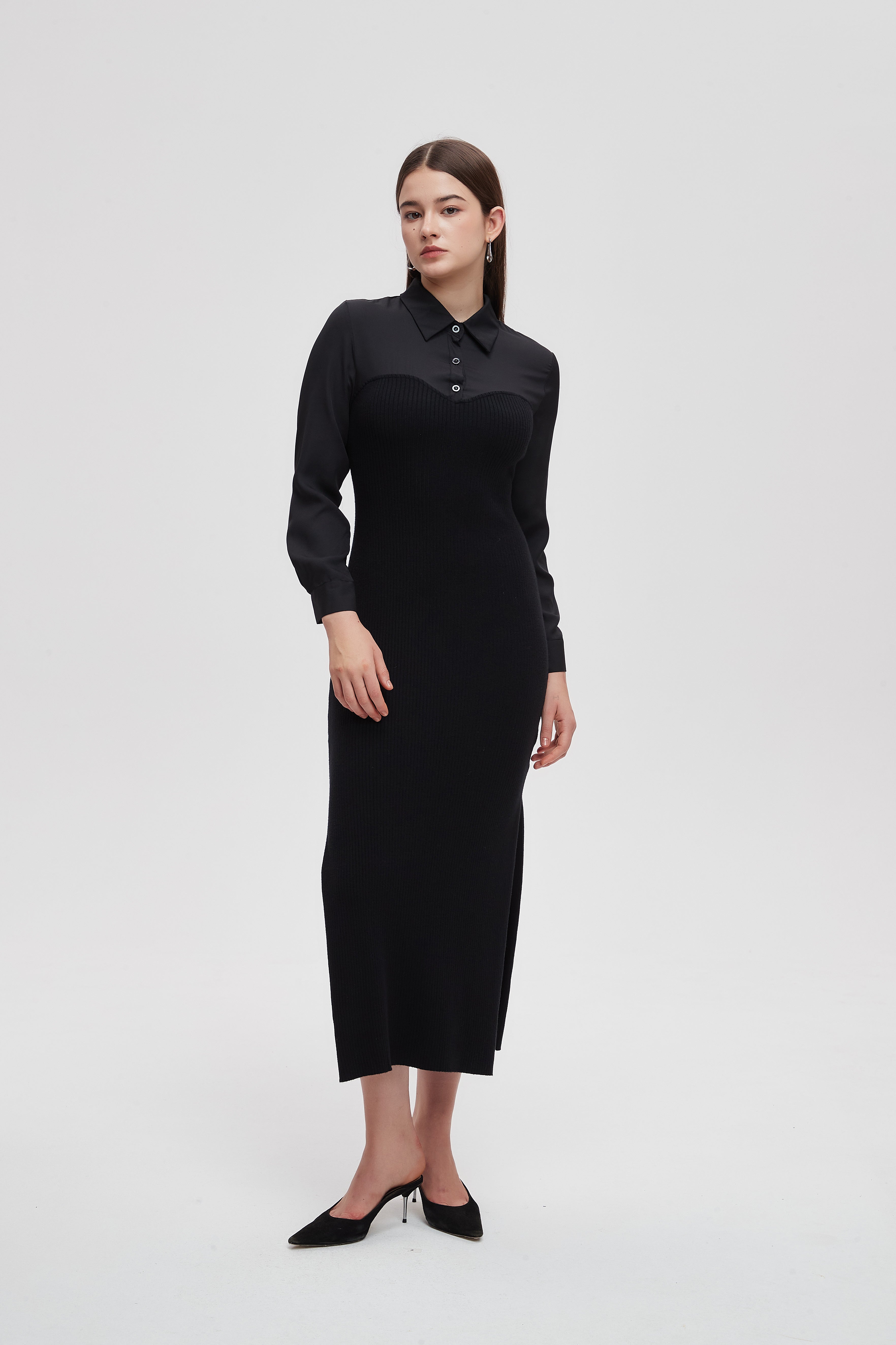 فستان طويل بفتحة جانبية بكم طويل سادة