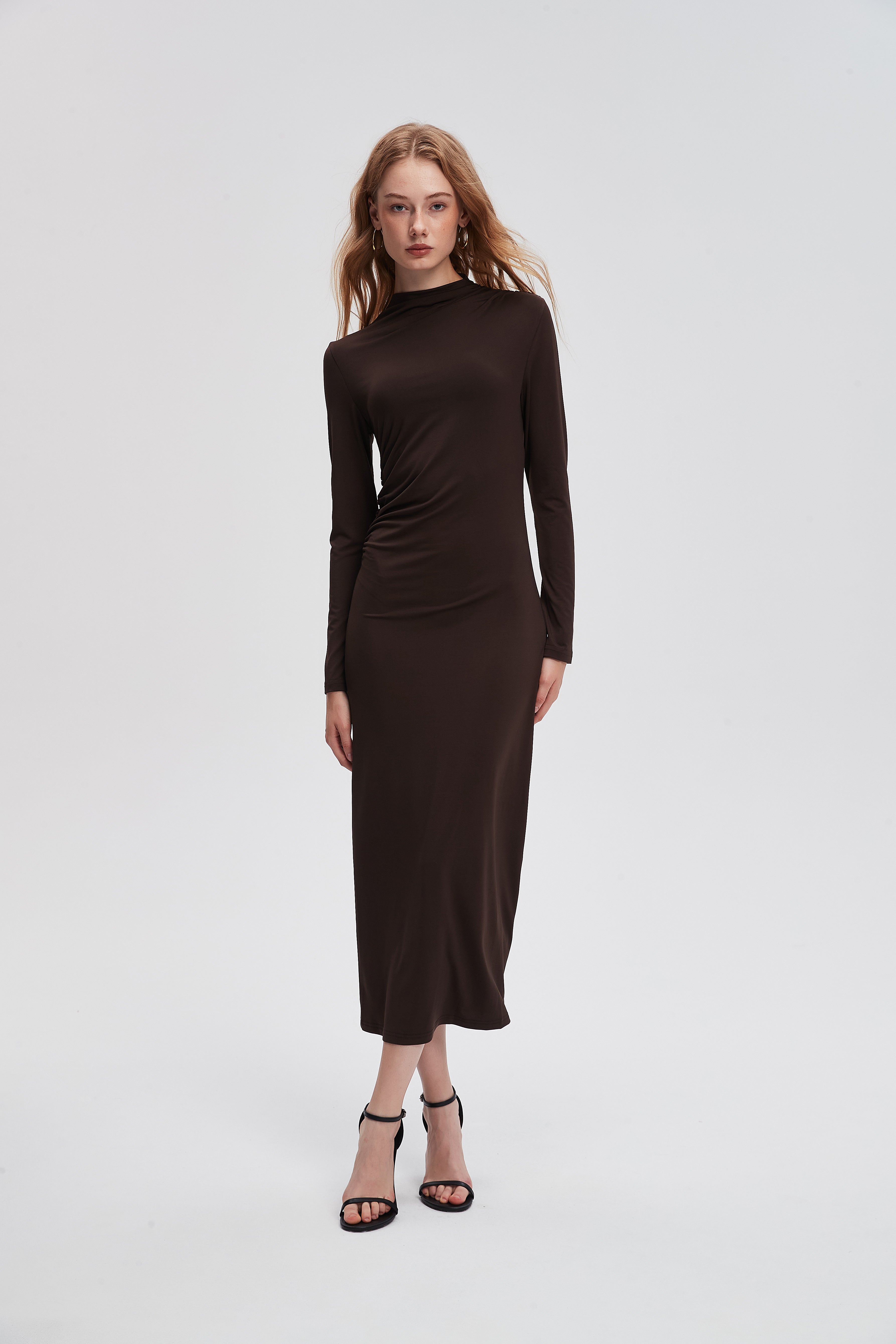 لو تبحثين عن فستان ميدي يناسب الخروجات اليومية ويعكس ذوق مواكب للموضة، هذا الفستان رائع. خامته بسماكة متوسطة وبدون بطانة ما يجعله مريحاً ومناسباً لكل المواسم؛ لا ثقيل في الصيف ولا رقيق في الشتاء إذا أضفتِ طبقات. القصة ضيقة بأسلوب بودي كون تحتضن القوام وتبرز الخطوط، وياقته العالية تضيف لمسة أنيقة، أما الأكمام الطويلة فتعطي توازن عملي للمظهر. التصميم سادة باللون البني وخالٍ من الطباعة أو التطريز، بدون جيوب أو حزام للحفاظ على خط بسيط ونظيف. بطول ميدي، يصلح للخروجات النهارية والكاجوال المسائية، وستحبين كيف يتحرك معك ويعطي إطلالة مرتبة سهلة التنسيق لخزانة أي امرأة بالغة. اعثري على مقاسك في فاشن السعودية وأضيفي هذه القطعة المتنوعة إلى خزانة ملابسك اليوم.