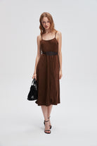 - التنسيق: نسقيه مع الصنادل للنهار لإطلالة كاجوال أنيقة. للسهرة اختاري حذاء بكعب متوسط وحقيبة كتف صغيرة. جربي الحزام لتحديد الخصر أو اتركيه لأطلالة مريحة، وضعي جاكيت خفيف أو كارديغان في الربيع والخريف لمظهر مواكب للموضة طوال السنة.